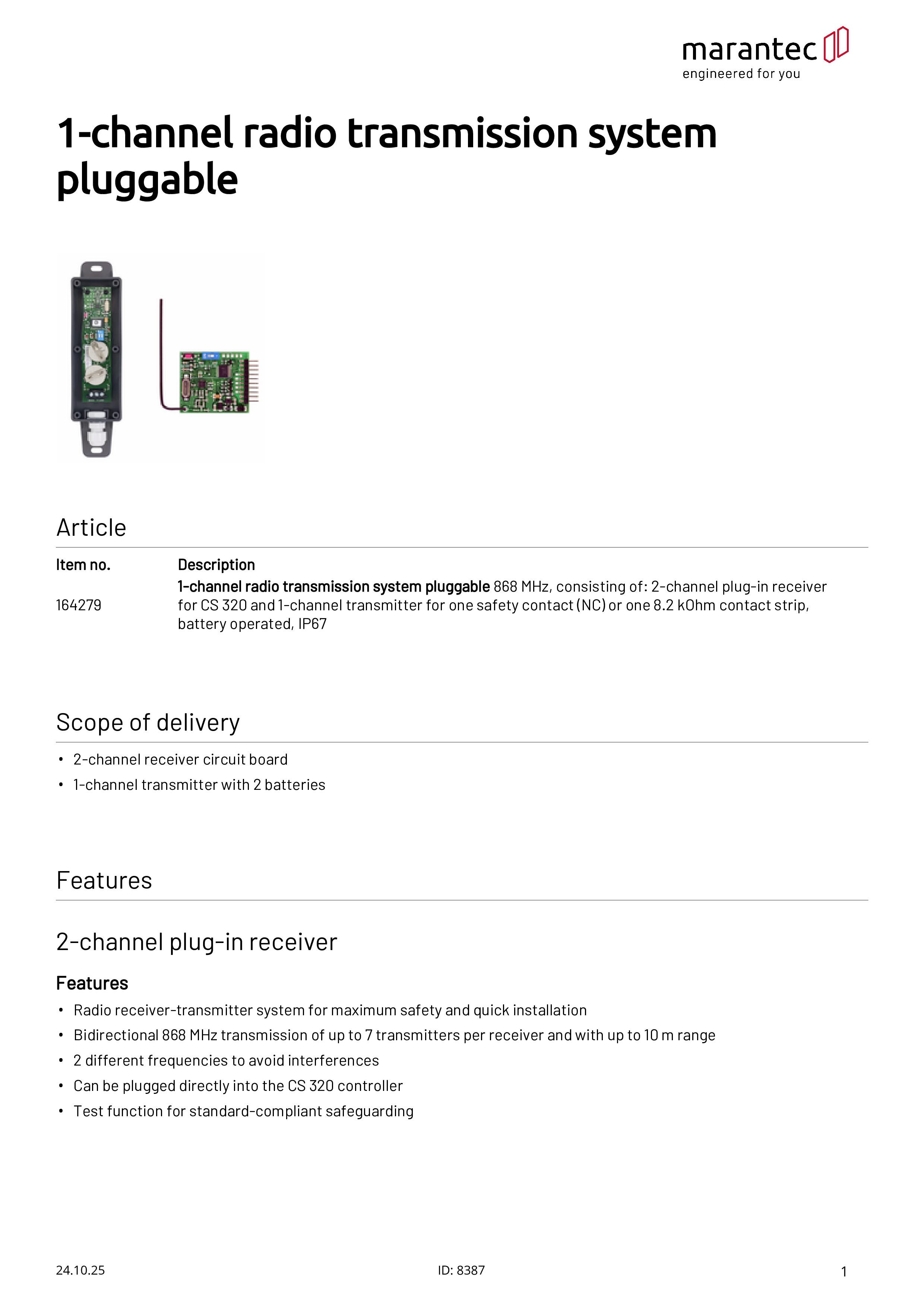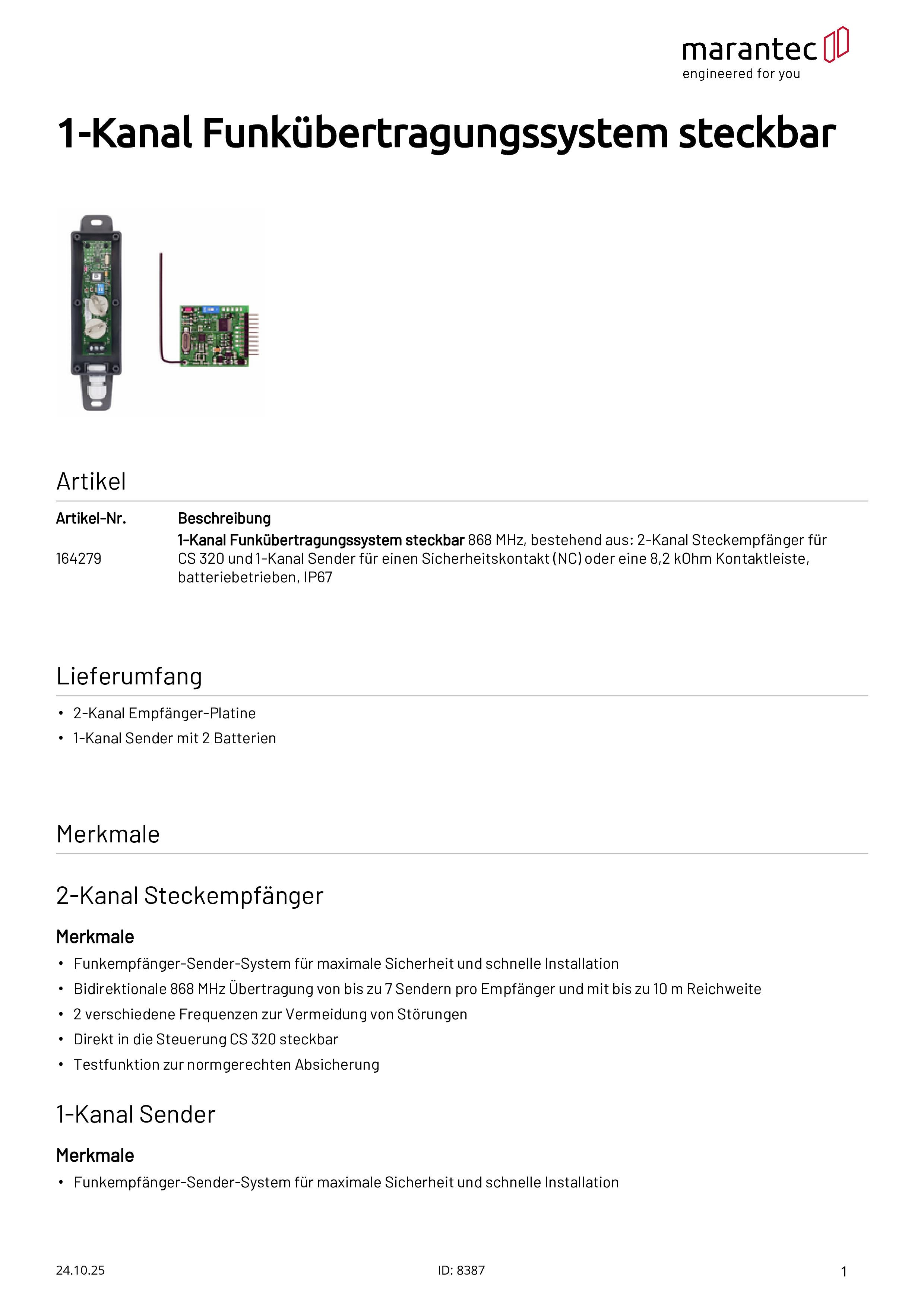 Funkübertragungssystem: 2-Kanal Steckempfänger CS 320, 1-Kanal Sender