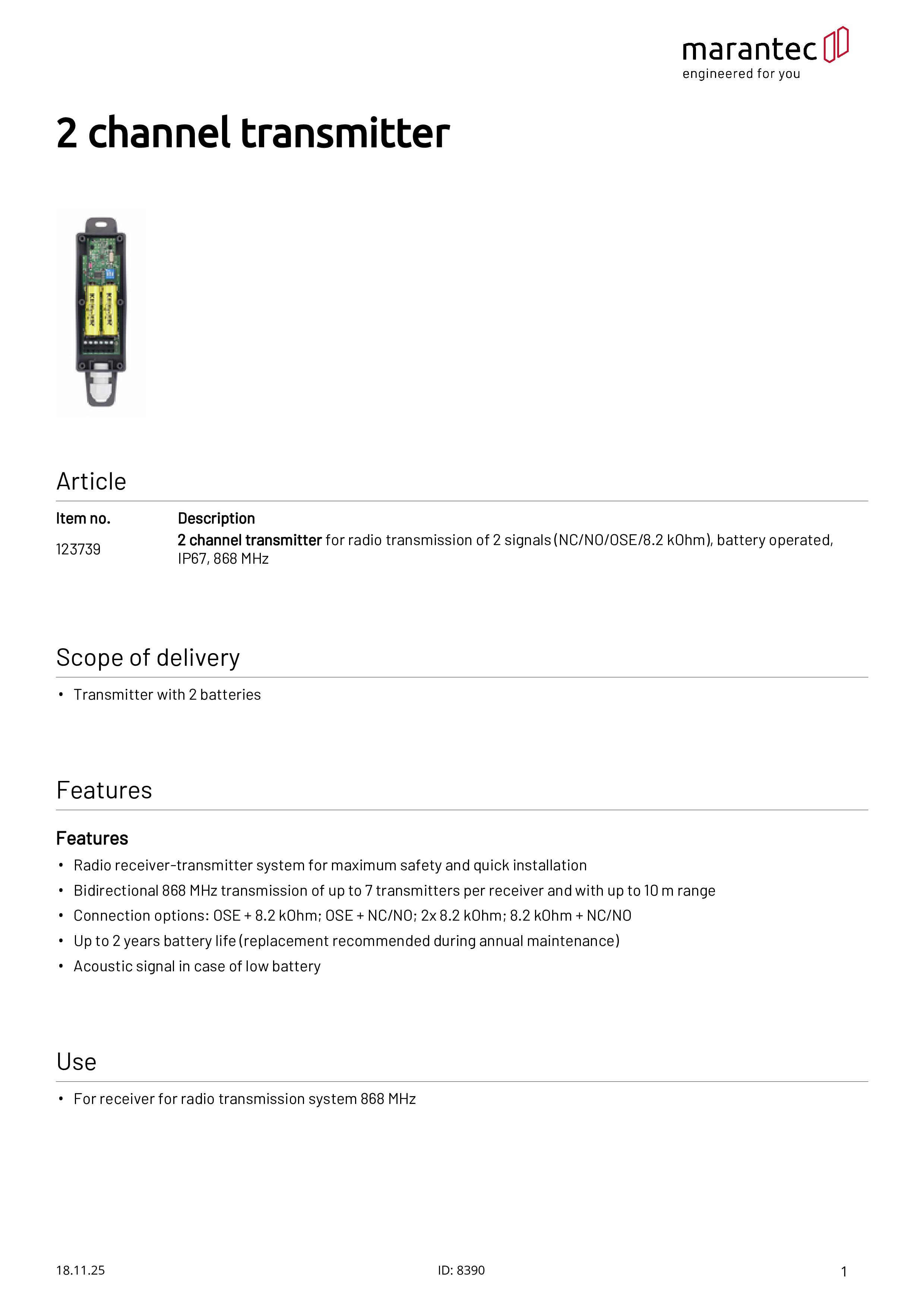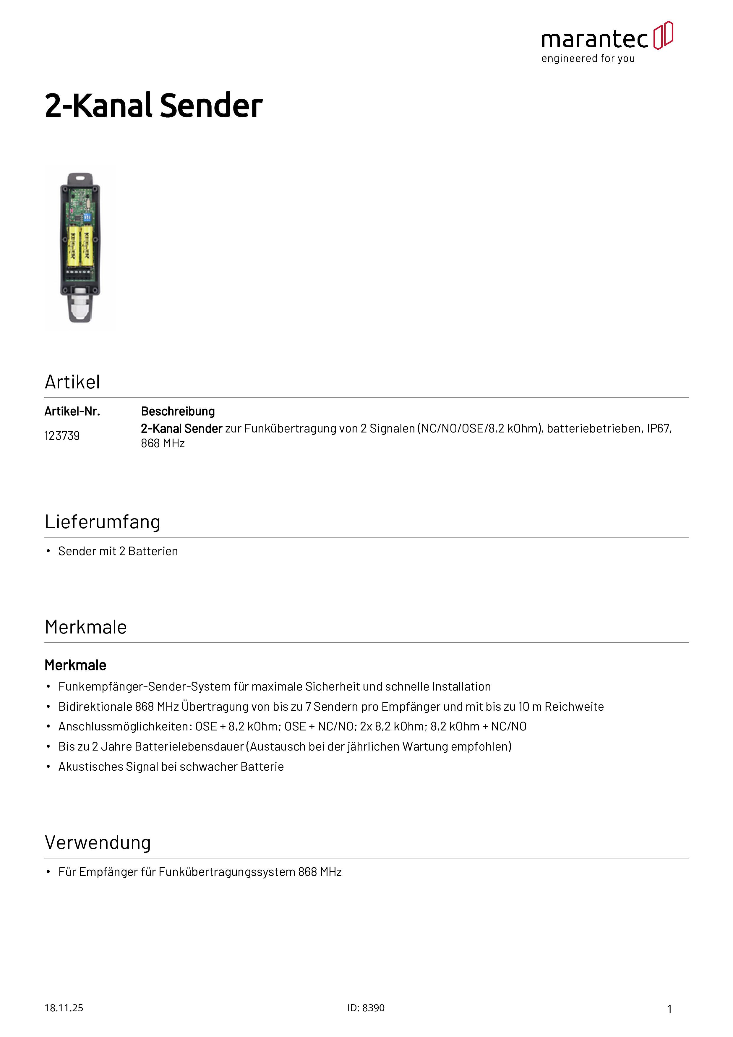 - Bidirektionale 868 MHz Übertragung von bis zu 7 Sendern pro Empfänger und mit bis zu 10 m Reichweite