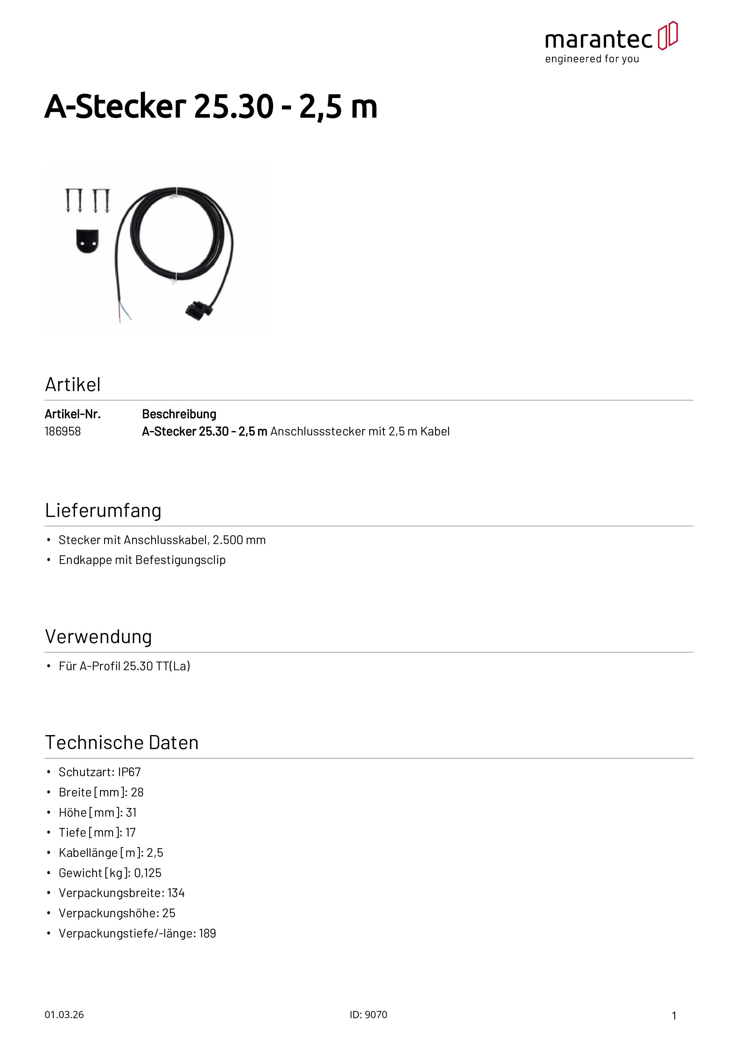 A-Stecker 25.30 - 2,5 m Anschlussstecker mit 2,5 m Kabel