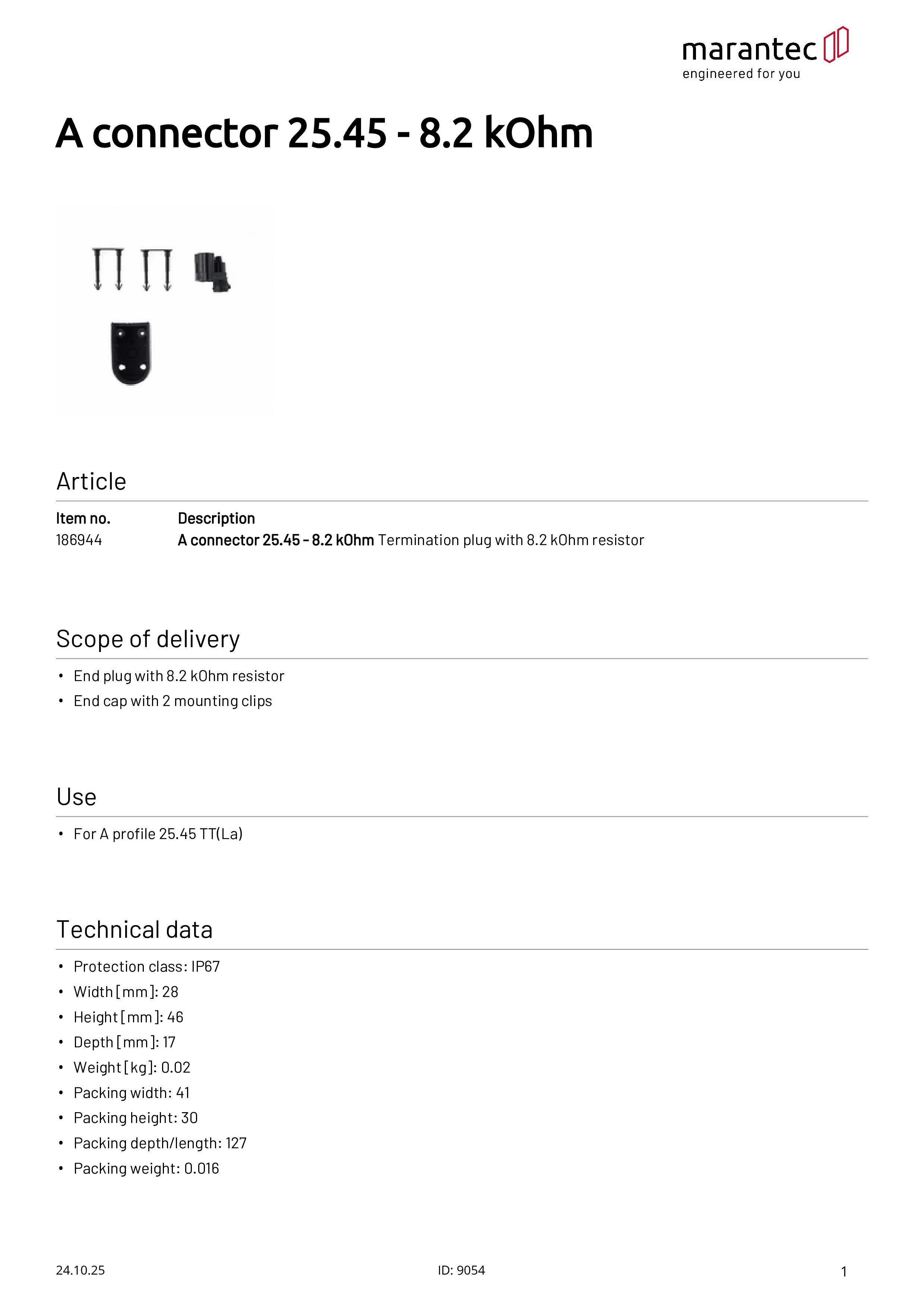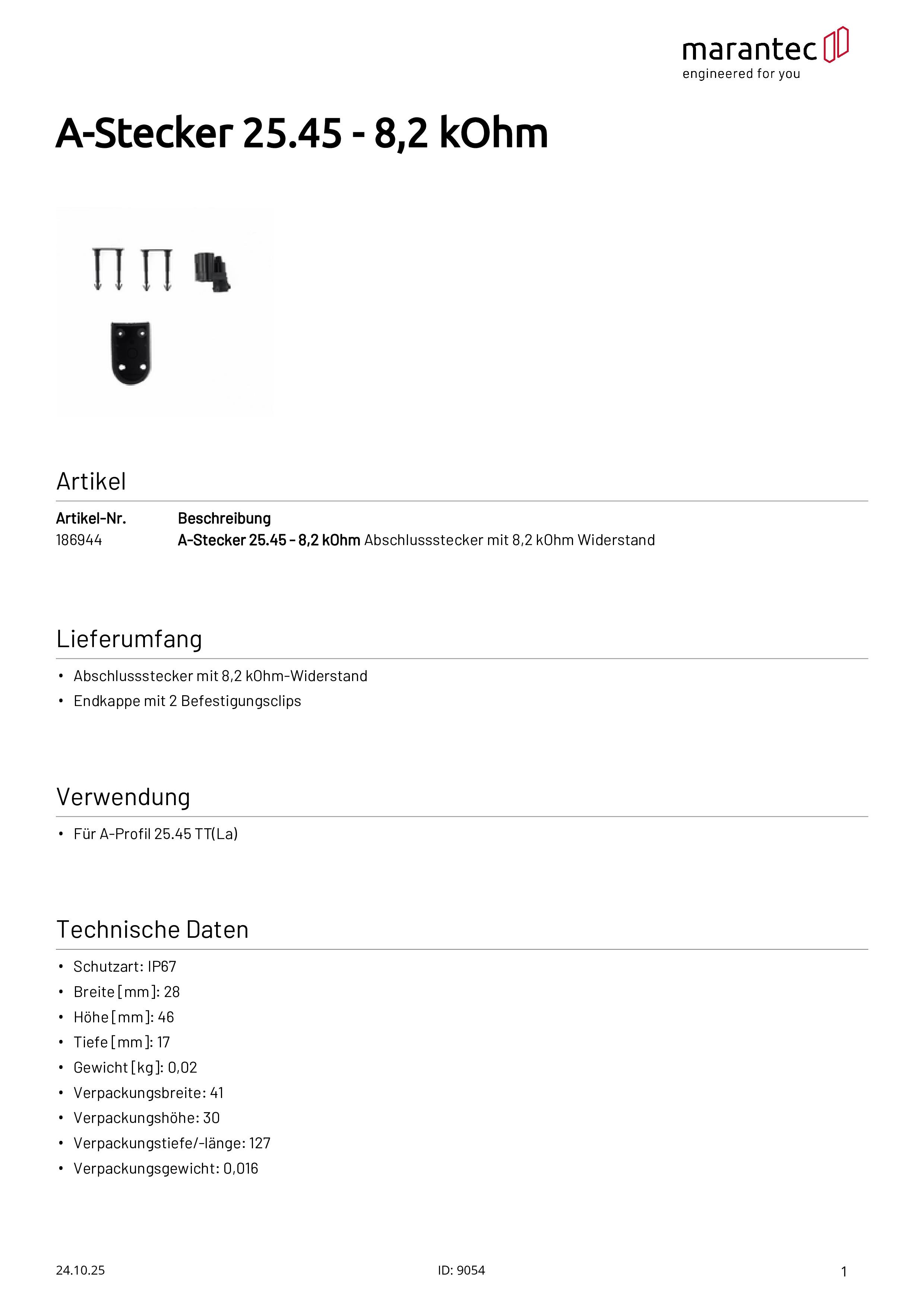 A-Stecker 25.45 - 8,2 kOhm Abschlussstecker mit 8,2 kOhm Widerstand