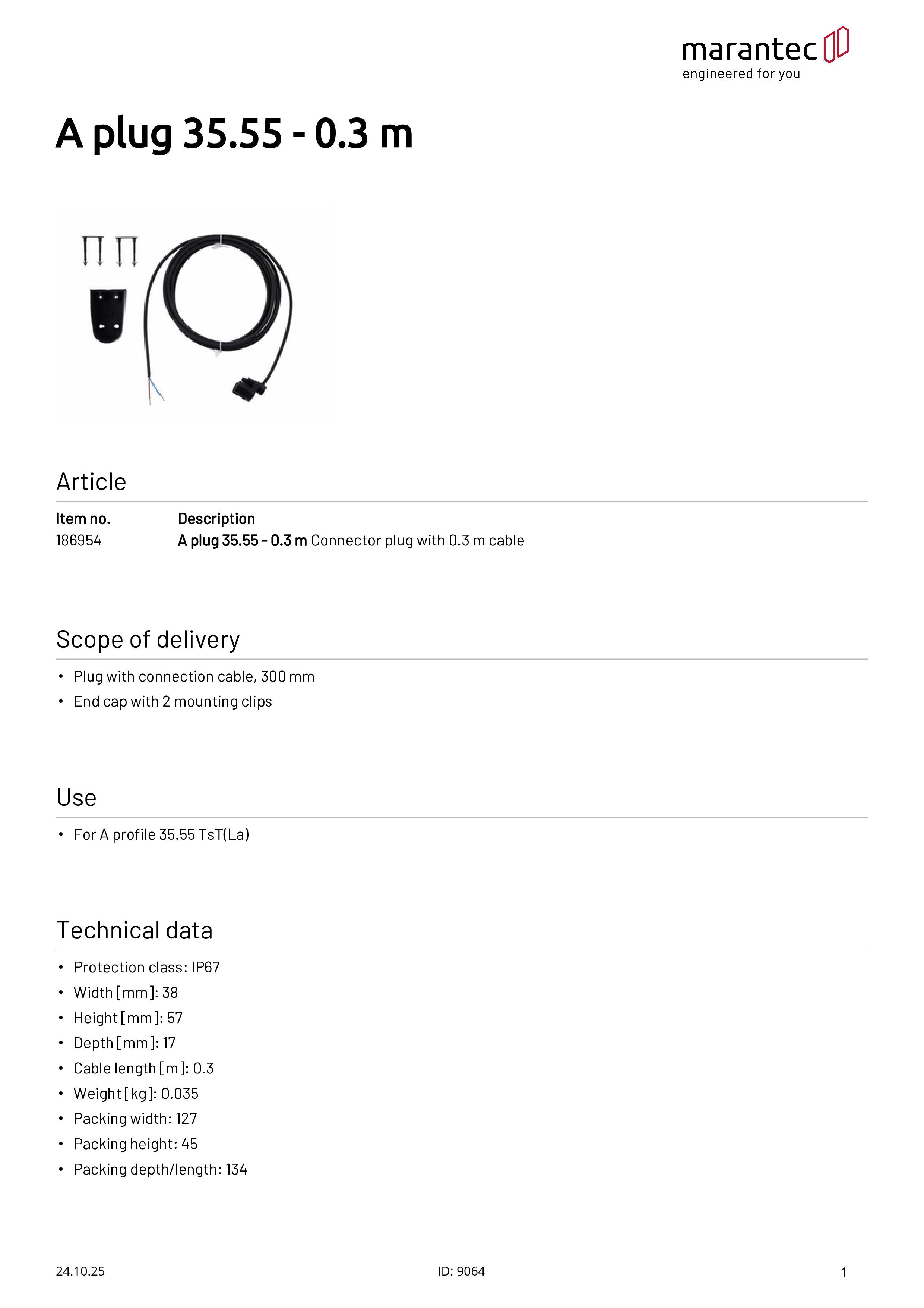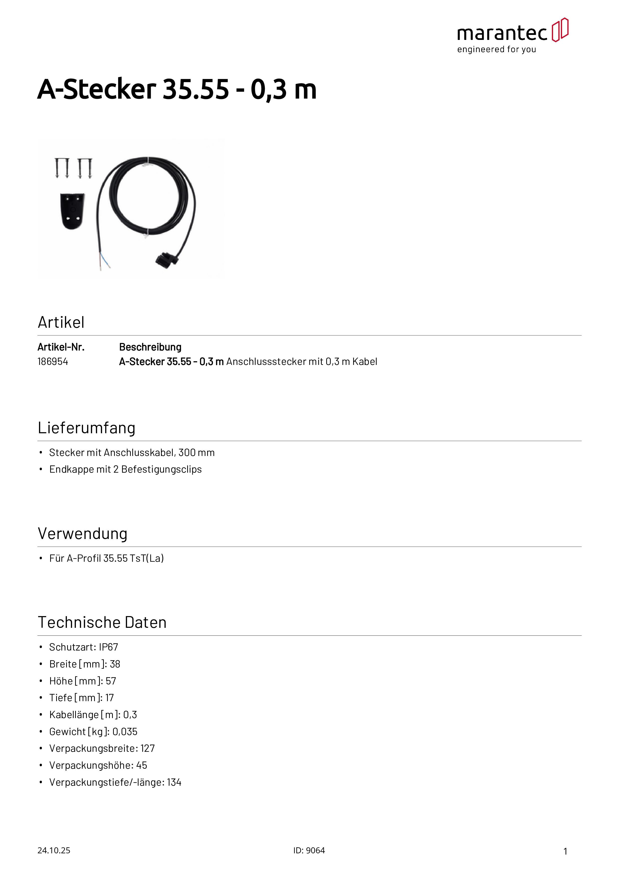 A-Stecker 35.55 - 0,3 m Anschlussstecker mit 0,3 m Kabel