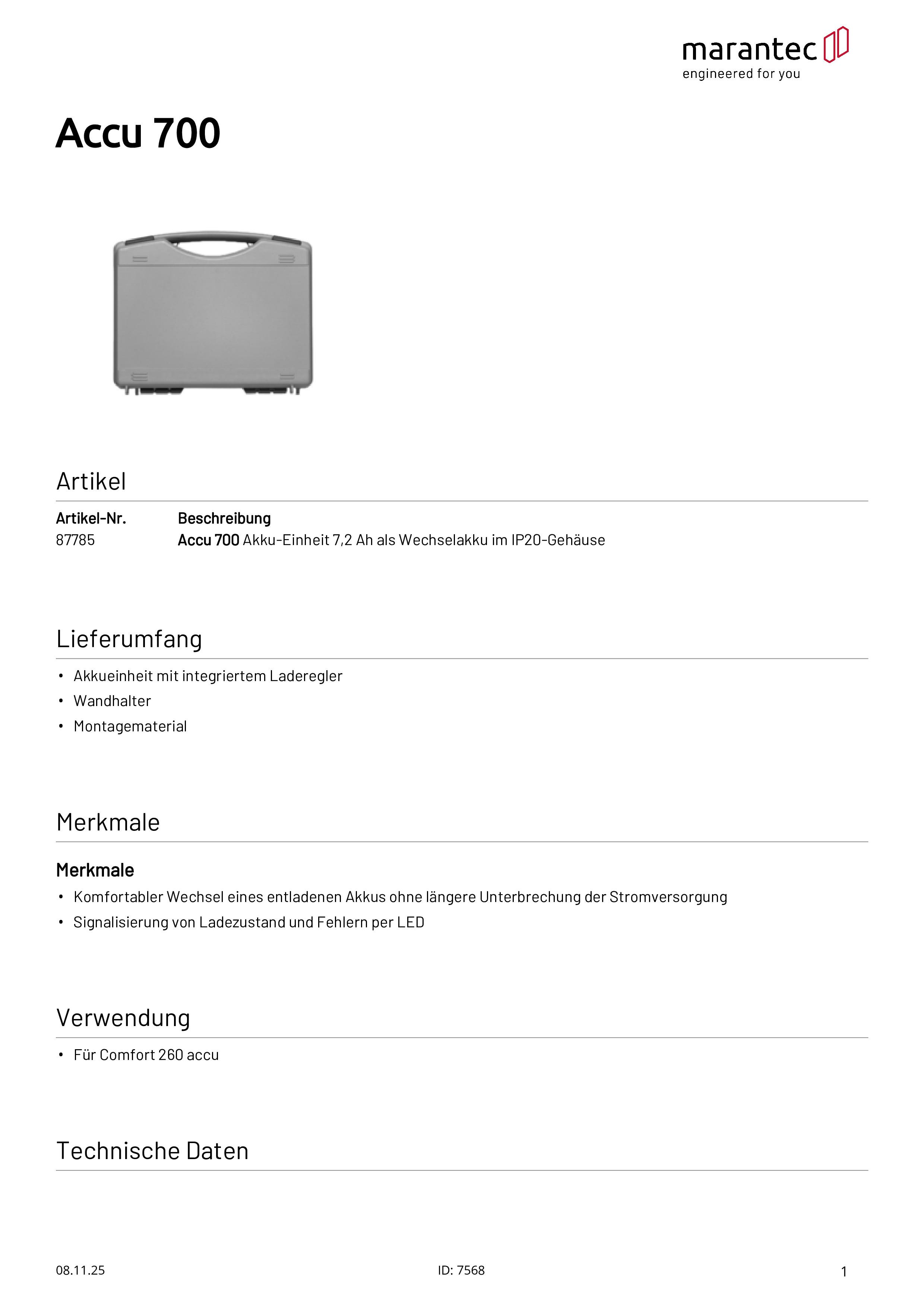 Accu 700 Akku-Einheit 7,2 Ah als Wechselakku im Koffer, IP20