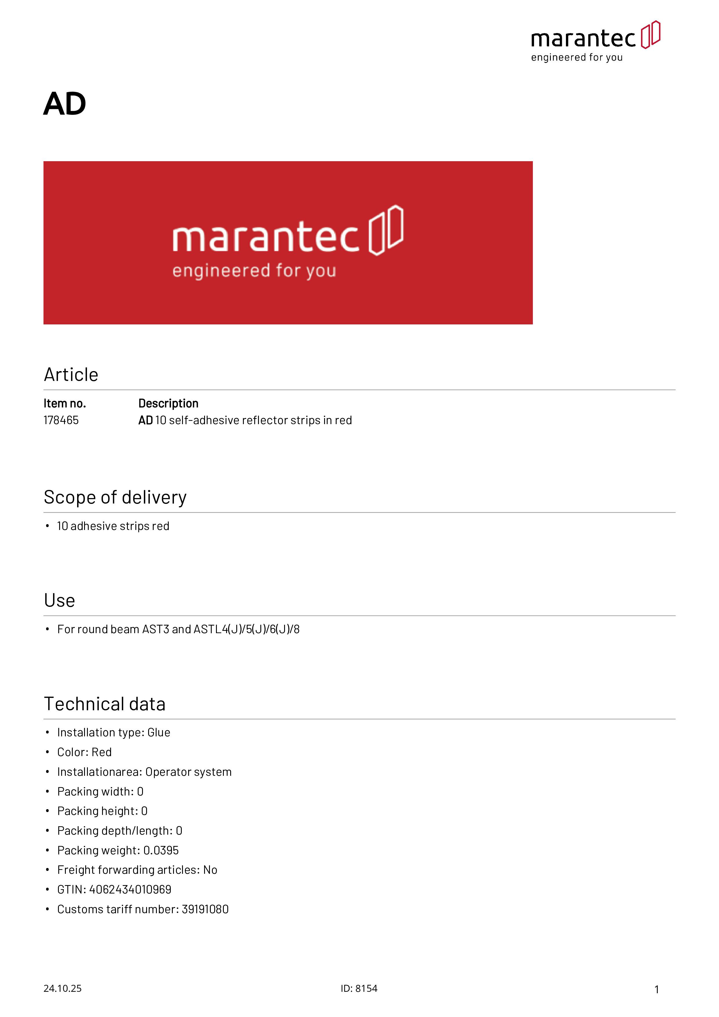 AD 10 selbstklebende Reflektorstreifen in Rot