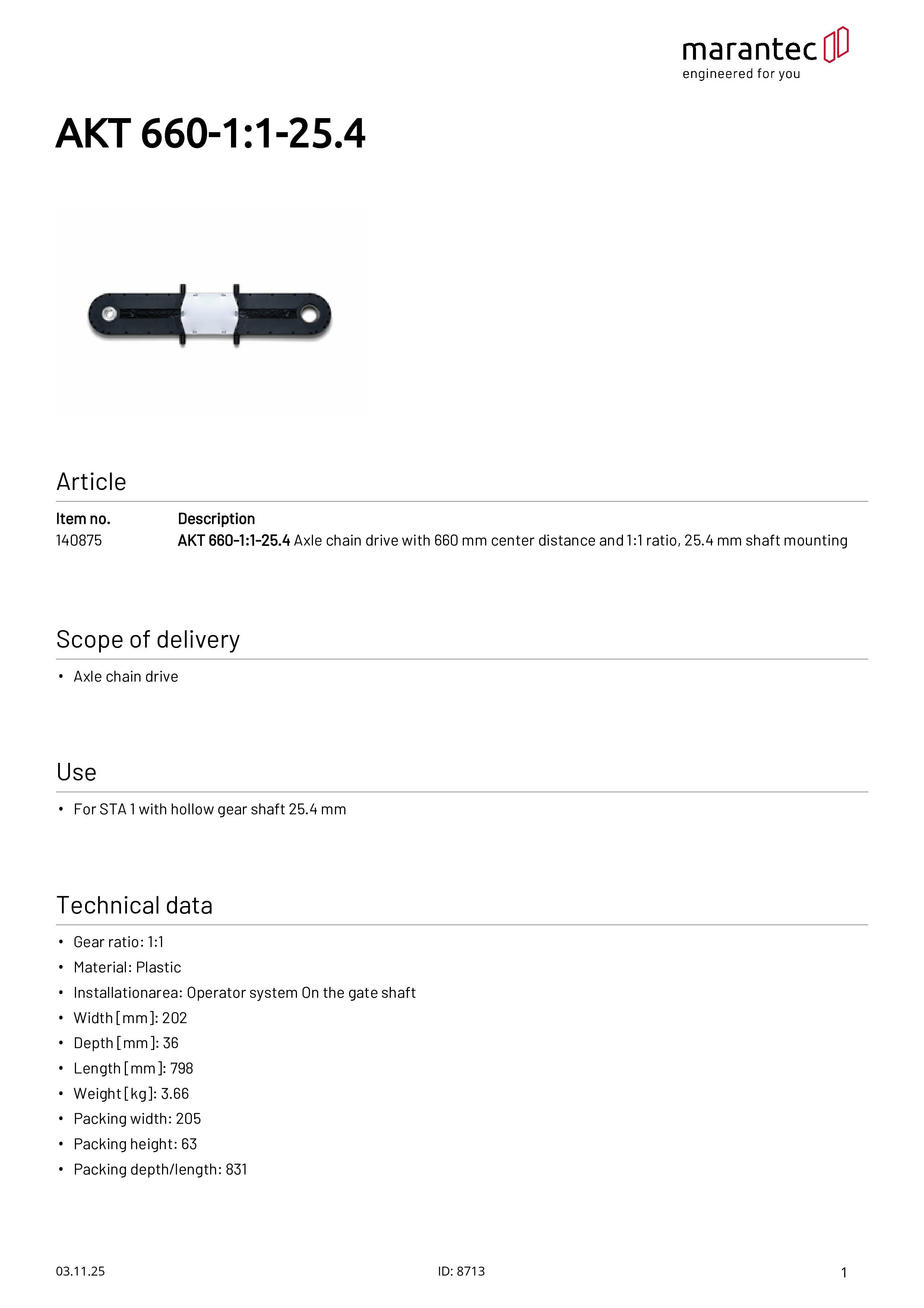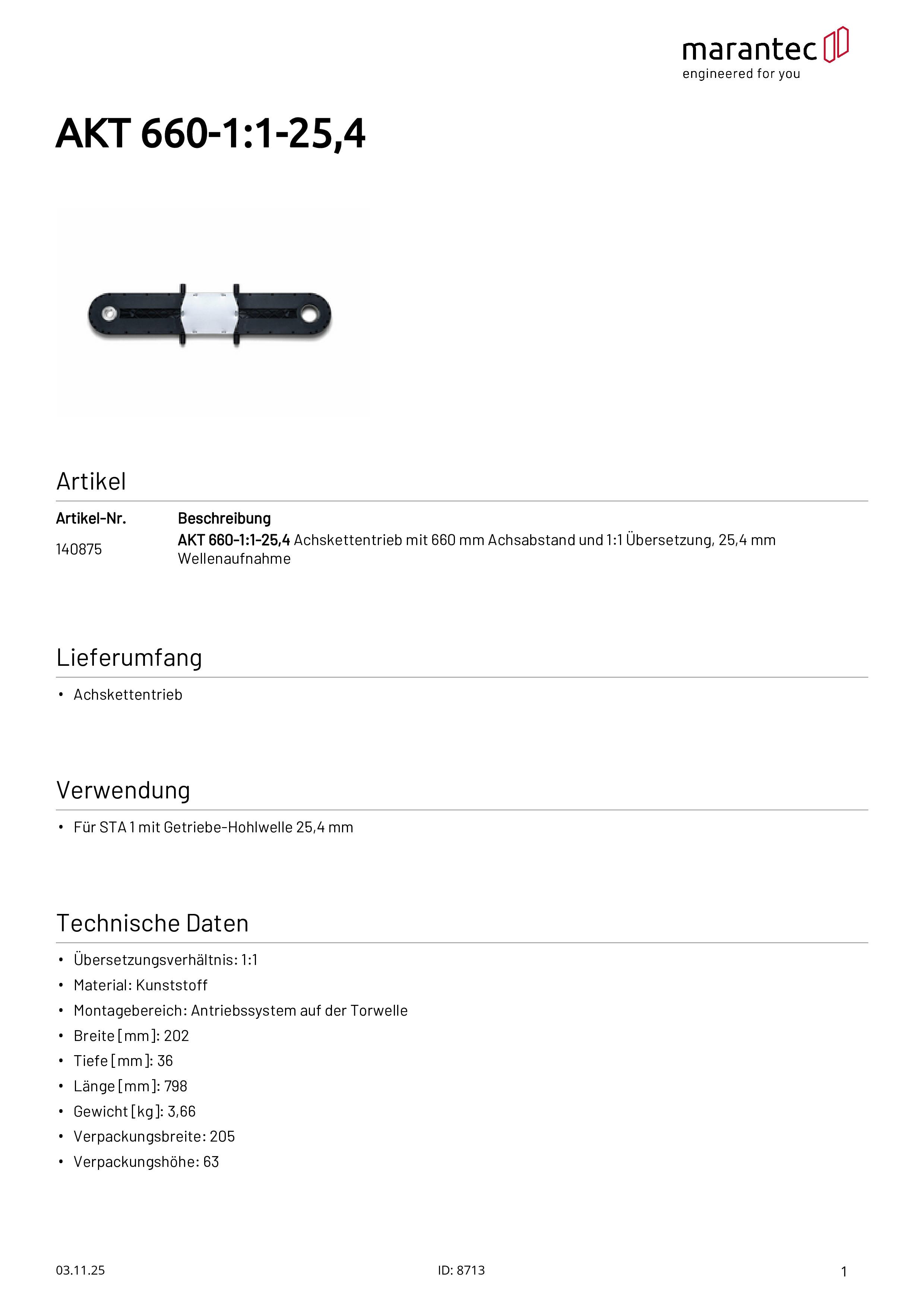 AKT 660-1:1-25,4 Achskettentrieb mit 660 mm Achsabstand
