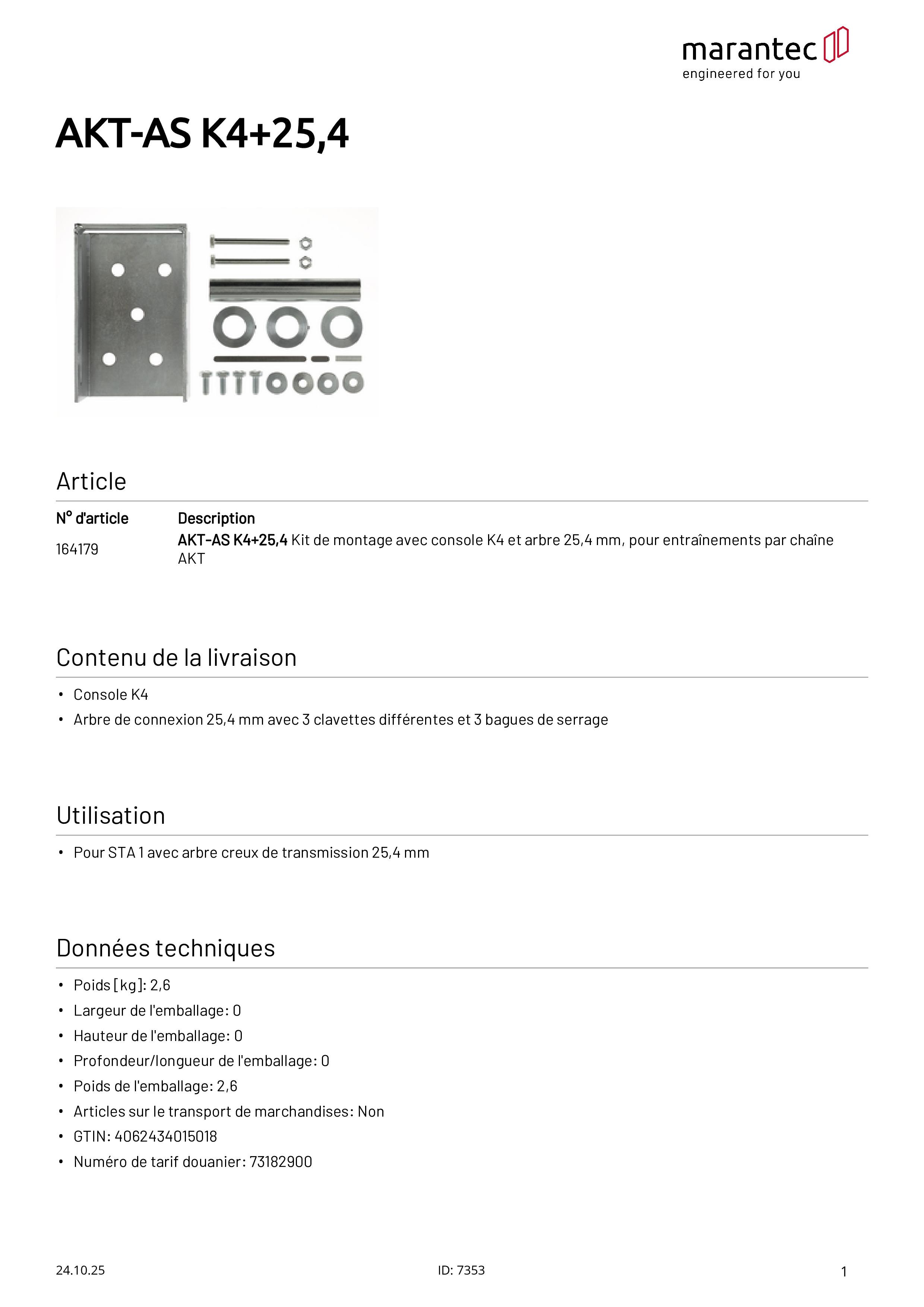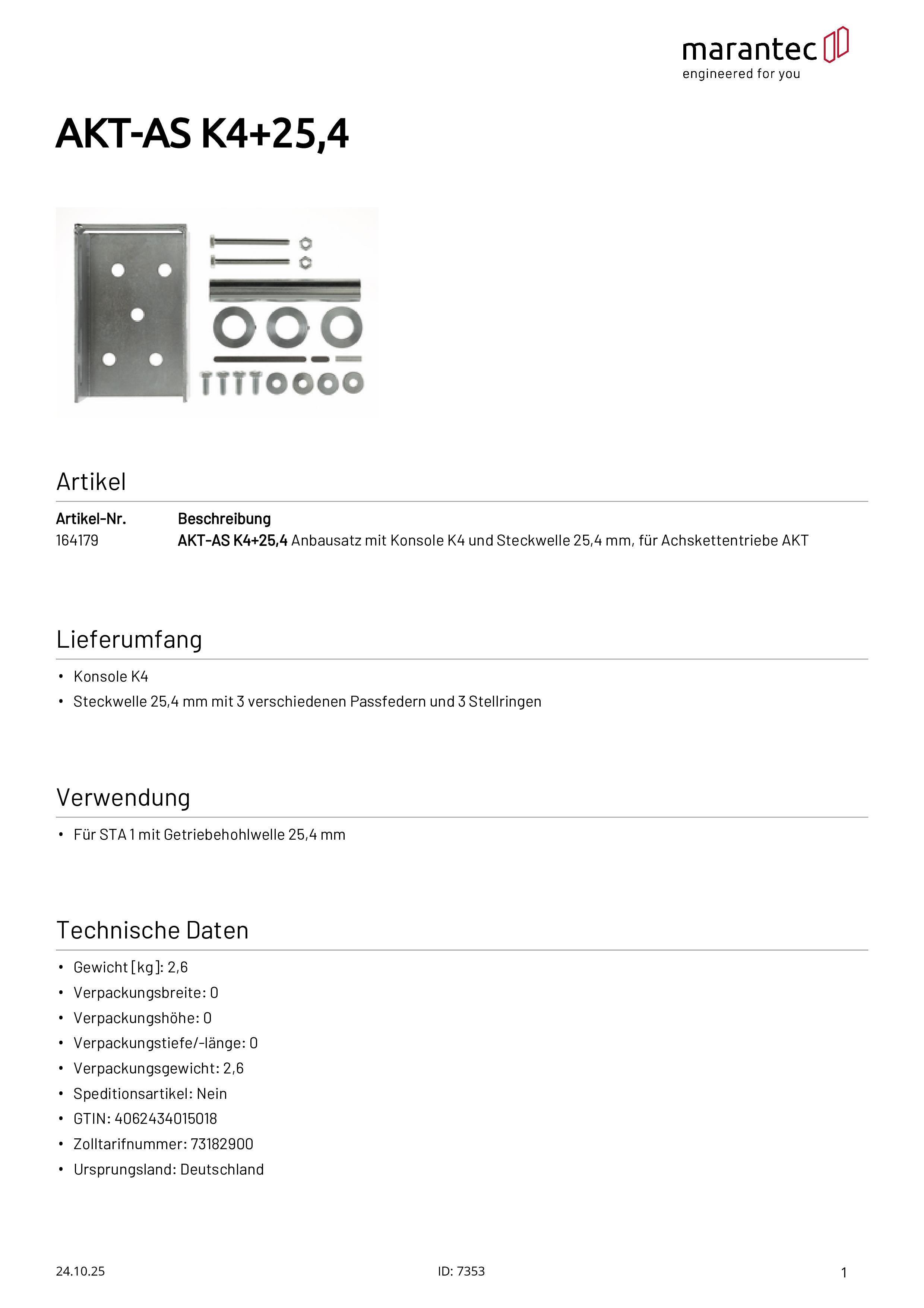 AKT-AS K4+25,4 Anbausatz Konsole K4 und Steckwelle 25,4 mm für Achskettentriebe