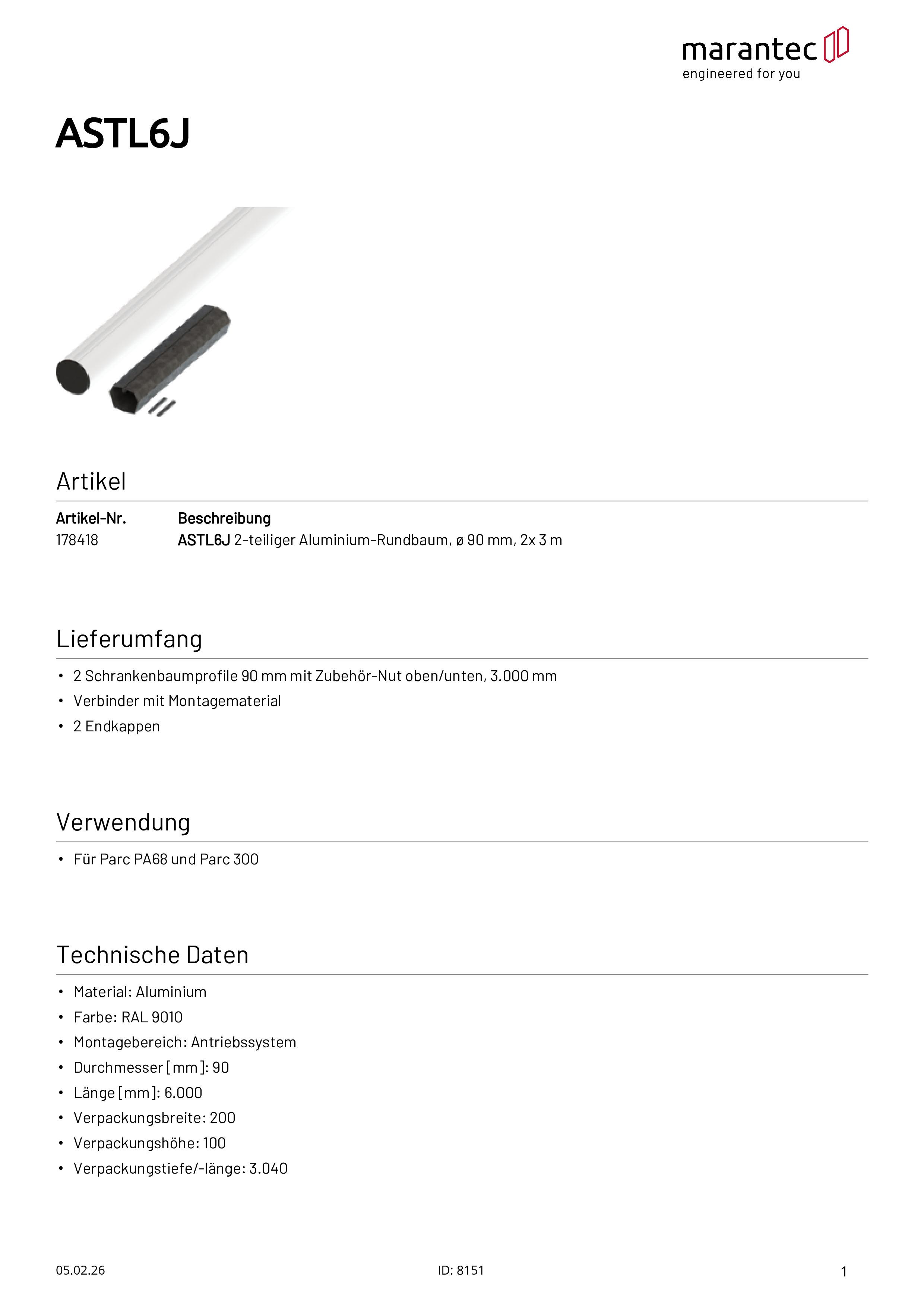 ASTL6J 2-teiliger Aluminium-Rundbaum, ø 90 mm, 2x 3 m