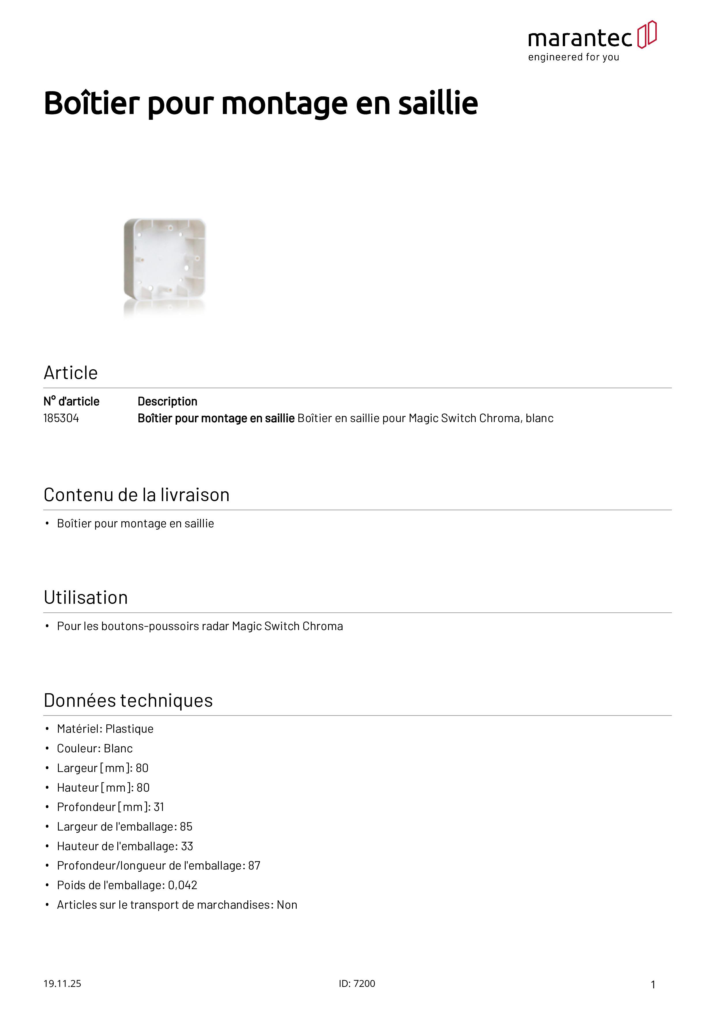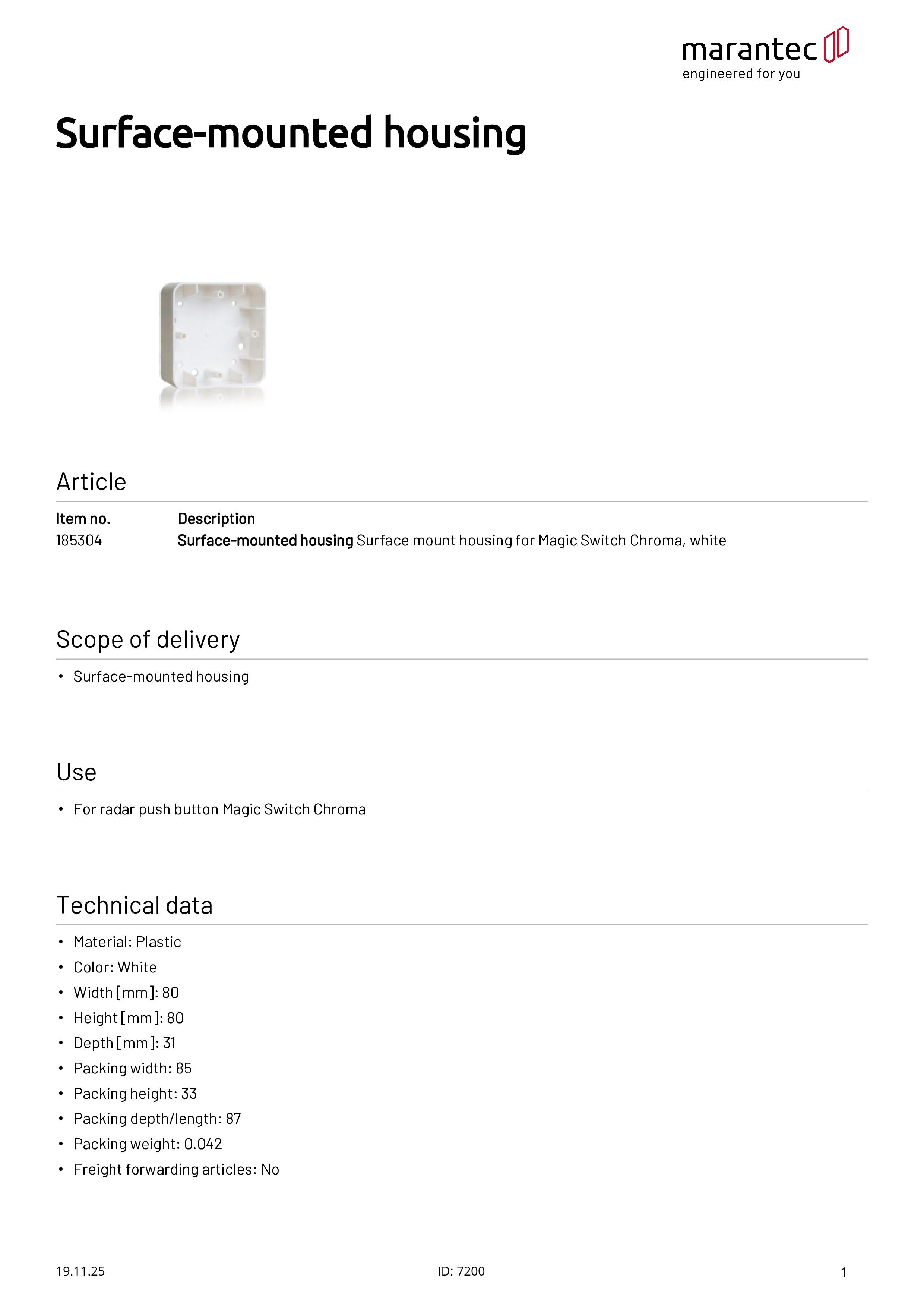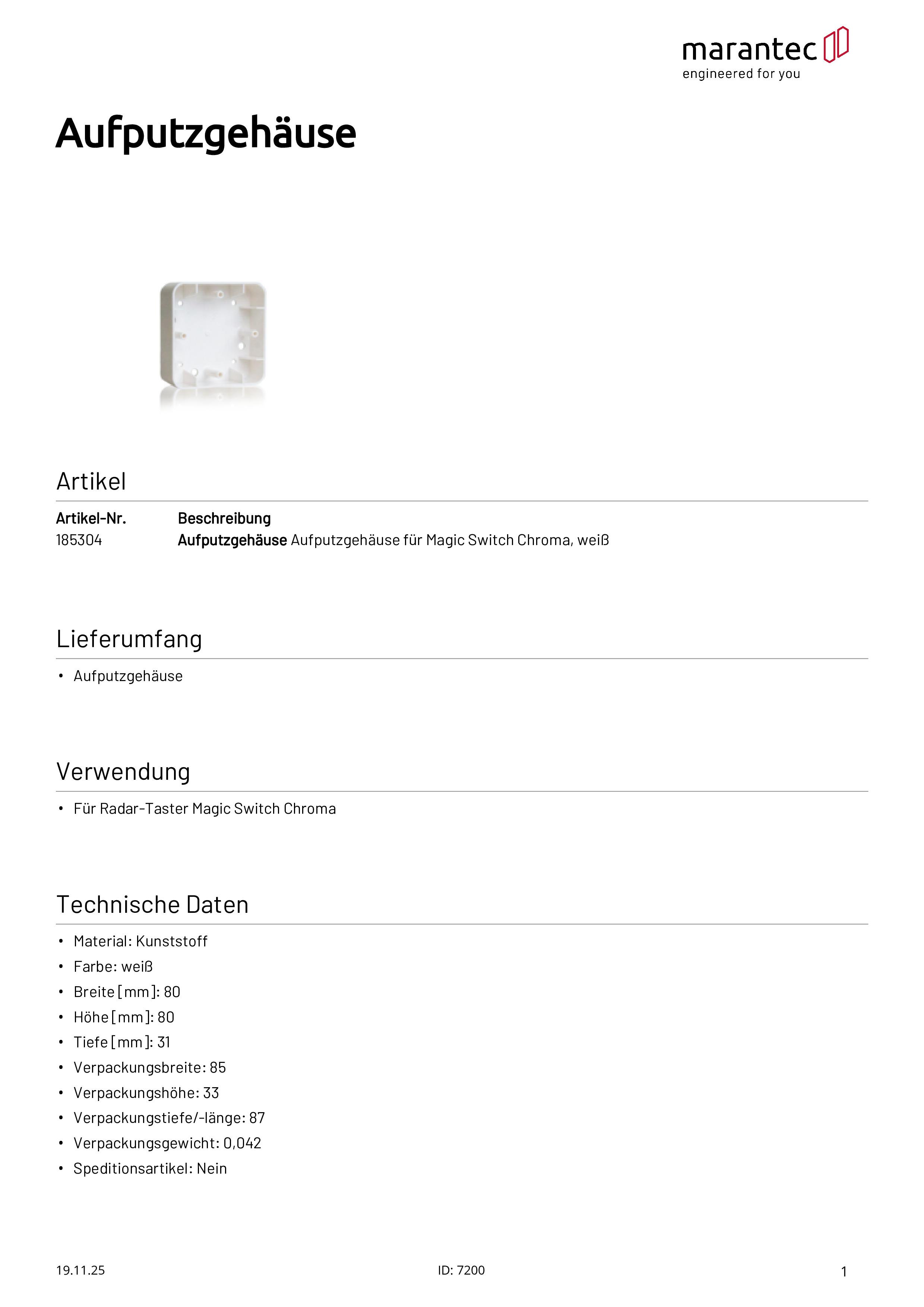 Aufputzgehäuse für Magic Switch Chroma, weiß