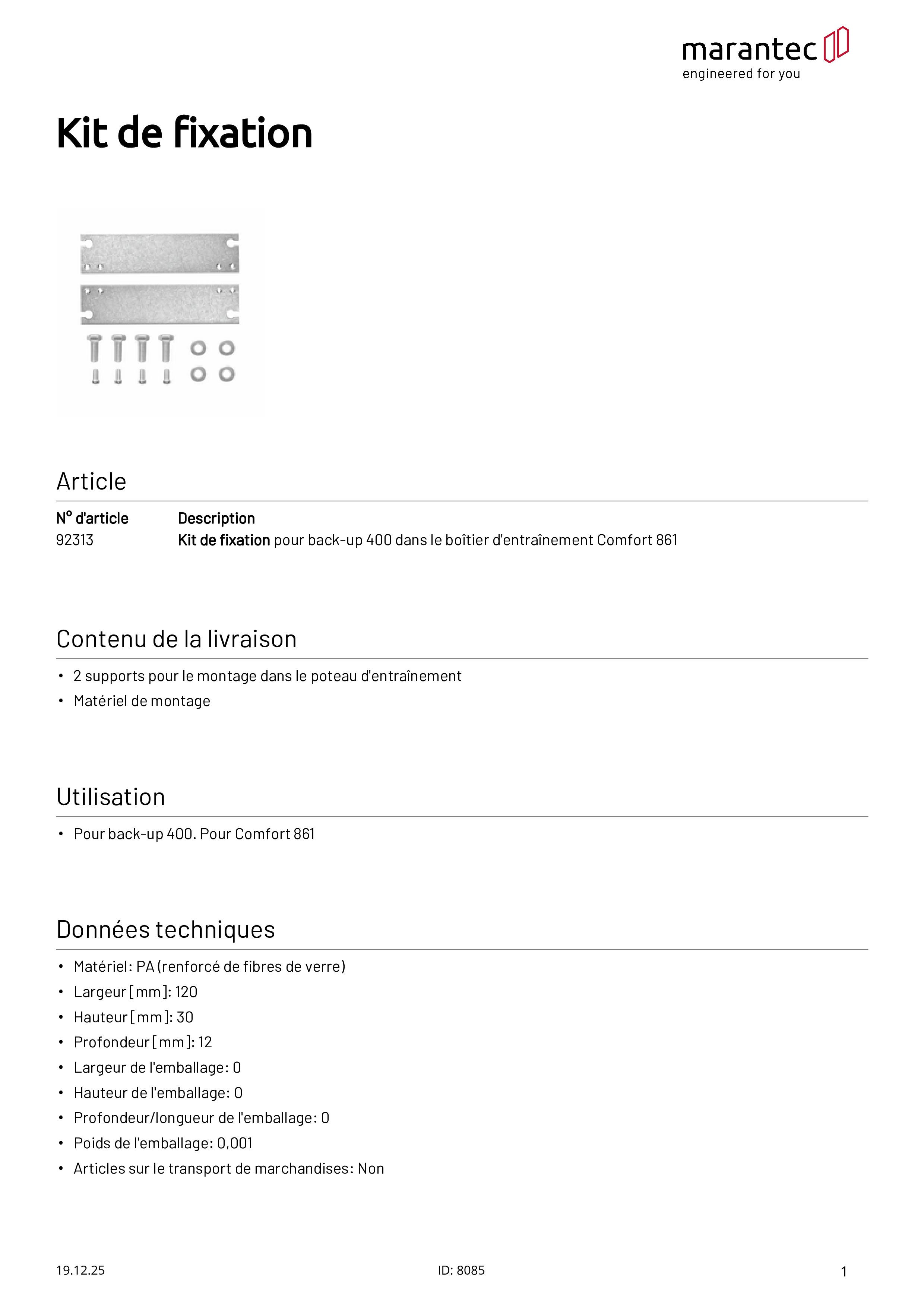Befestigungs-Set für back-up 400 im Antriebsgehäuse Comfort 861
