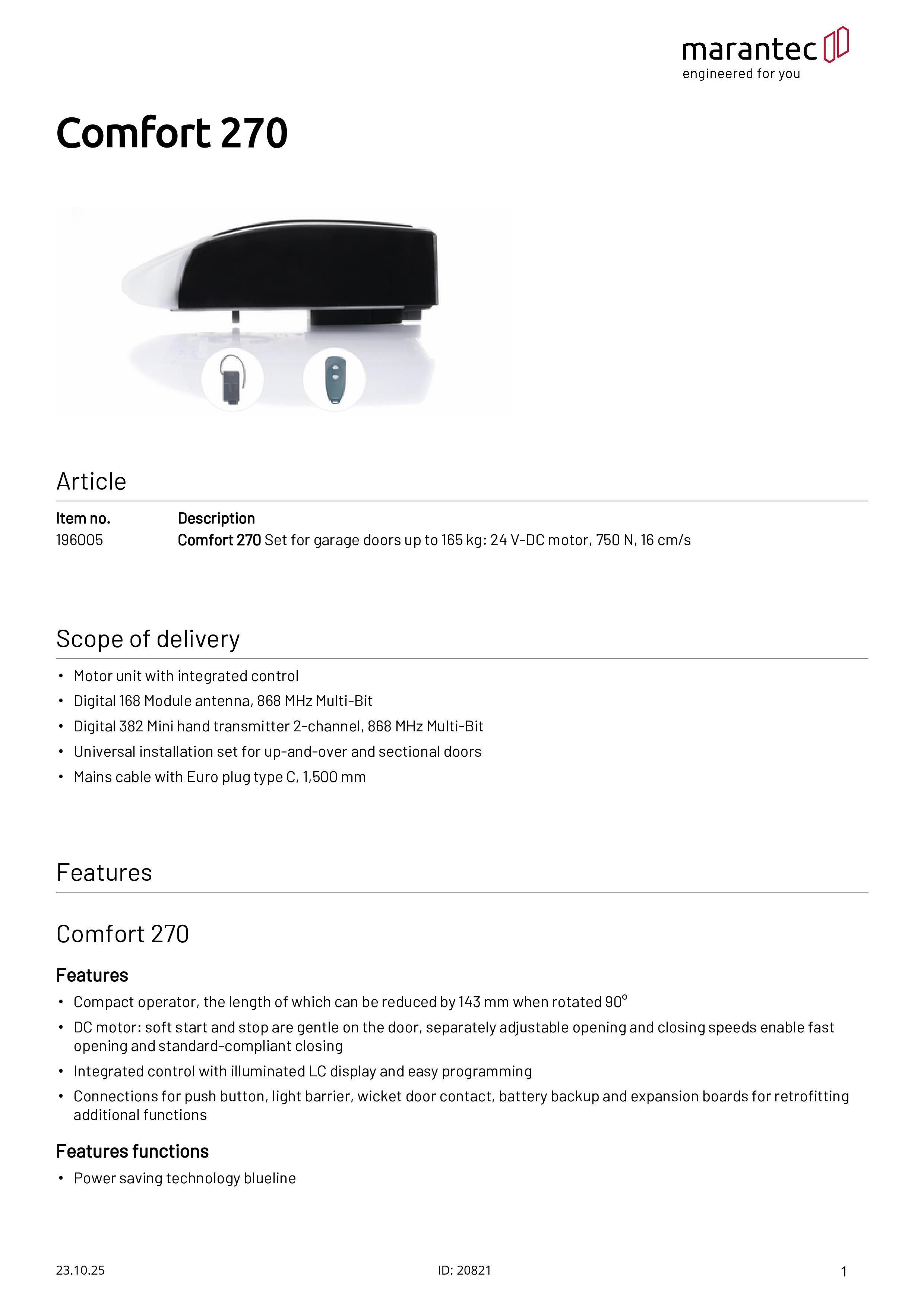 Comfort 270 Garagentorantrieb 868 MHz Multi-Bit