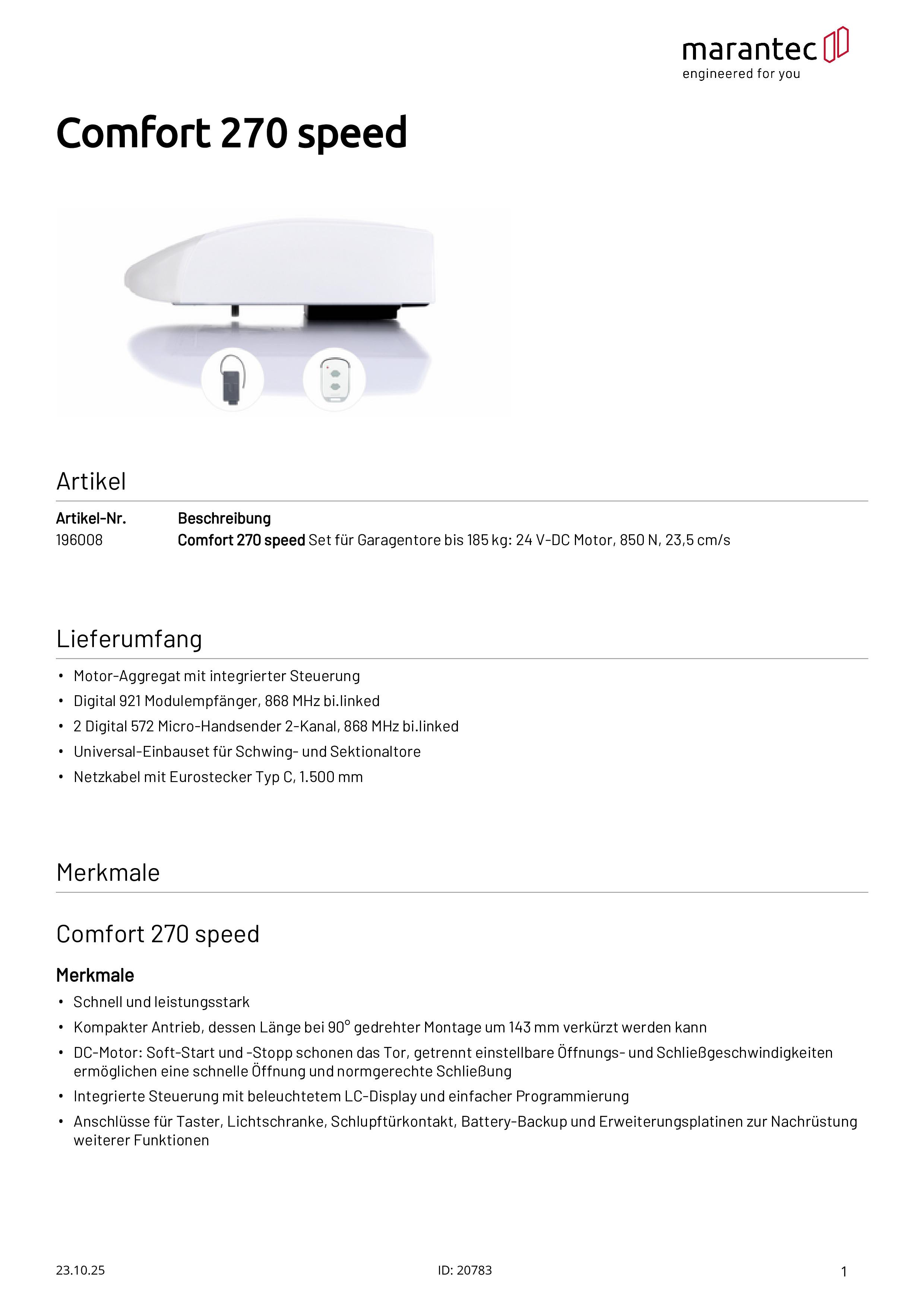 Comfort 270 speed Garagentorantrieb 868 MHz bi∙linked