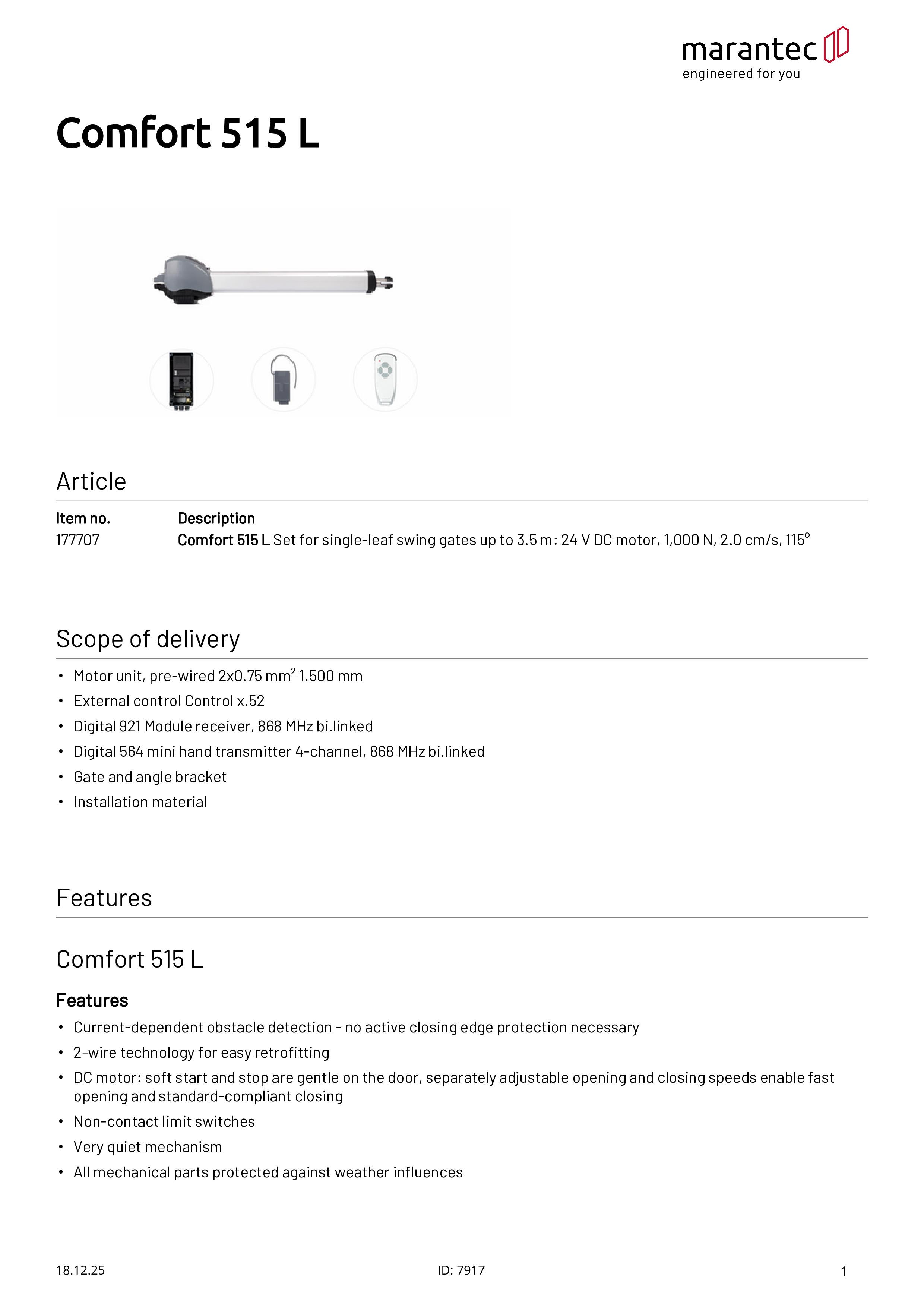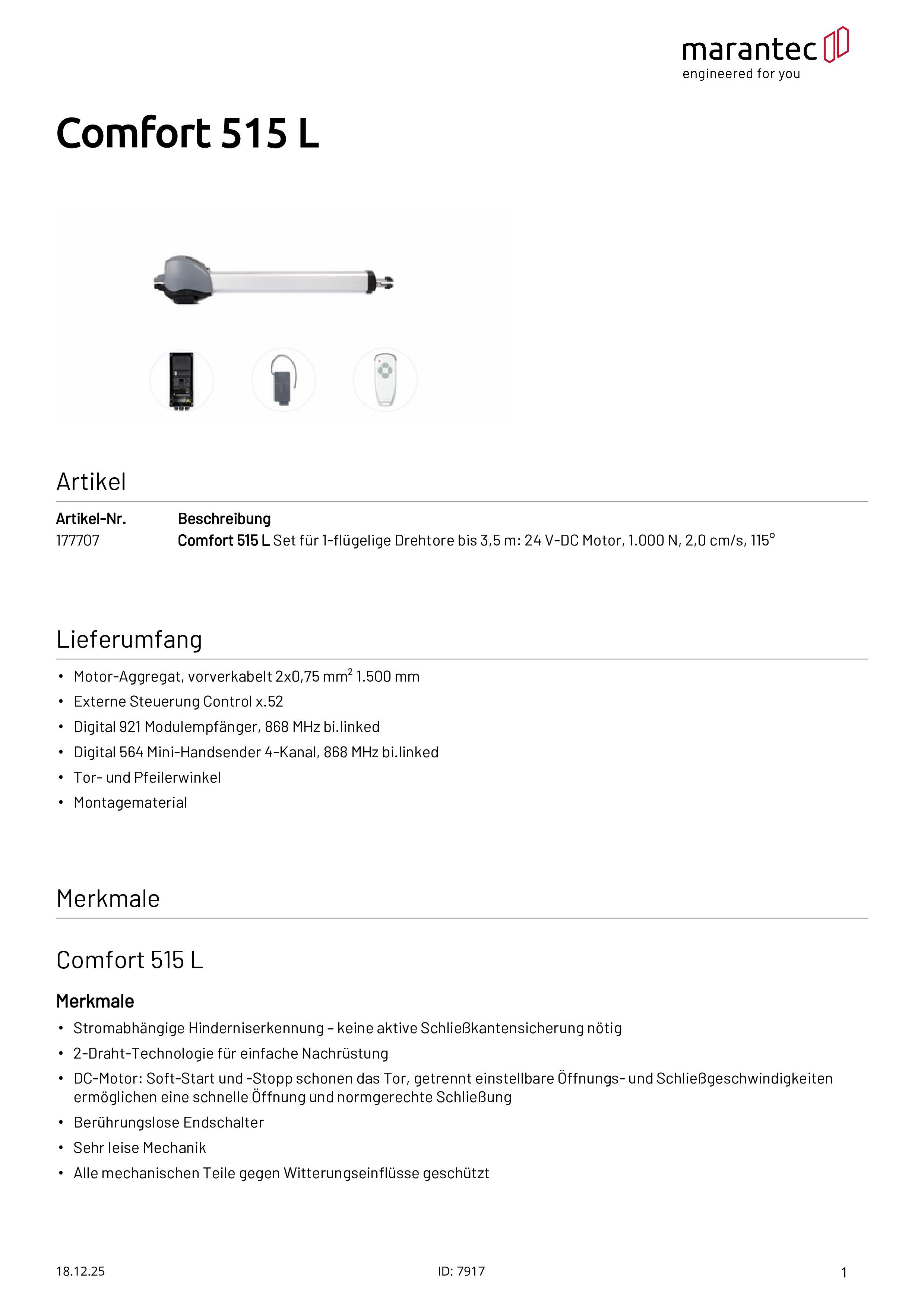 Comfort 515 L Set für 1-flügelige Drehtore bis 3,5 m, 868 MHz bi.linked
