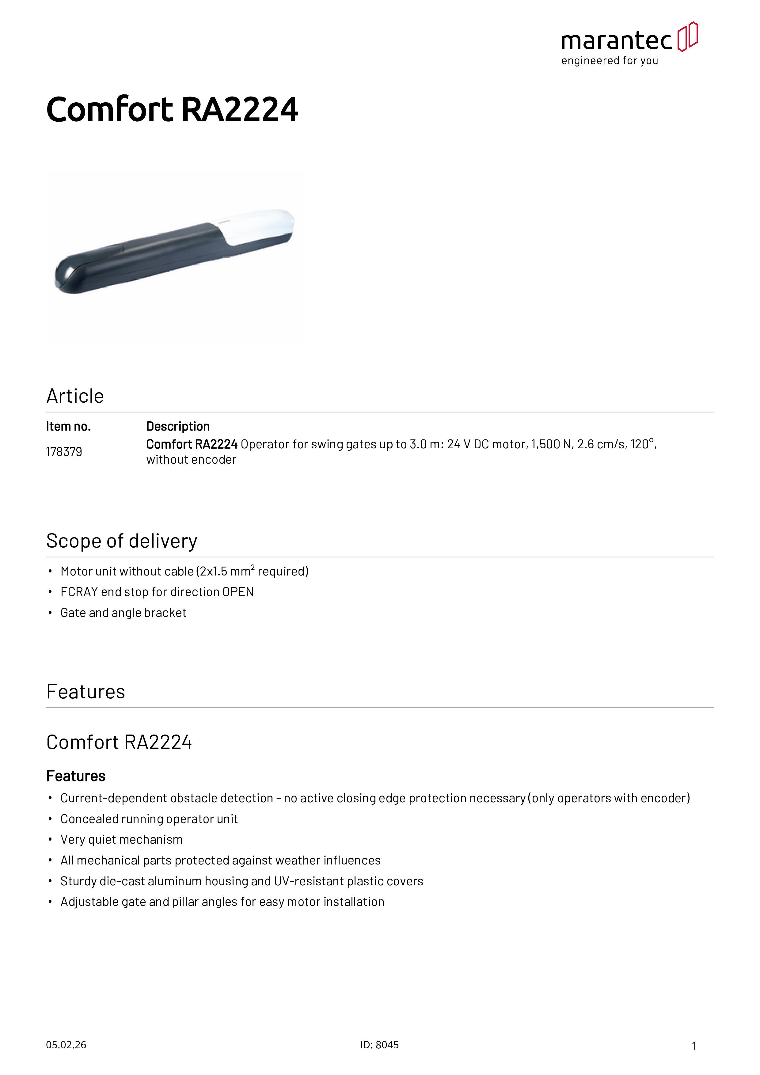 Comfort RA2224 Antrieb für Drehtore bis 3,0 m ohne Encoder