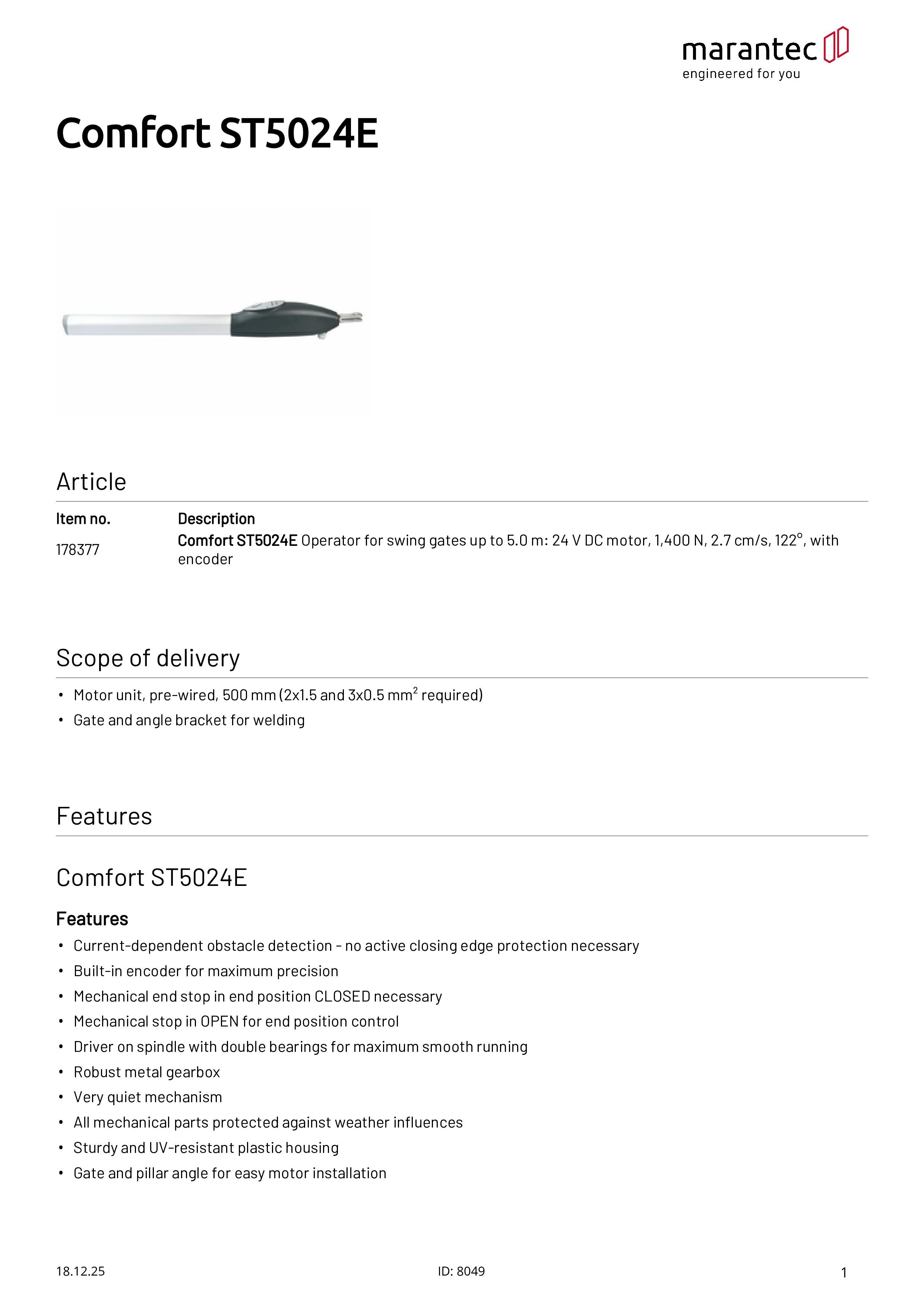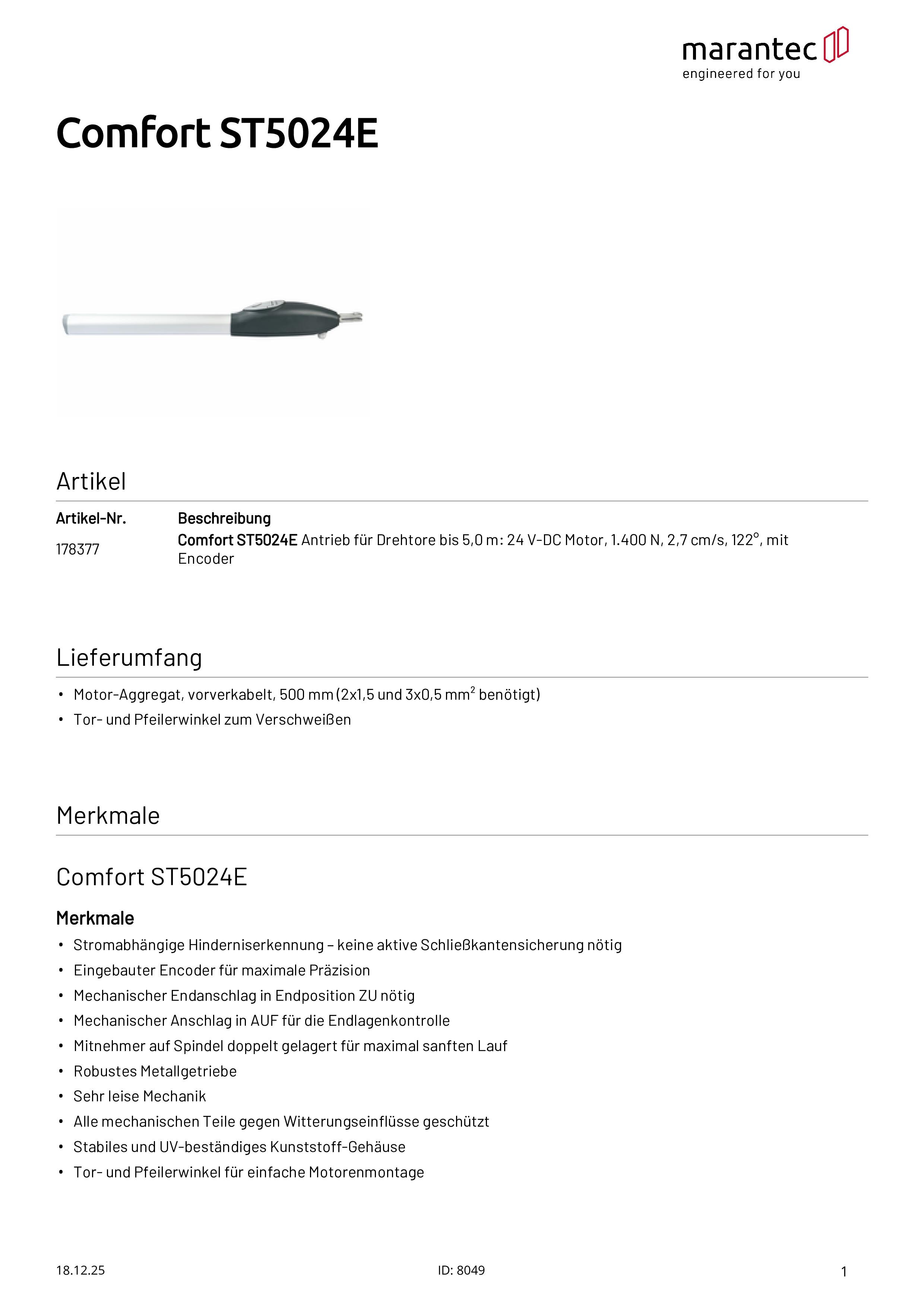 Comfort ST5024E Antrieb für Drehtore bis 5,0 m mit Encoder