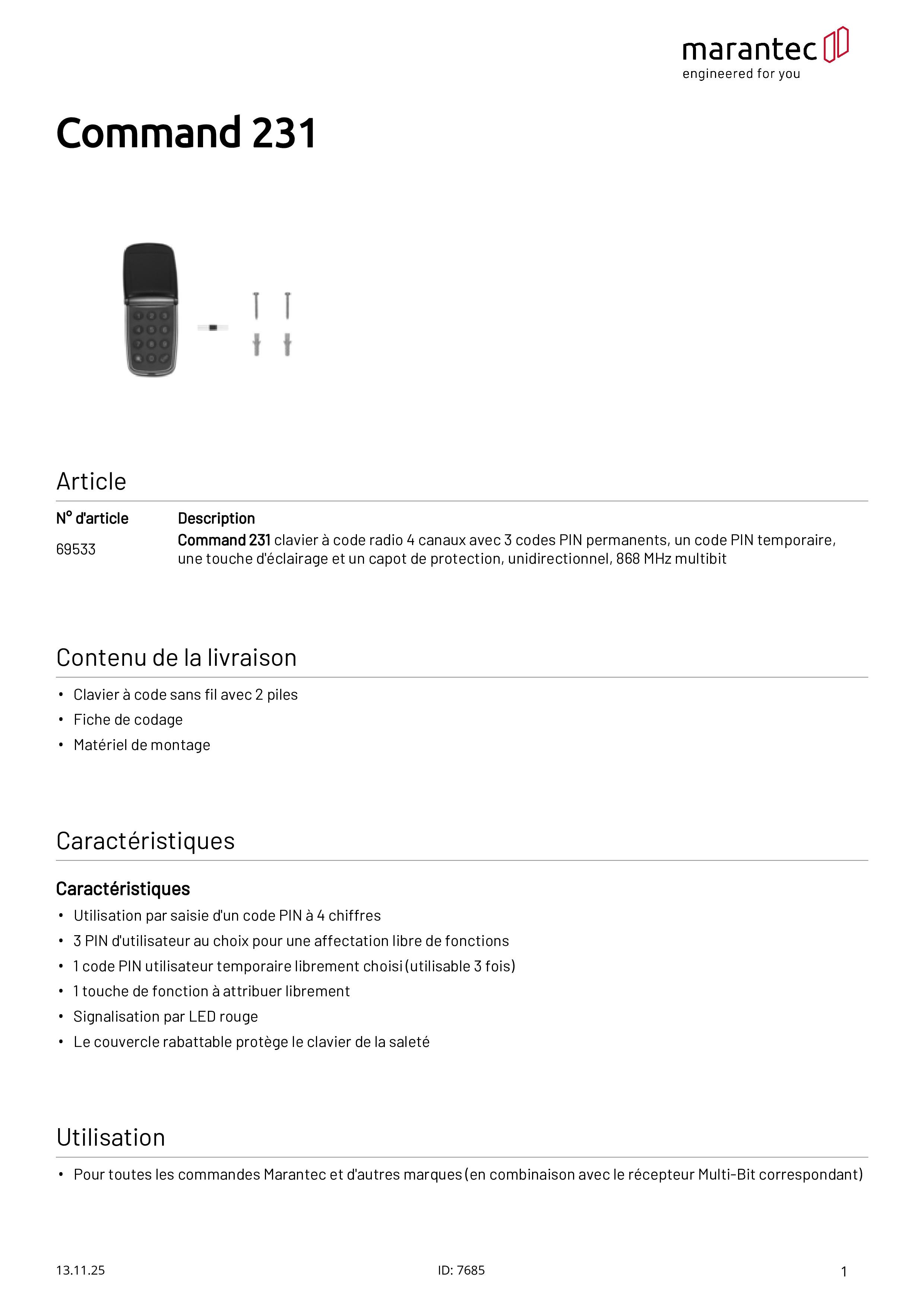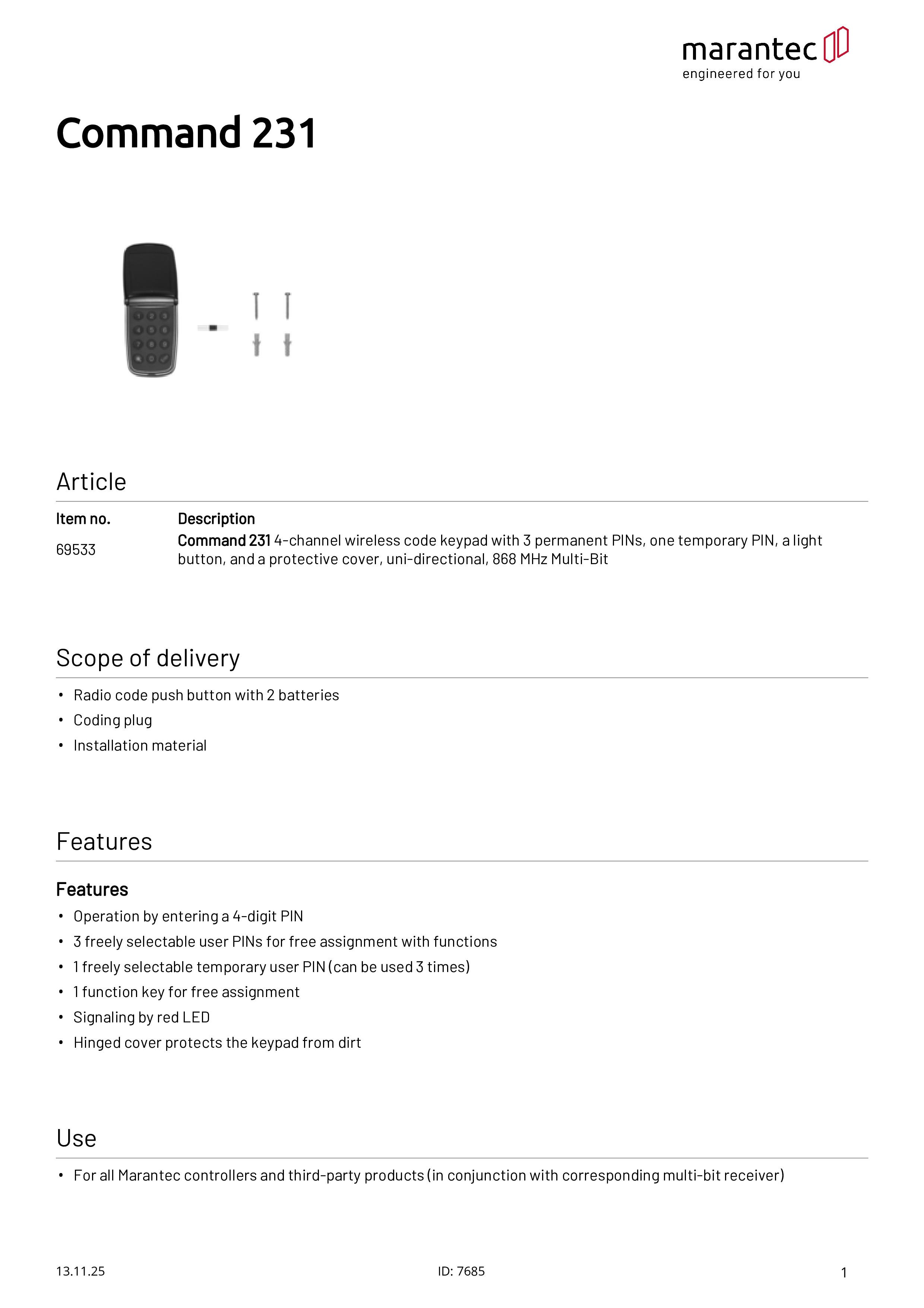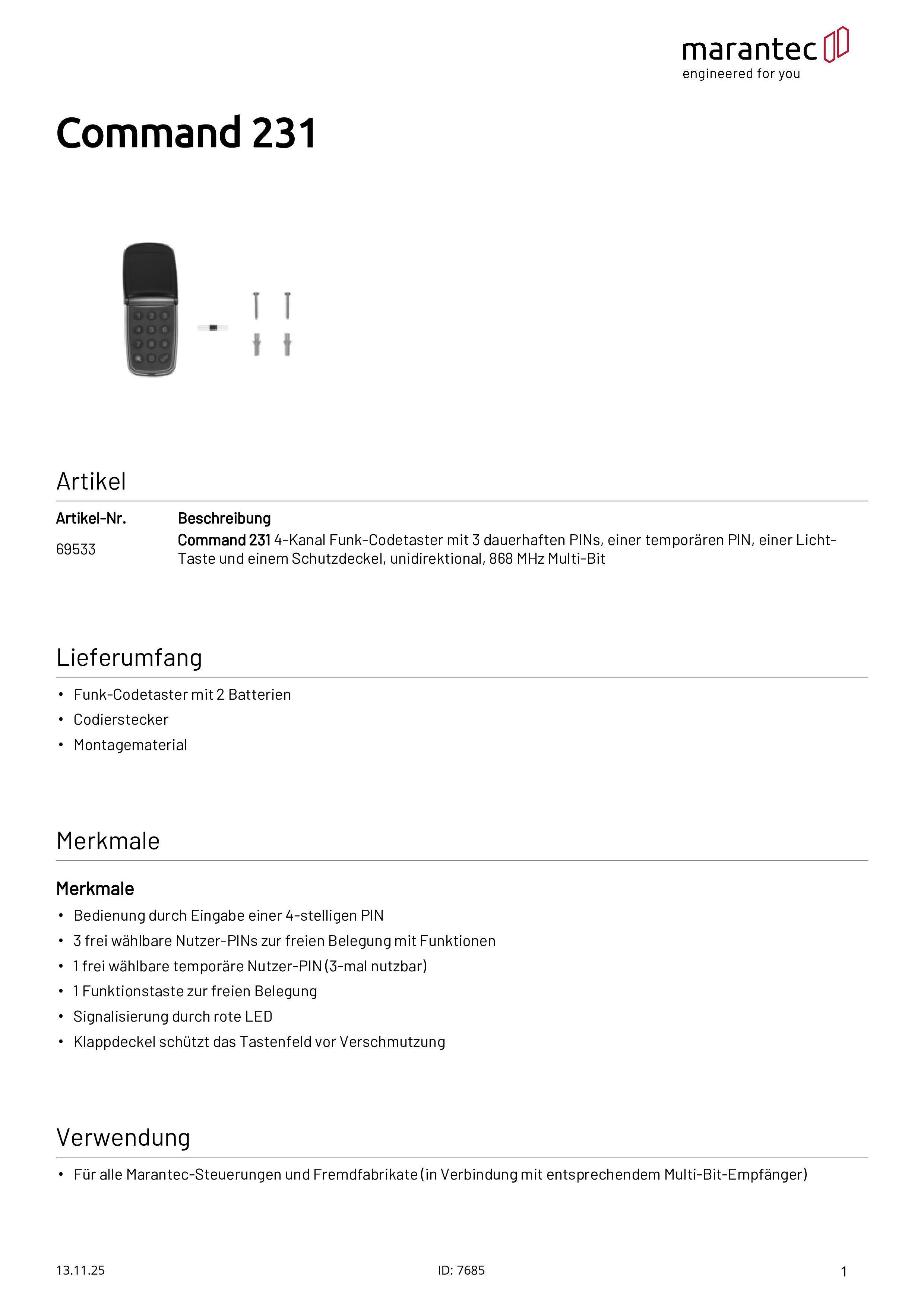 Command 231 4-Kanal Funk-Codetaster, 868 MHz Multi-Bit