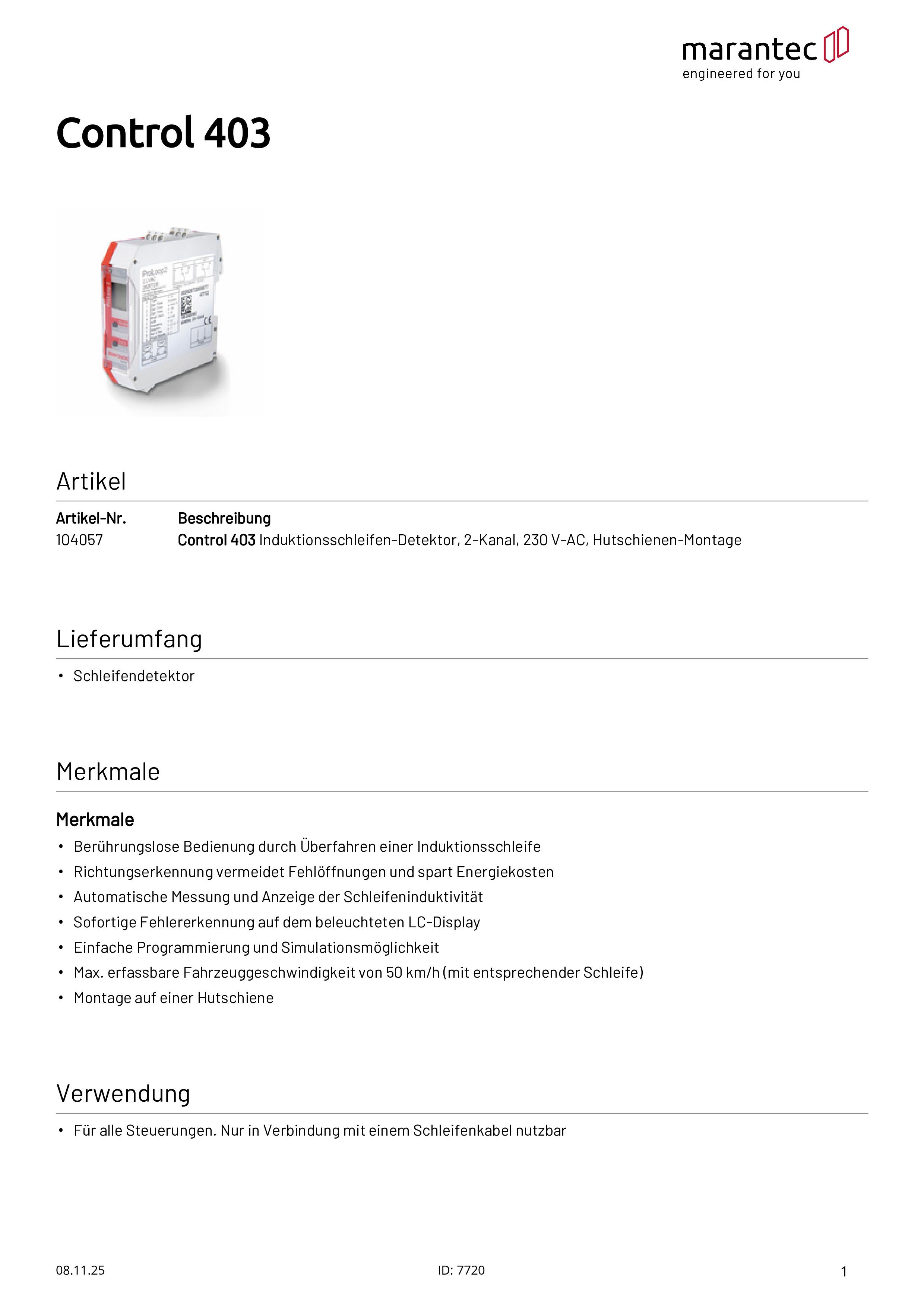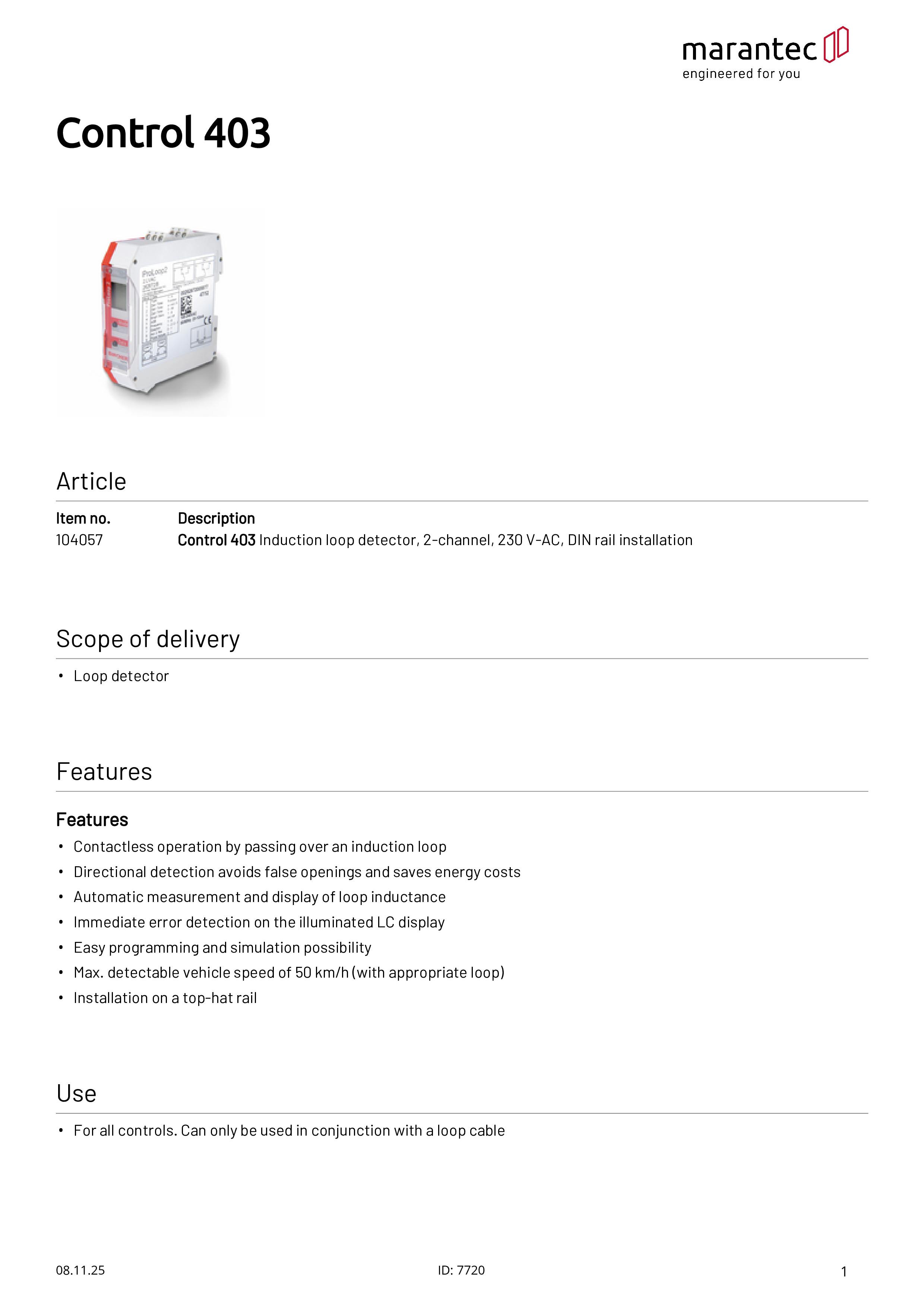 Control 403 Induktionsschleifen-Detektor, 2-Kanal, 230 V-AC