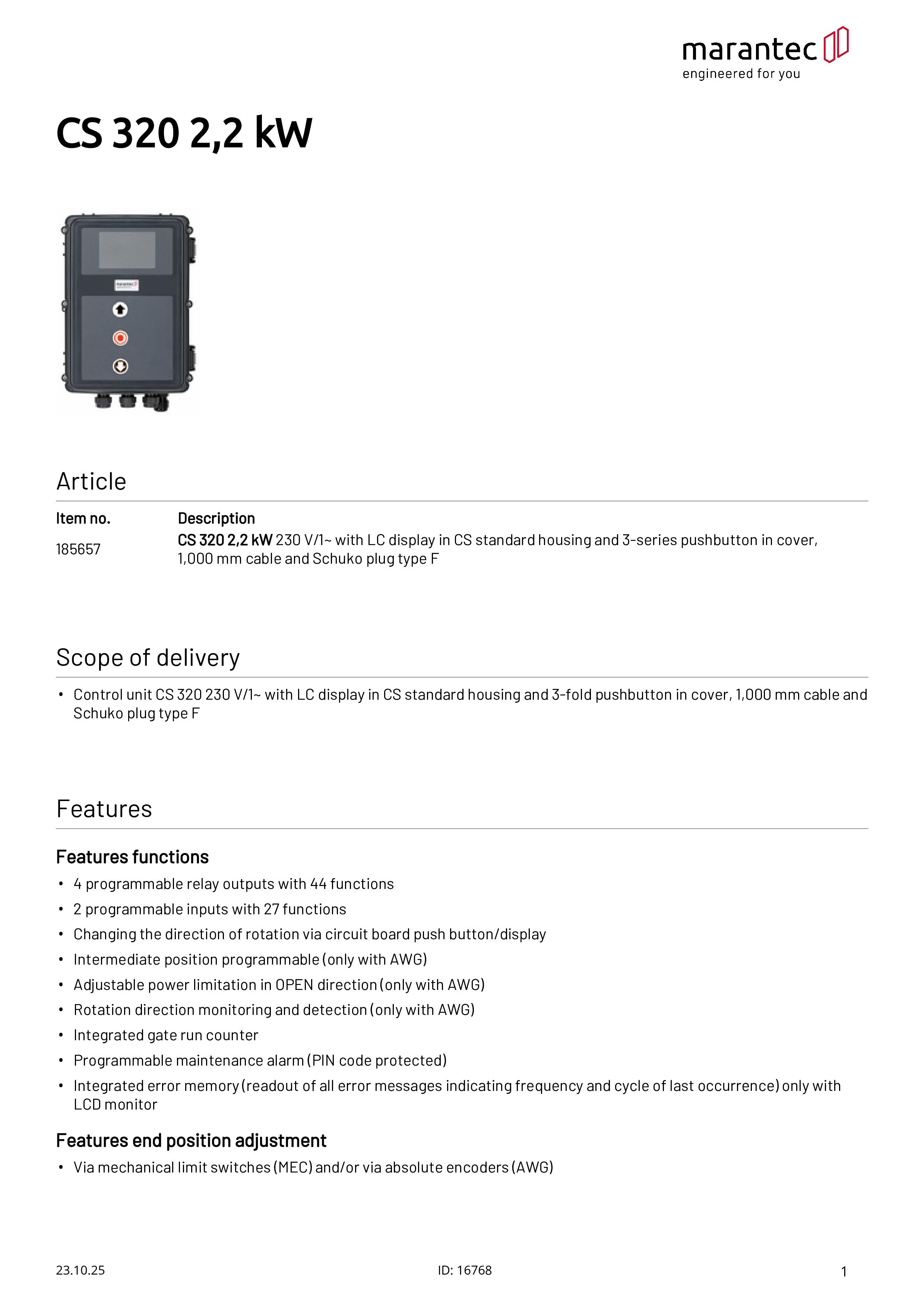 - Steuerung CS 320 230 V/1~ mit LC-Display im CS-Standardgehäuse und 3-fach-Taster im Deckel, 1.000 mm Kabel und Schuko-Stecker Typ F