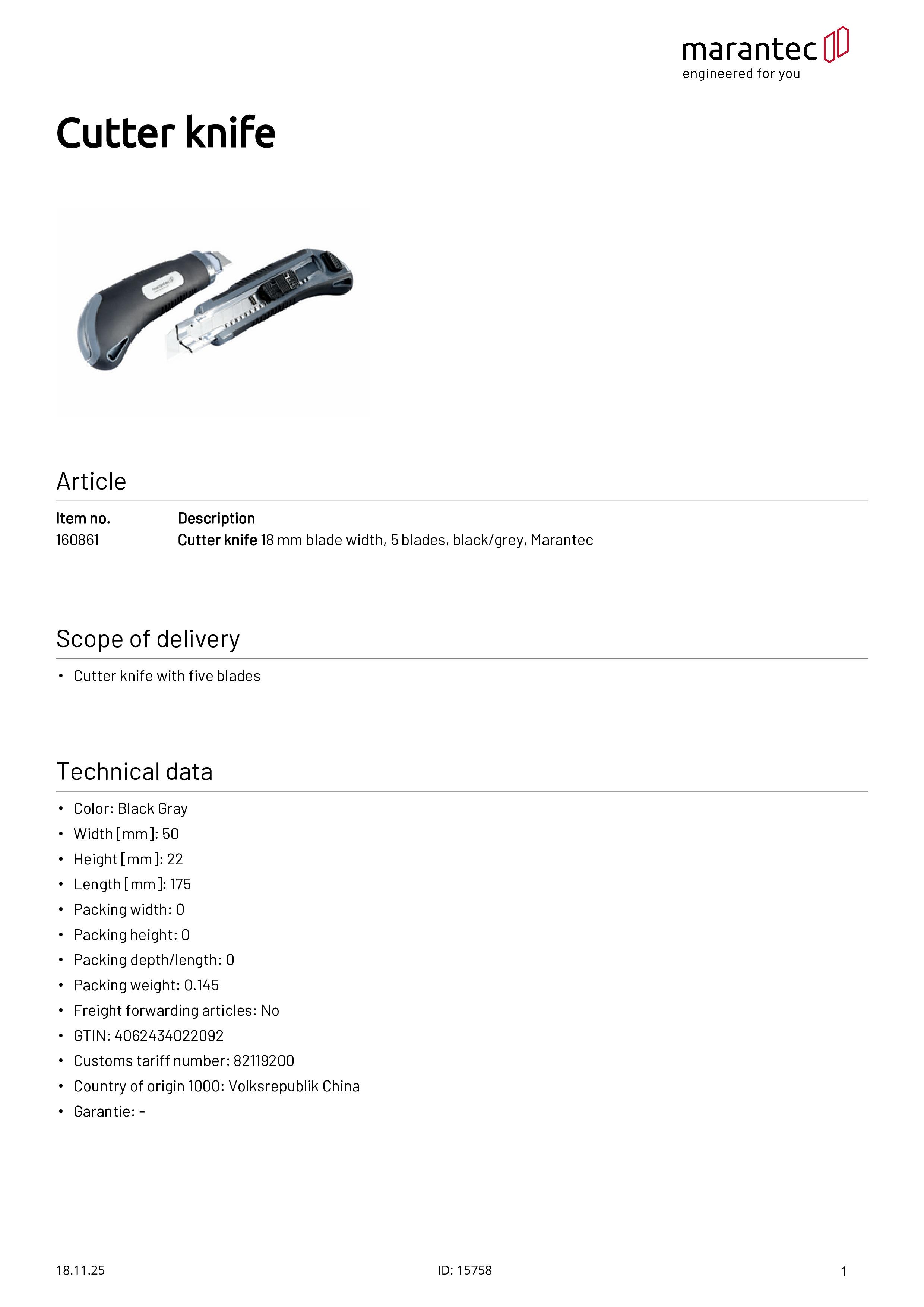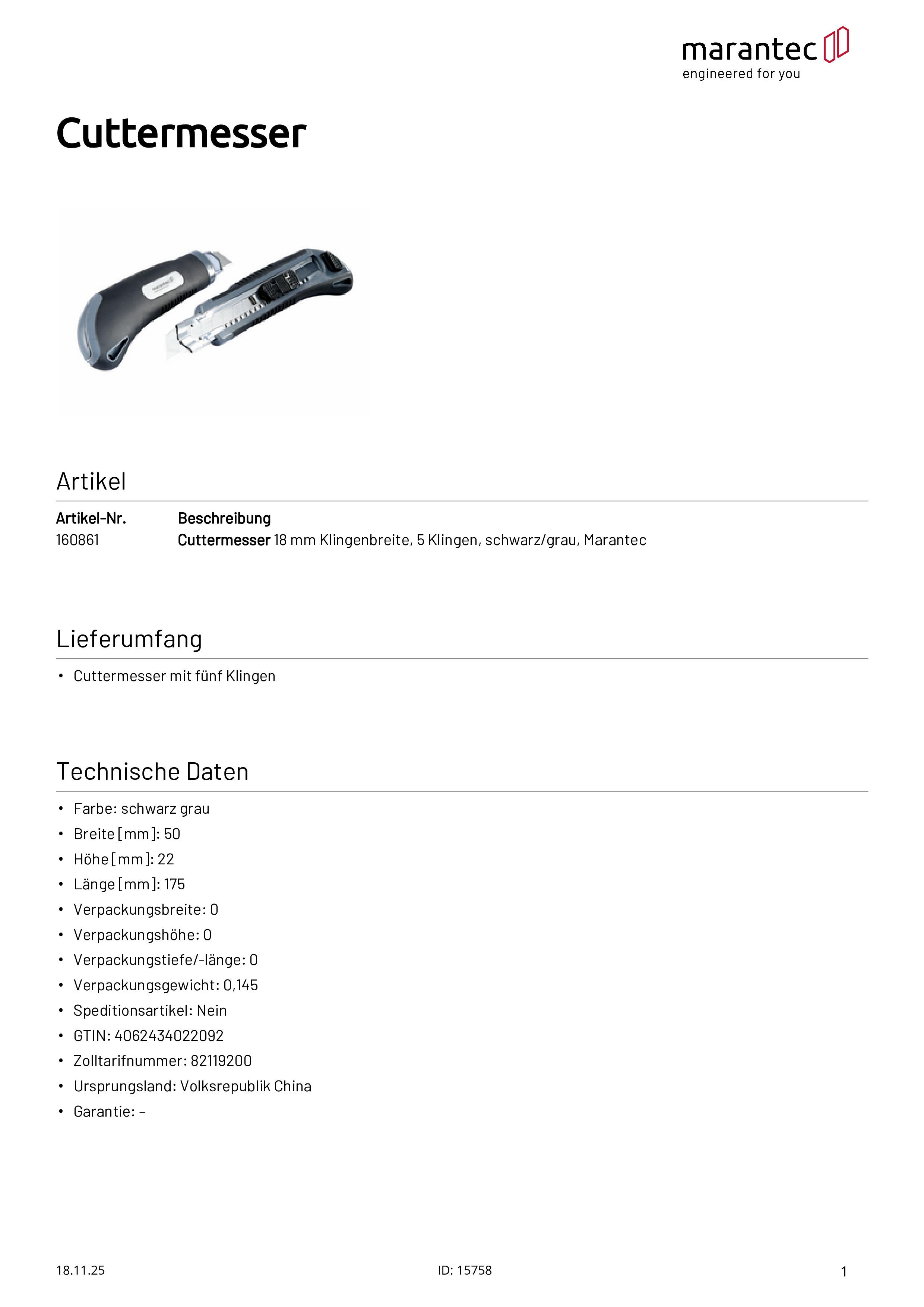 Cuttermesser mit 5 Klingen Marantec schwarz/grau