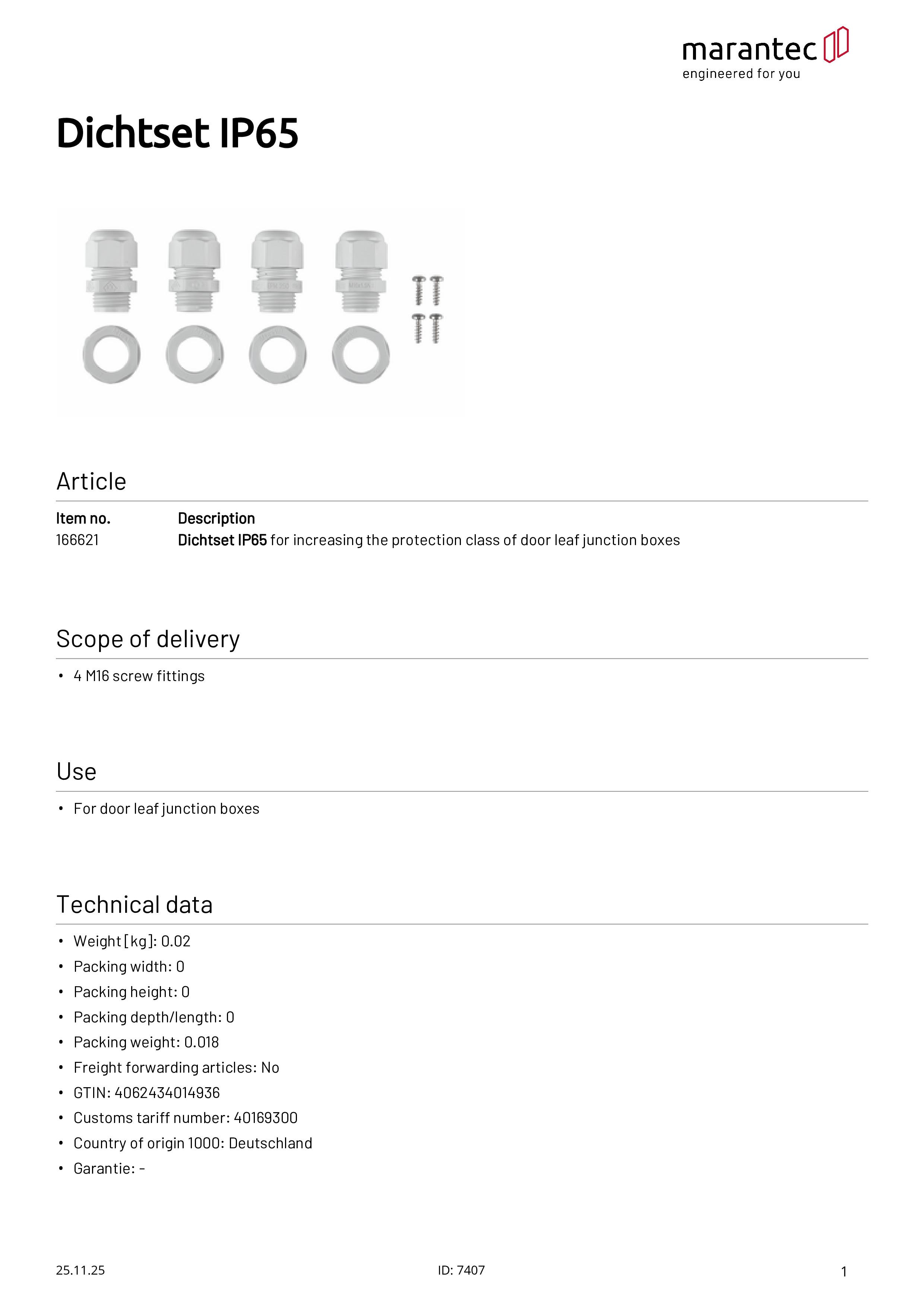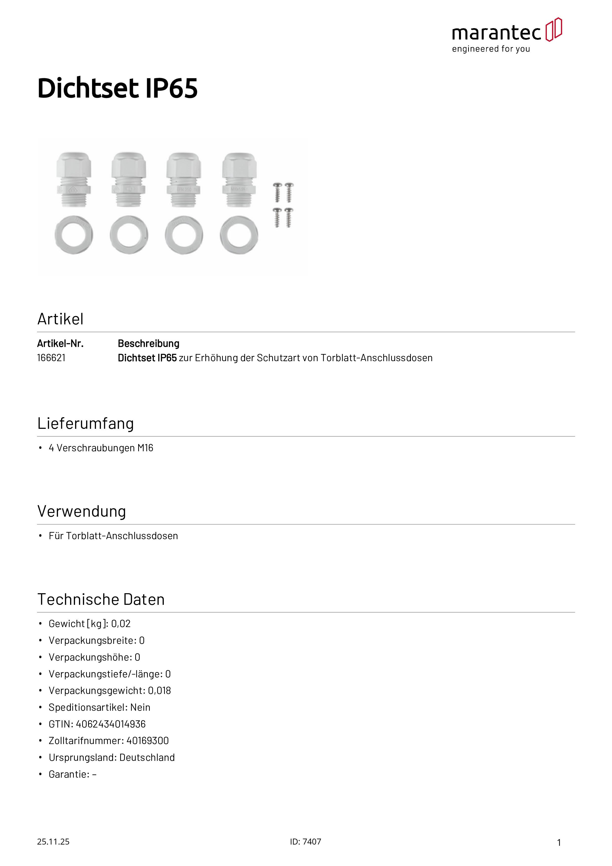 Dichtset IP65 für Torblatt-Anschlussdosen