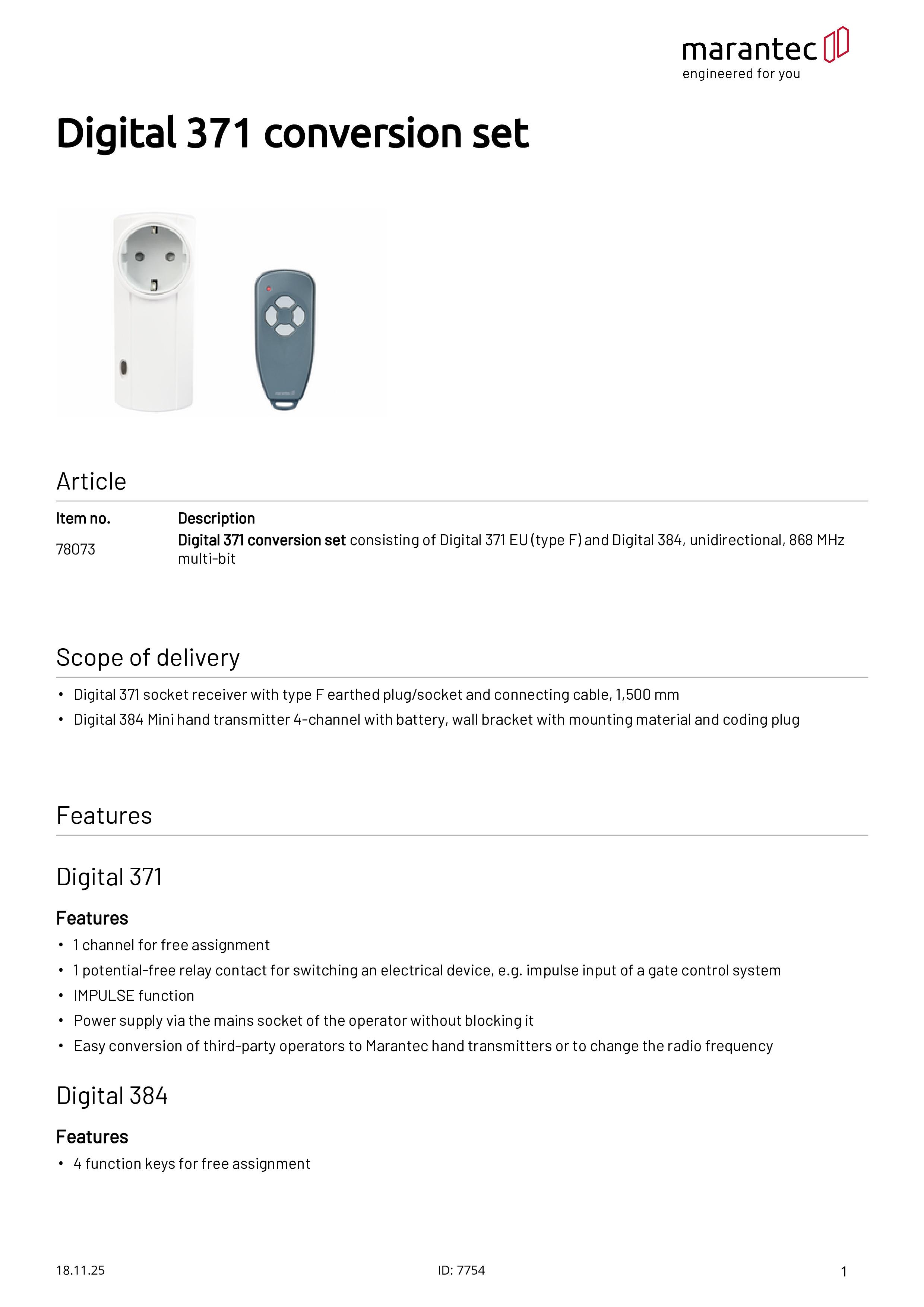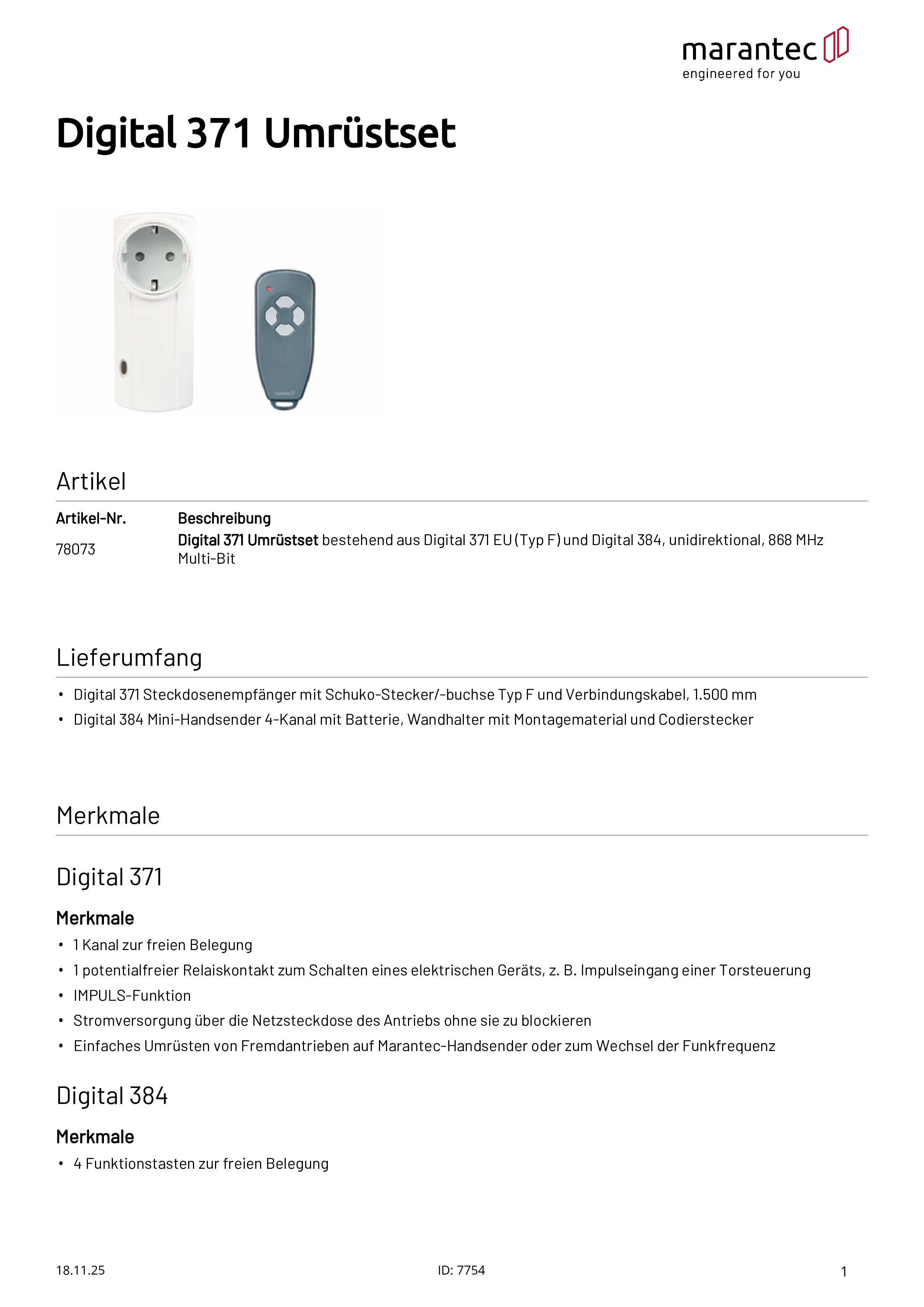 Umrüstset Digital 371 EU (Typ F) und Digital 384, 868 MHz Multi-Bit