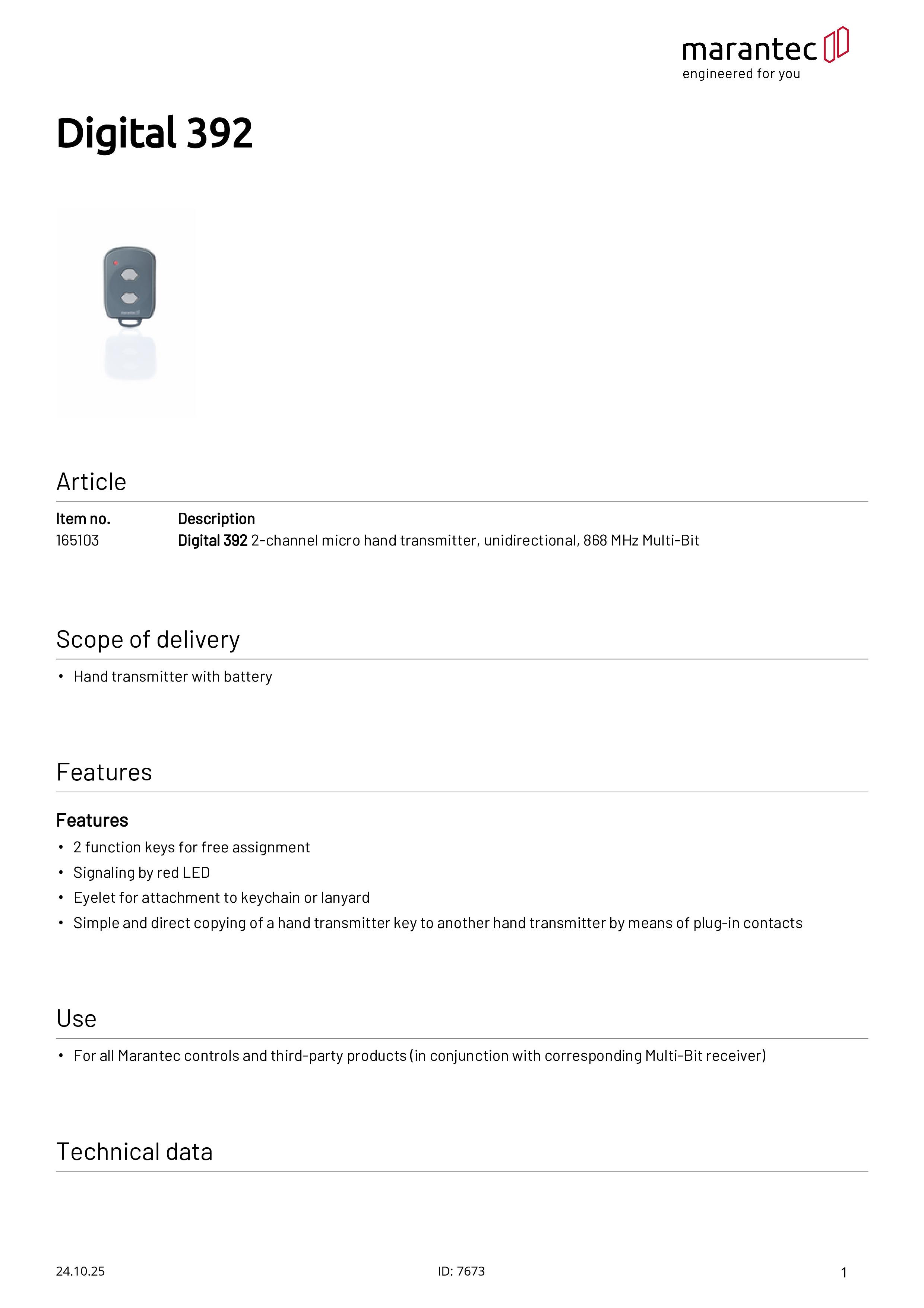 Digital 392 Micro-Handsender 2-Kanal 868 MHz Multi-Bit