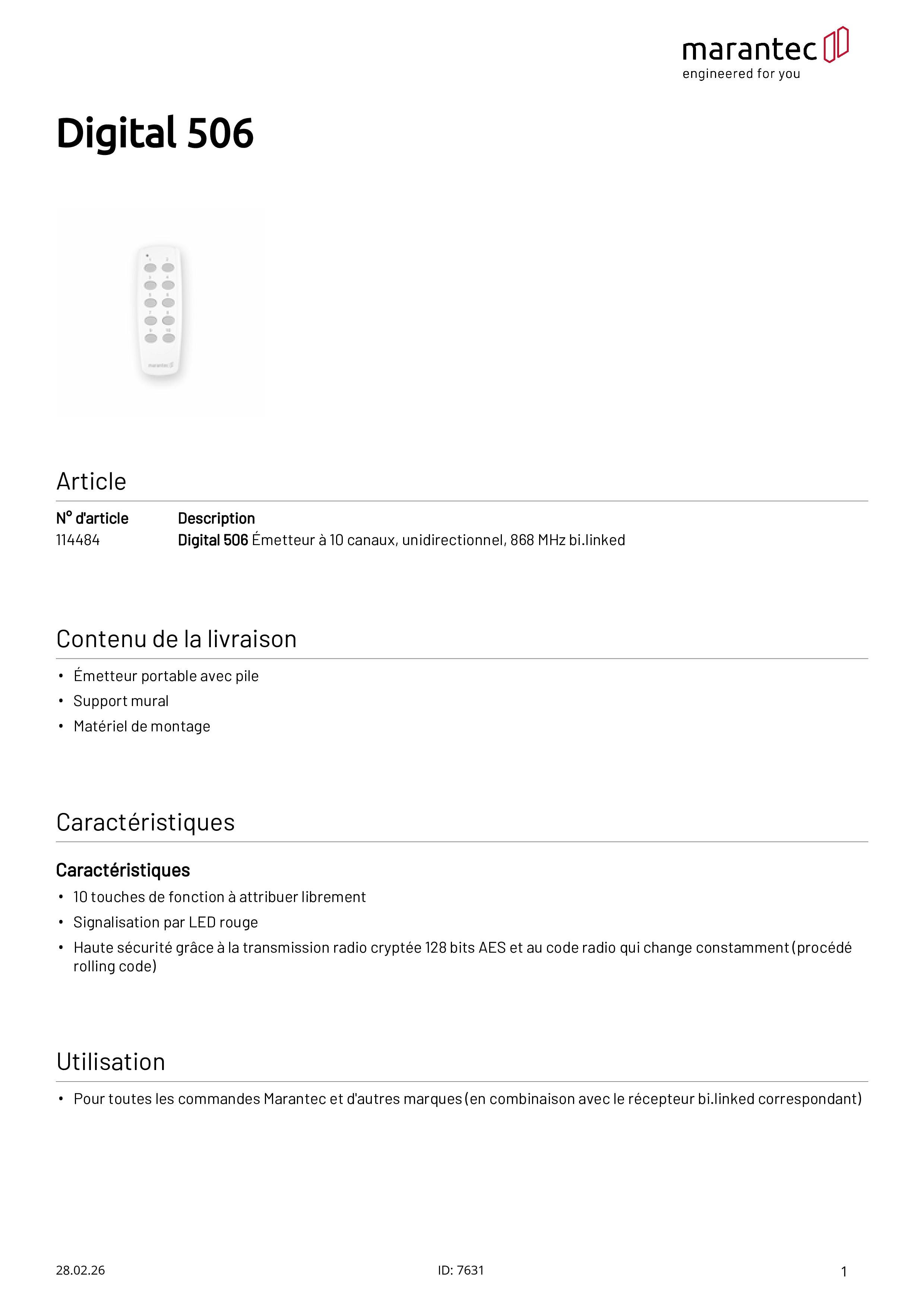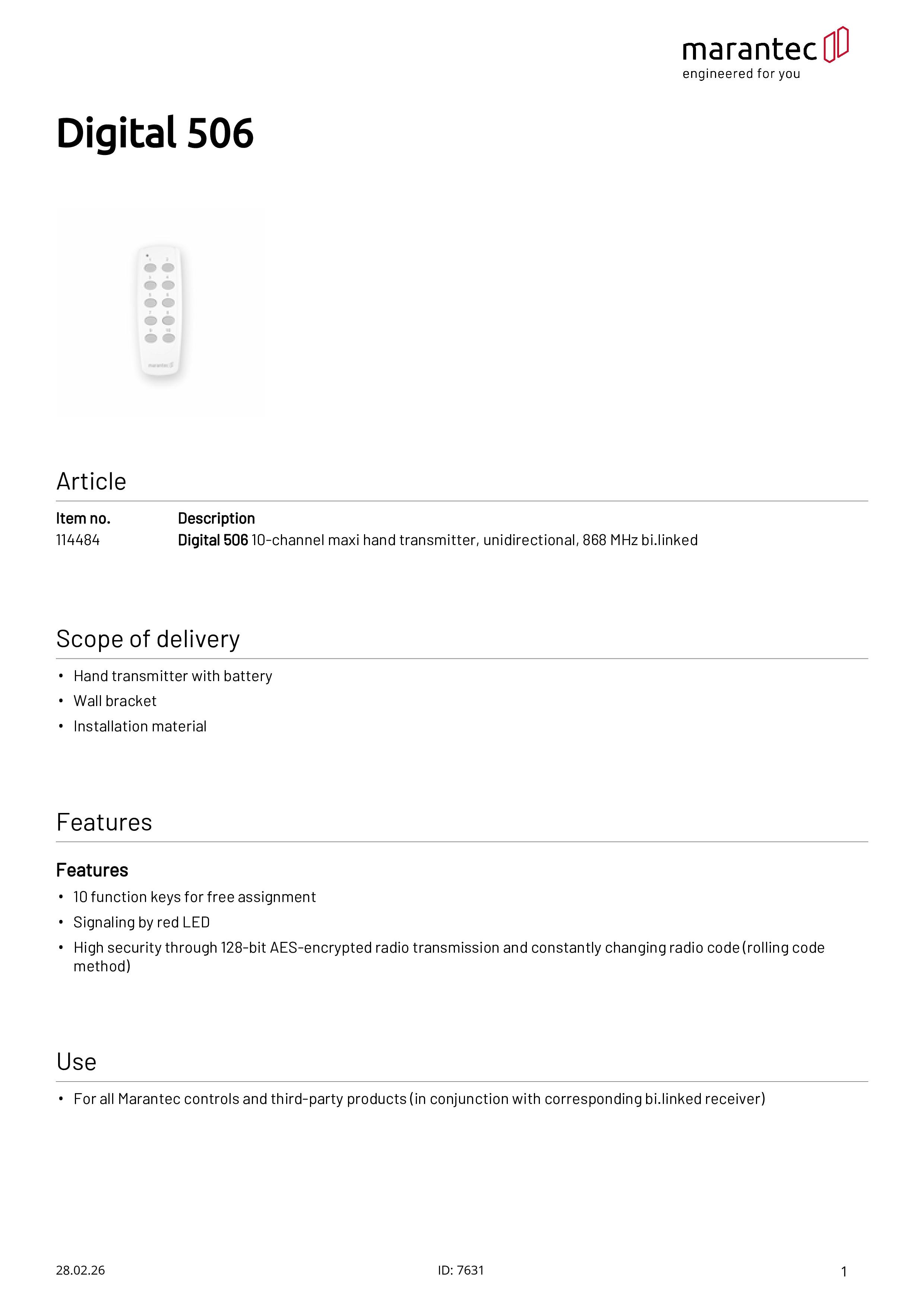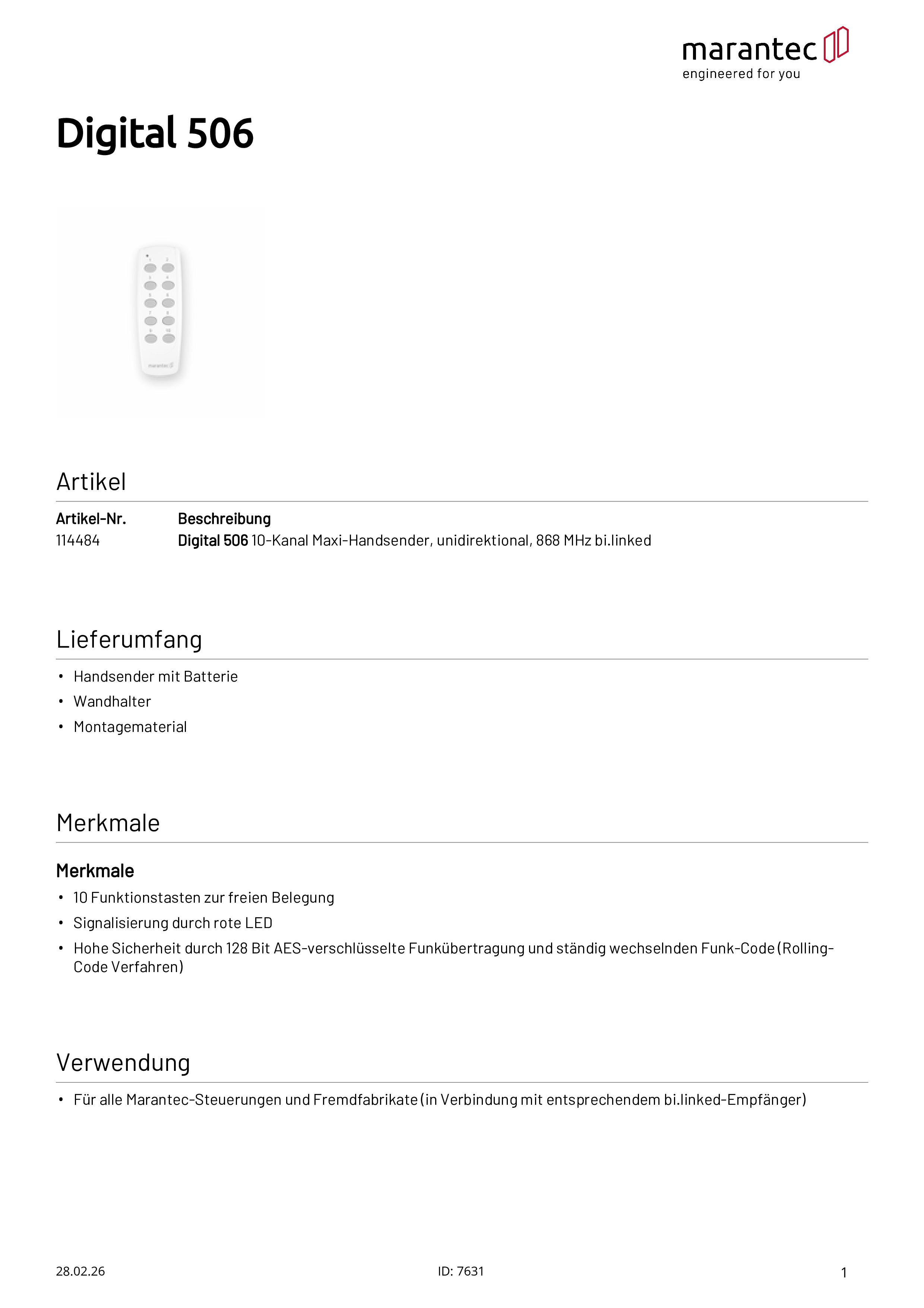 Digital 506 Maxi-Handsender 10-Kanal 868 MHz bi.linked