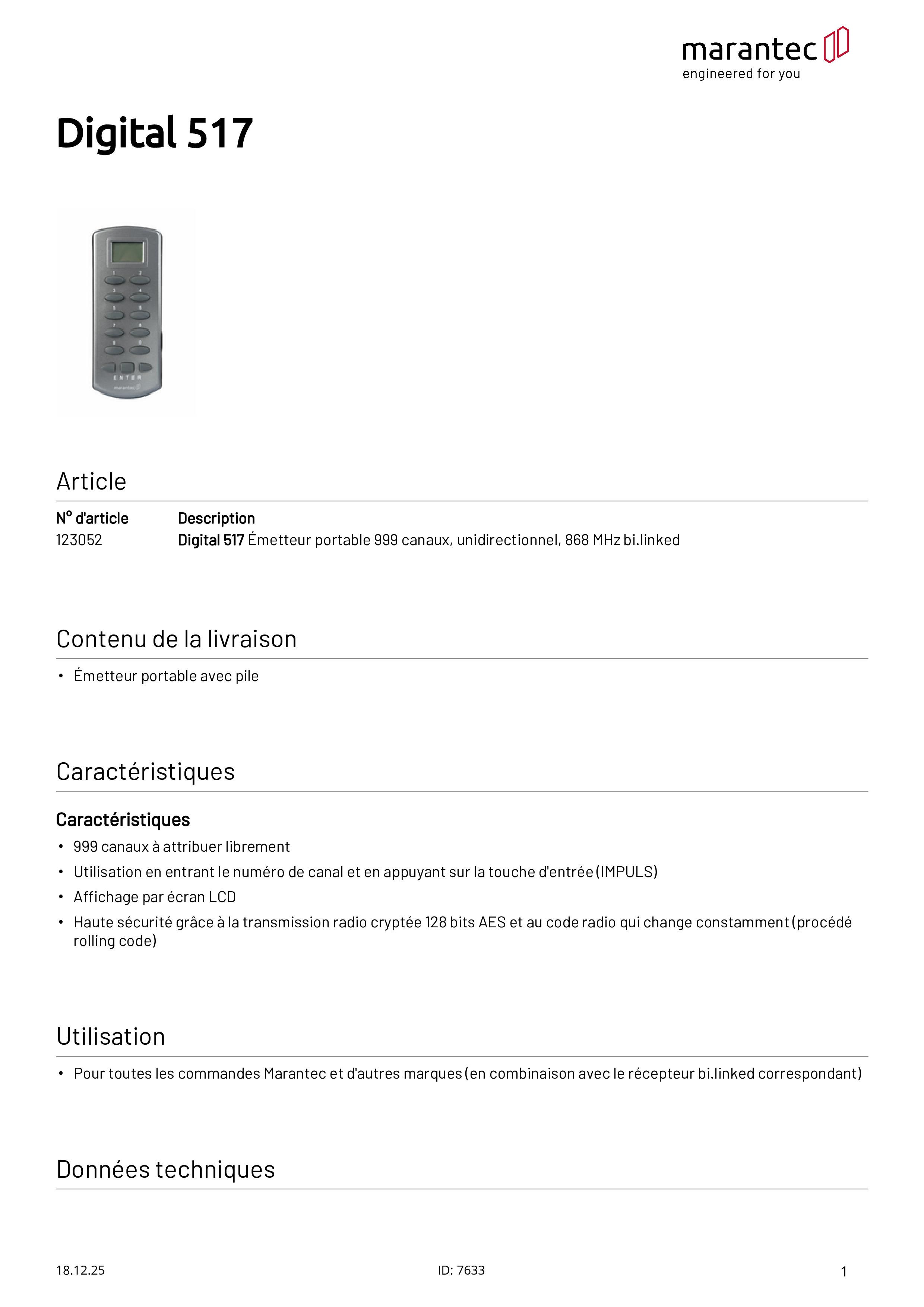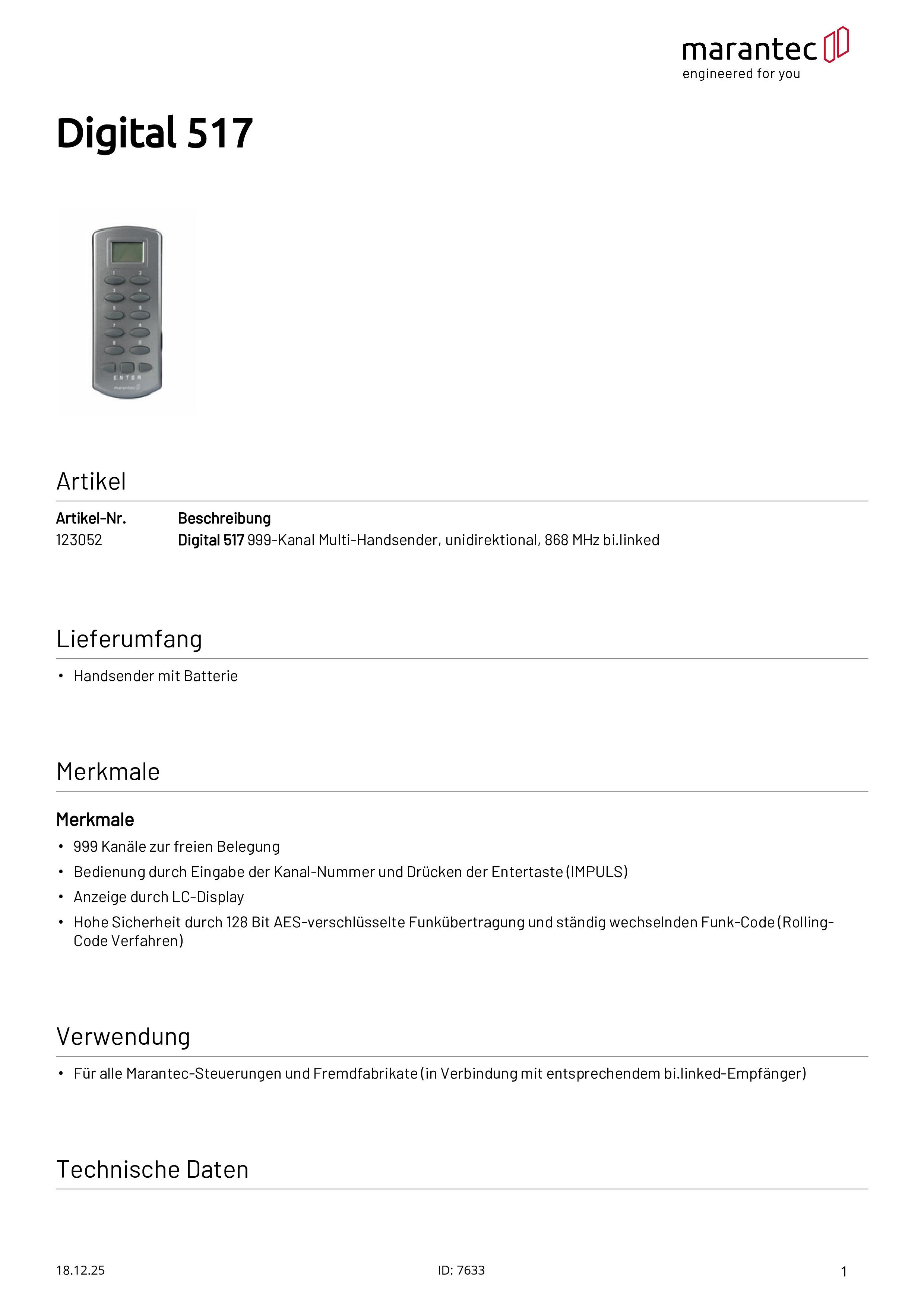 Digital 517 Multi-Handsender 999-Kanal 868 MHz bi.linked