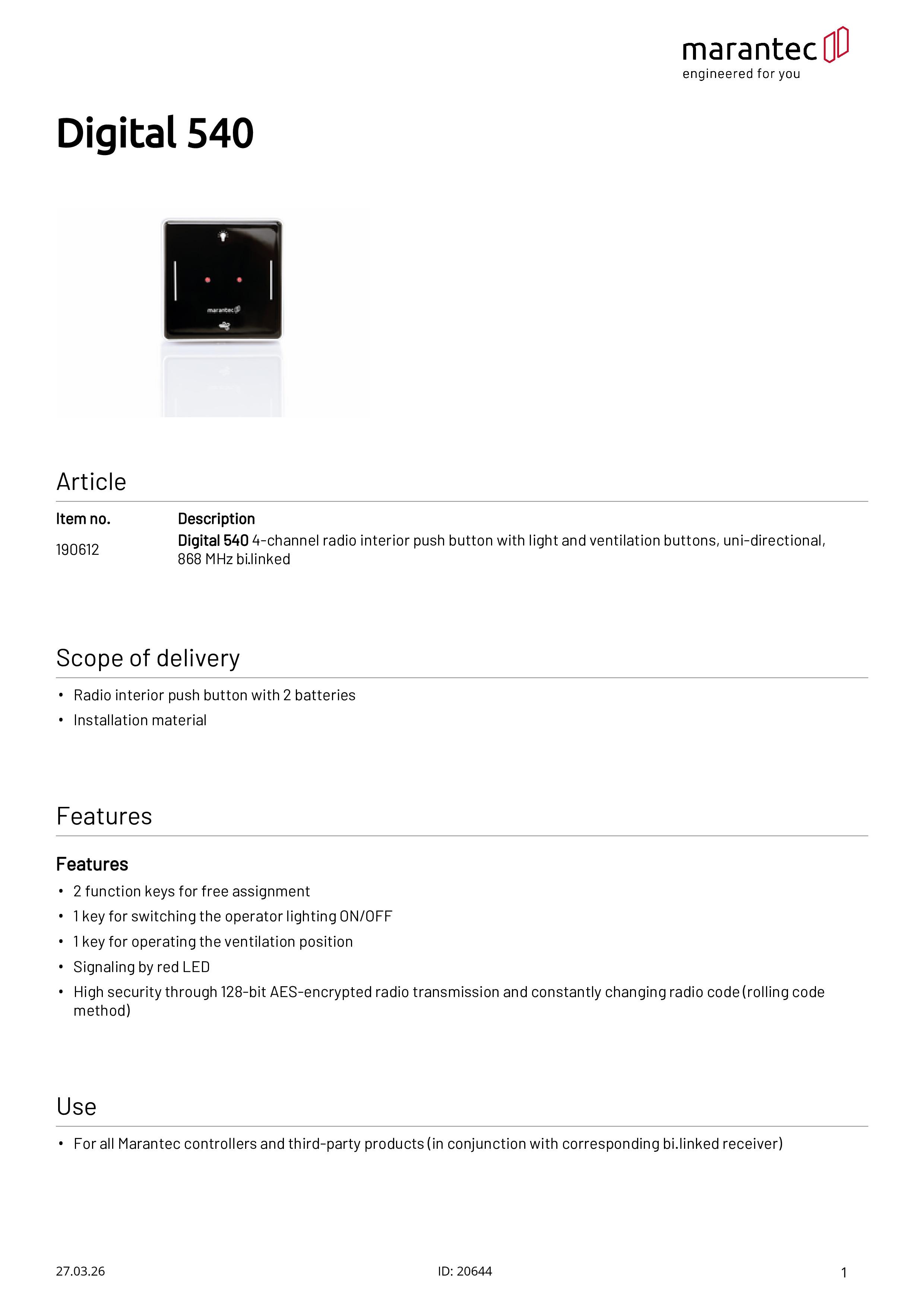 - Hohe Sicherheit durch 128 Bit AES-verschlüsselte Funkübertragung und ständig wechselnden Funk-Code (Rolling-Code Verfahren)