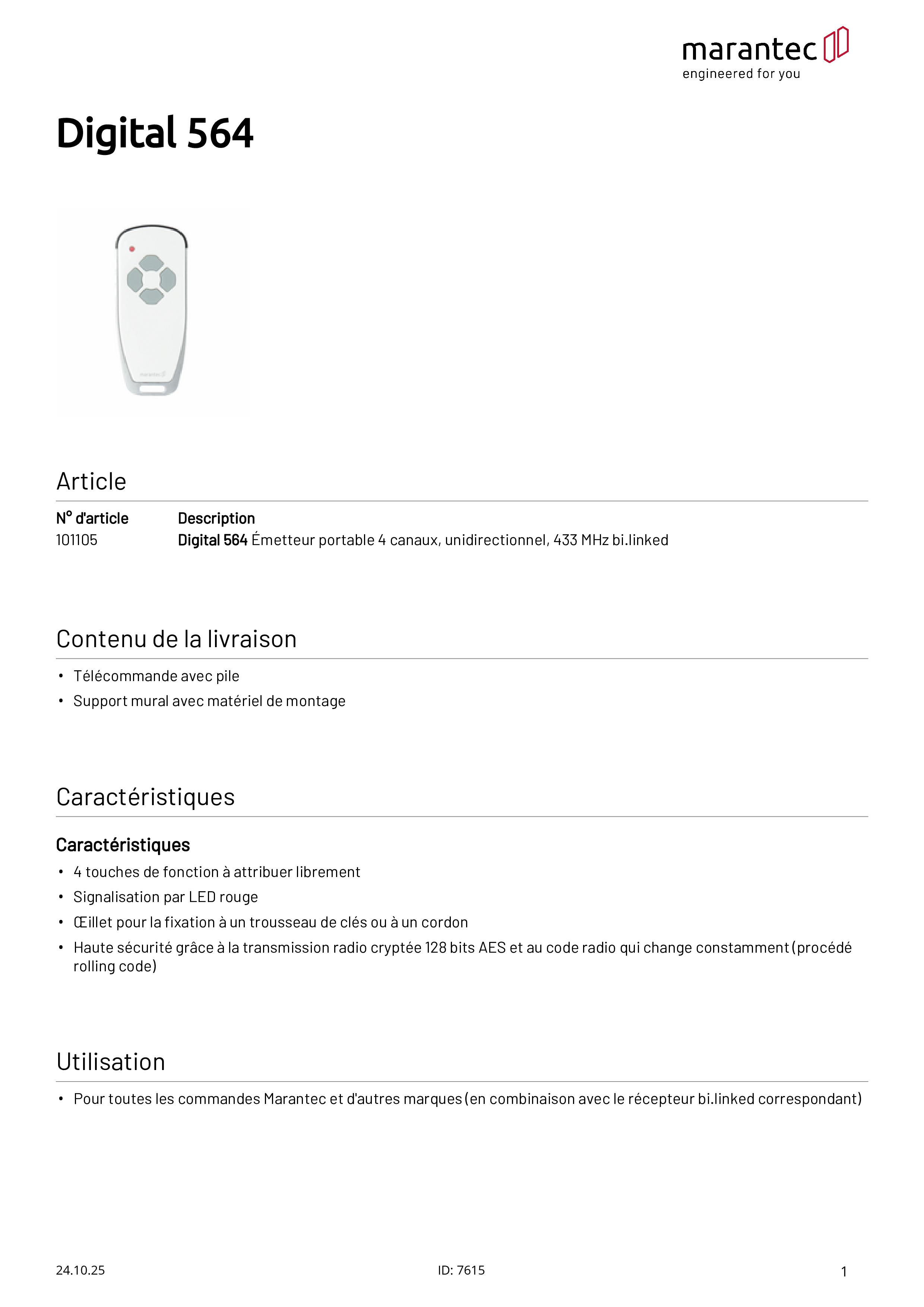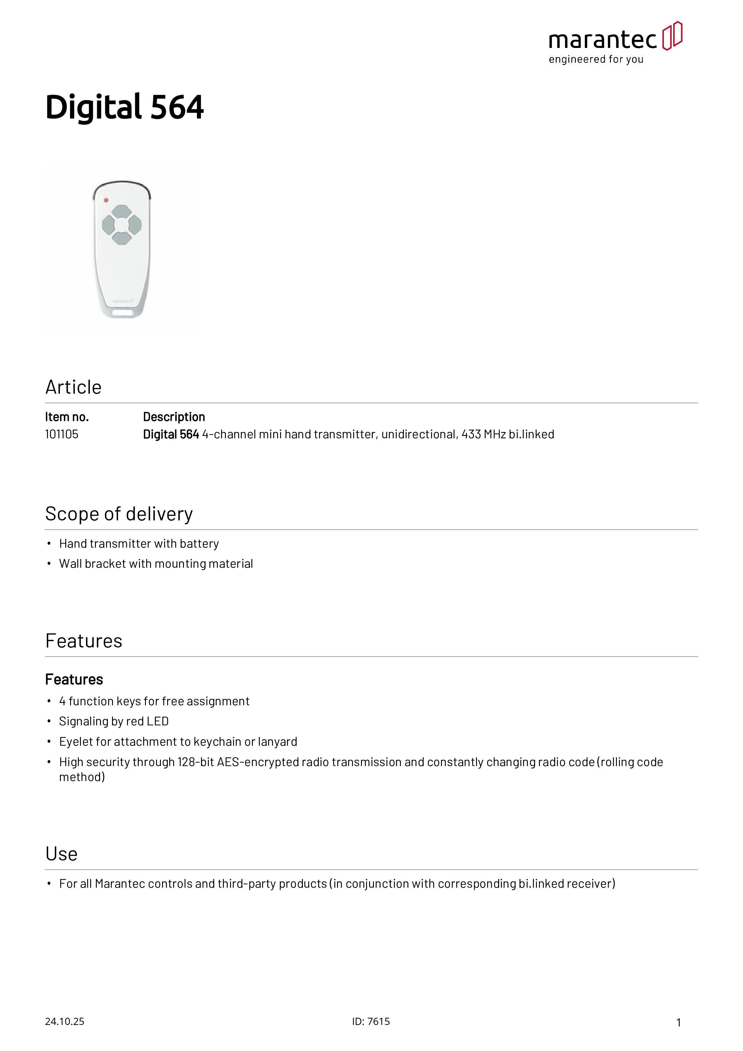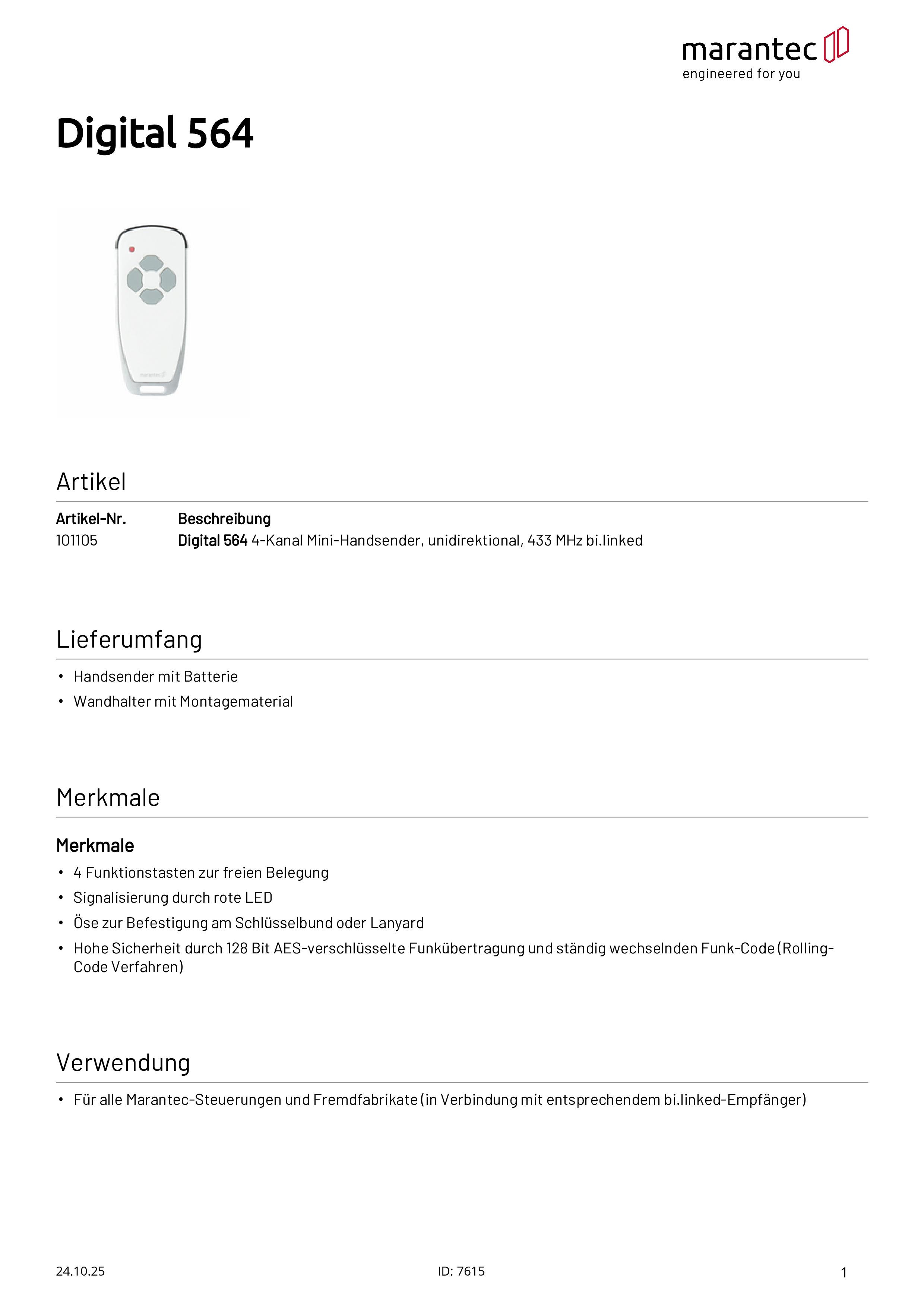 Digital 564 Mini-Handsender 4-Kanal 433 MHz bi.linked