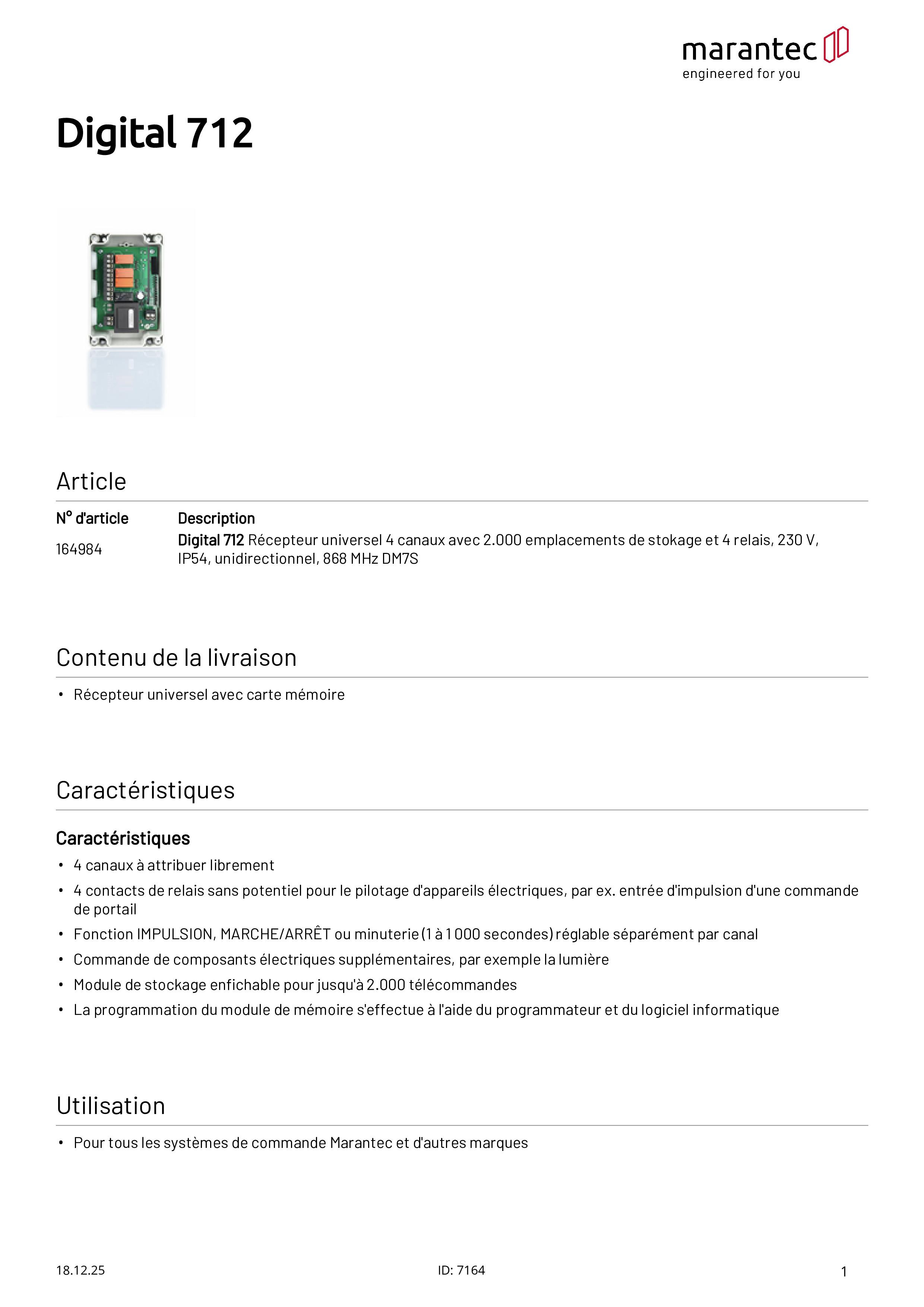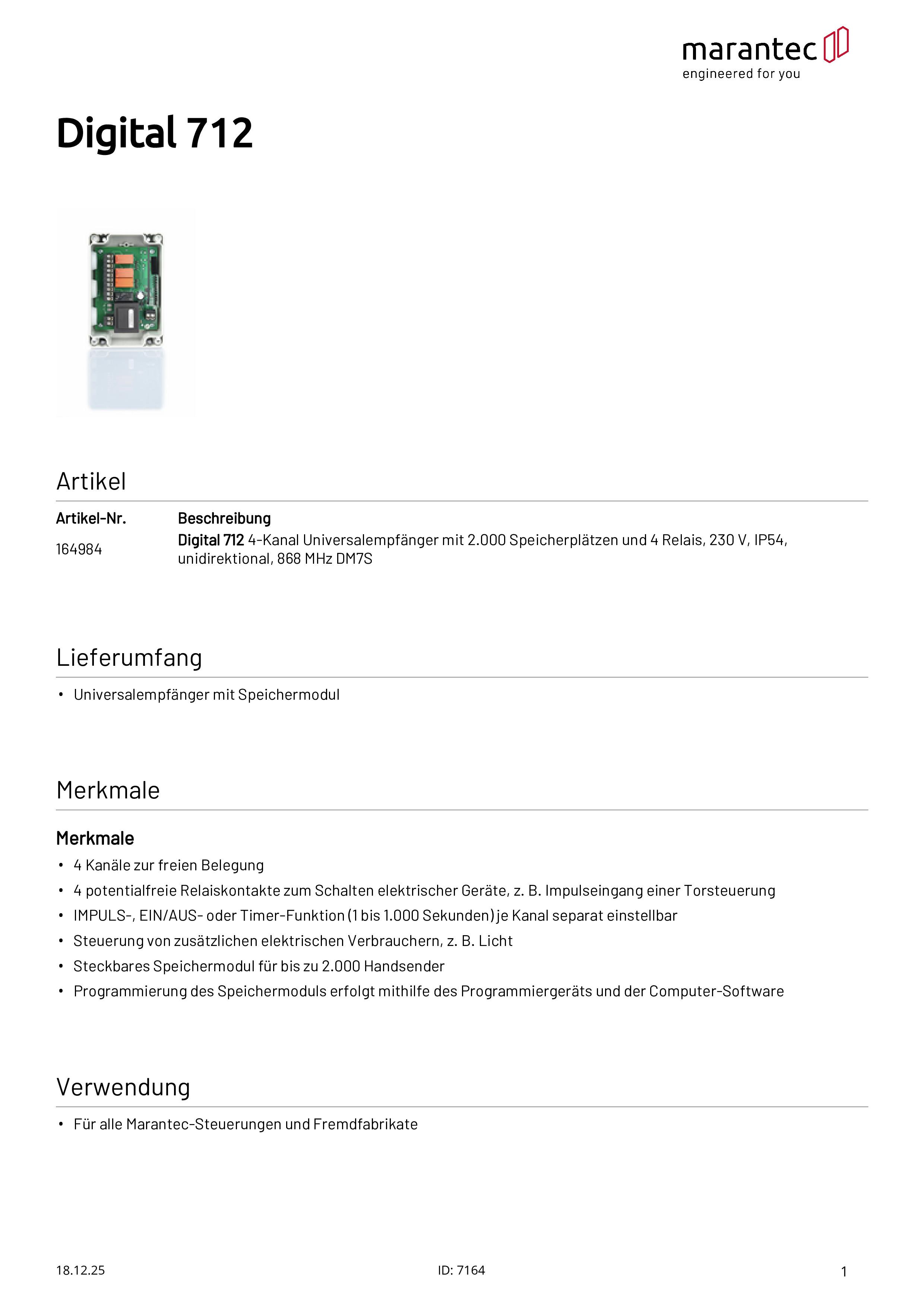 Digital 712 4-Kanal Universalempfänger, 4 Relais, 230 V, 868 MHz DM7S