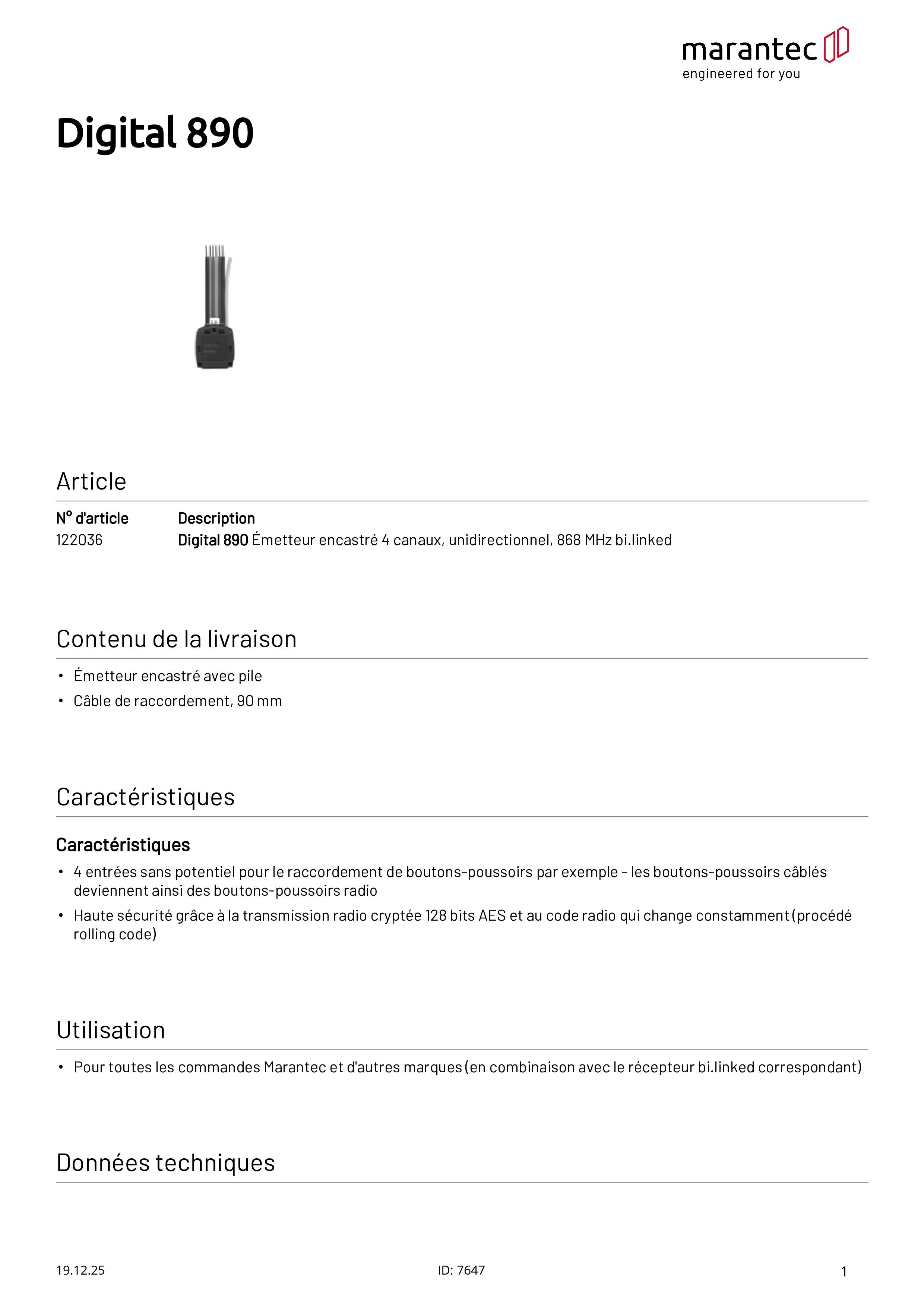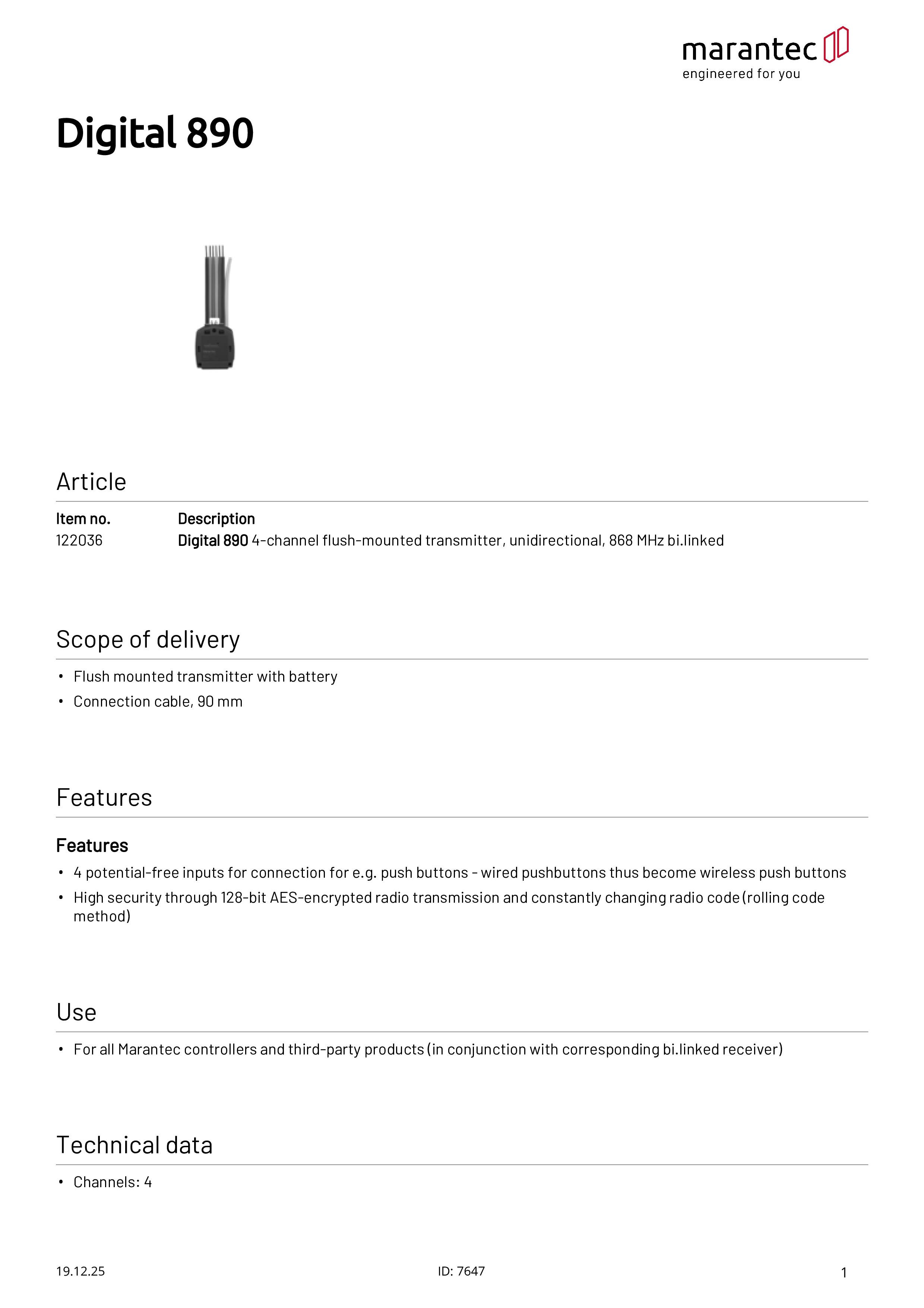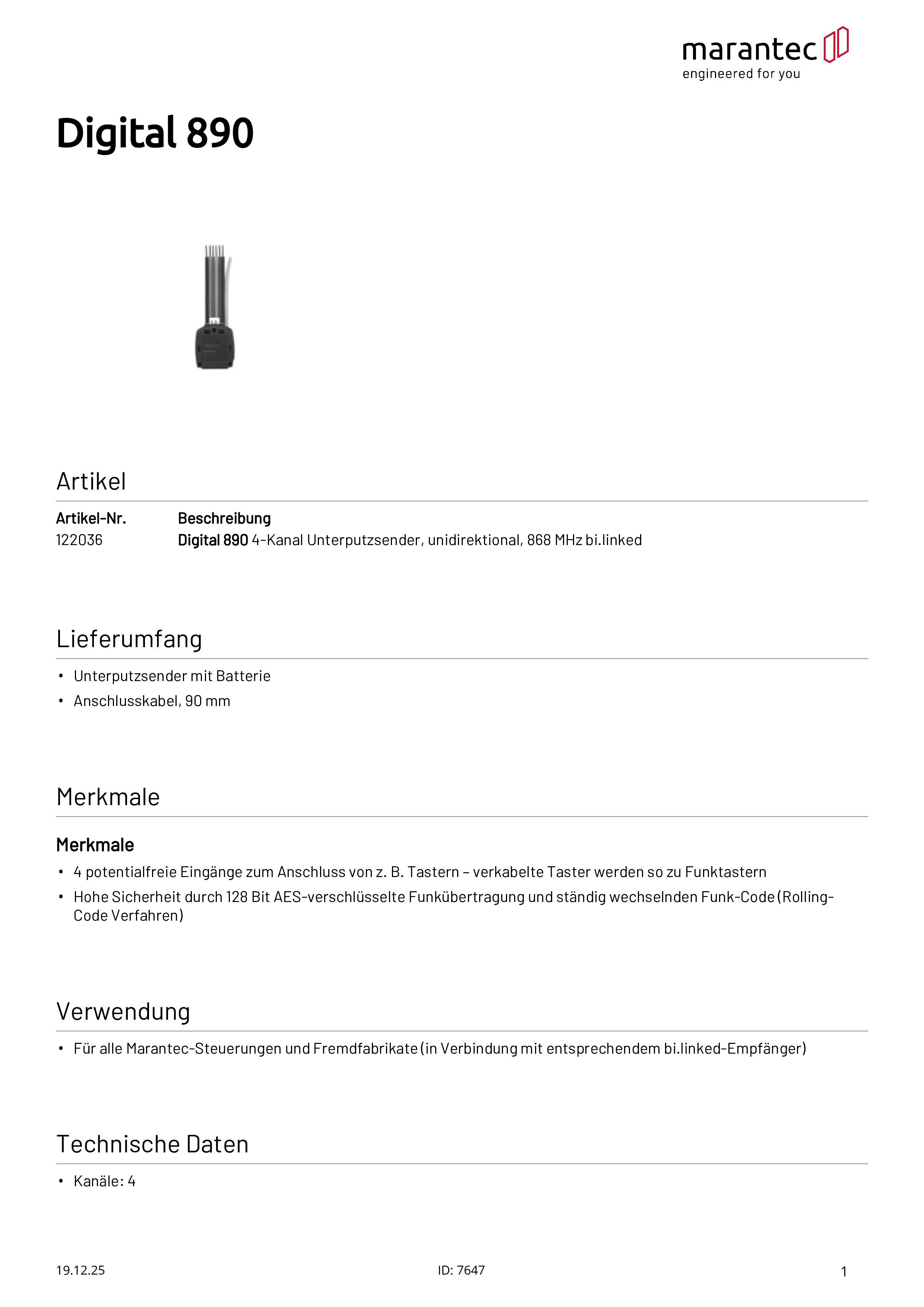 Digital 890 4-Kanal Unterputzsender, 868 MHz bi.linked