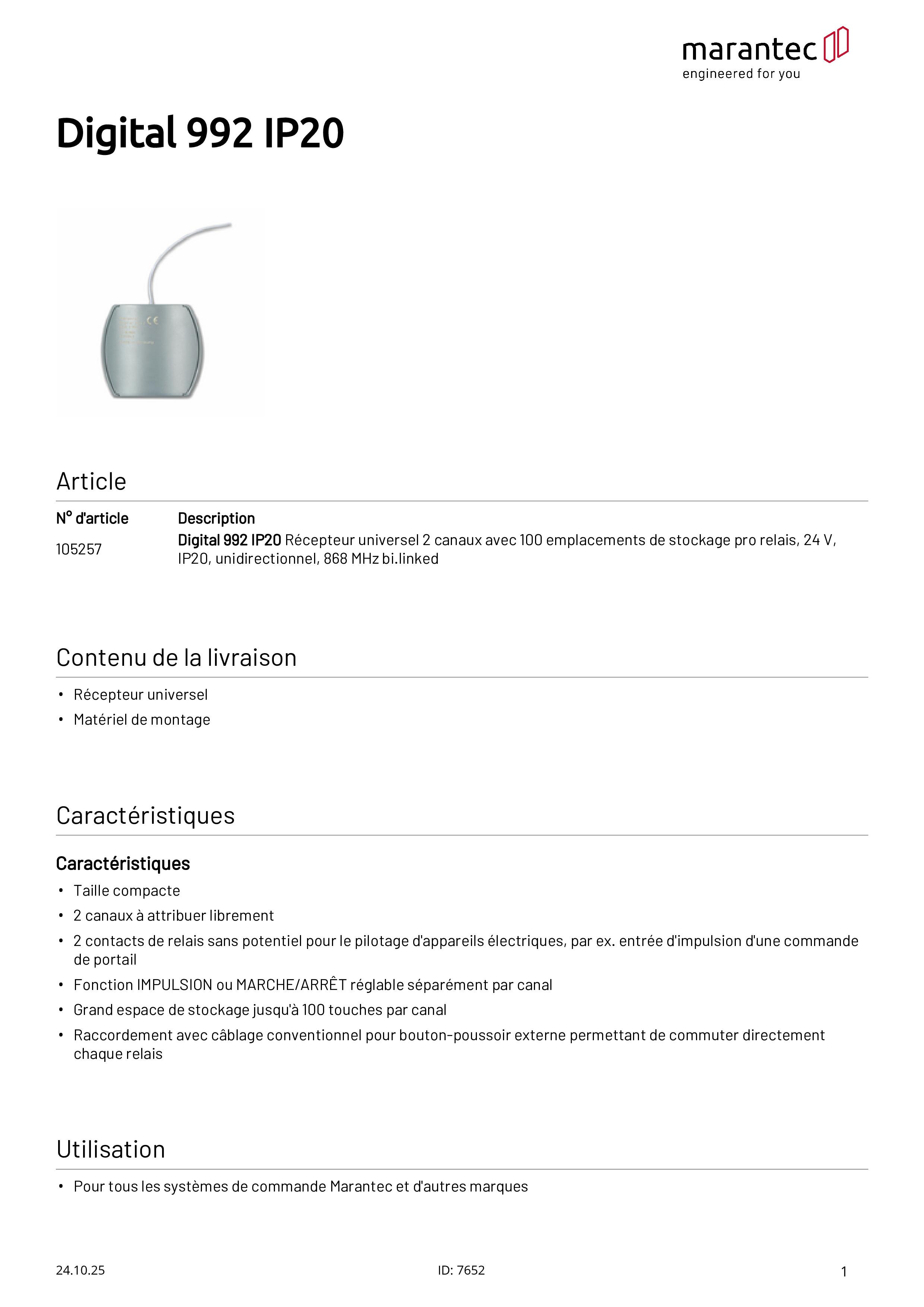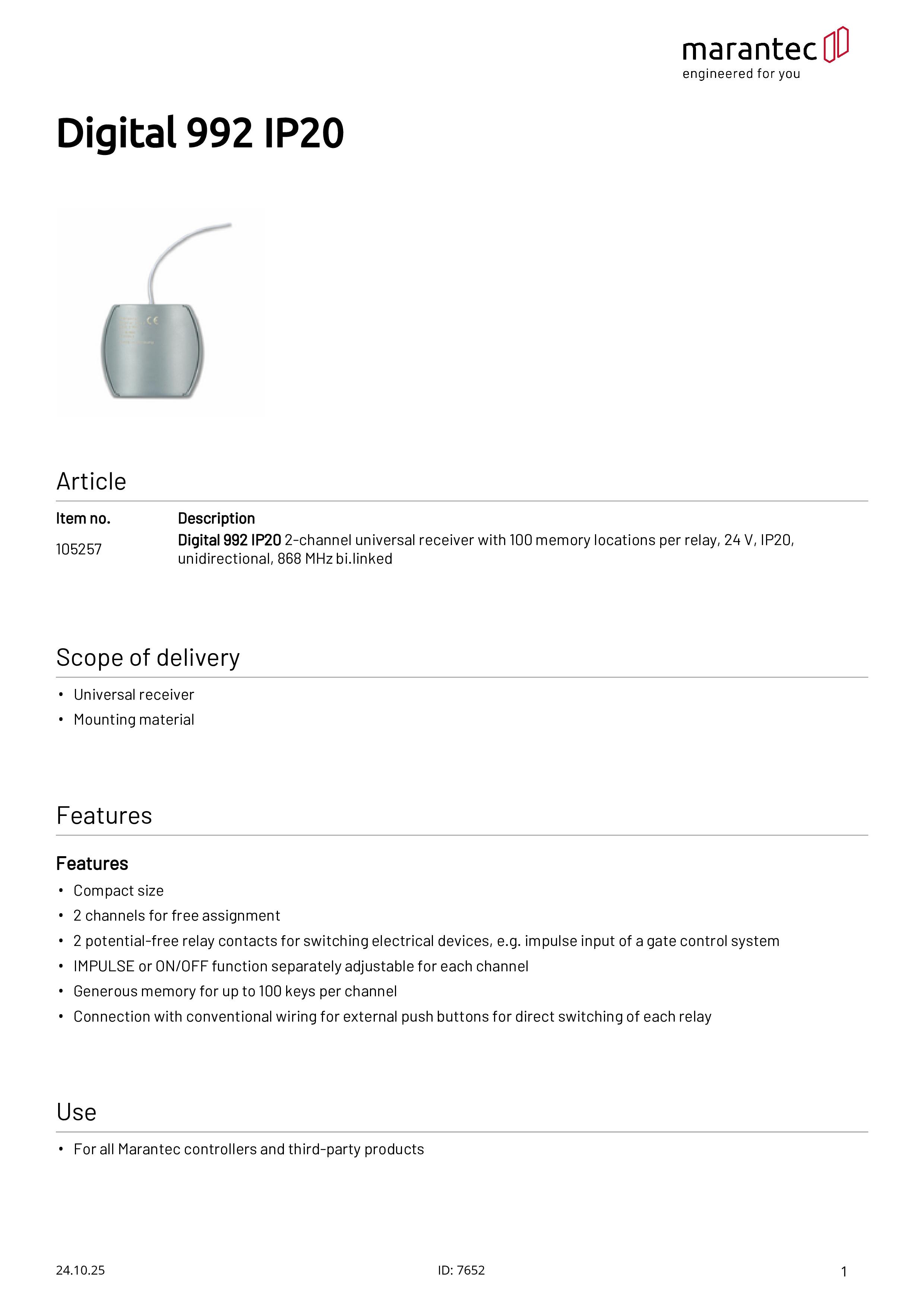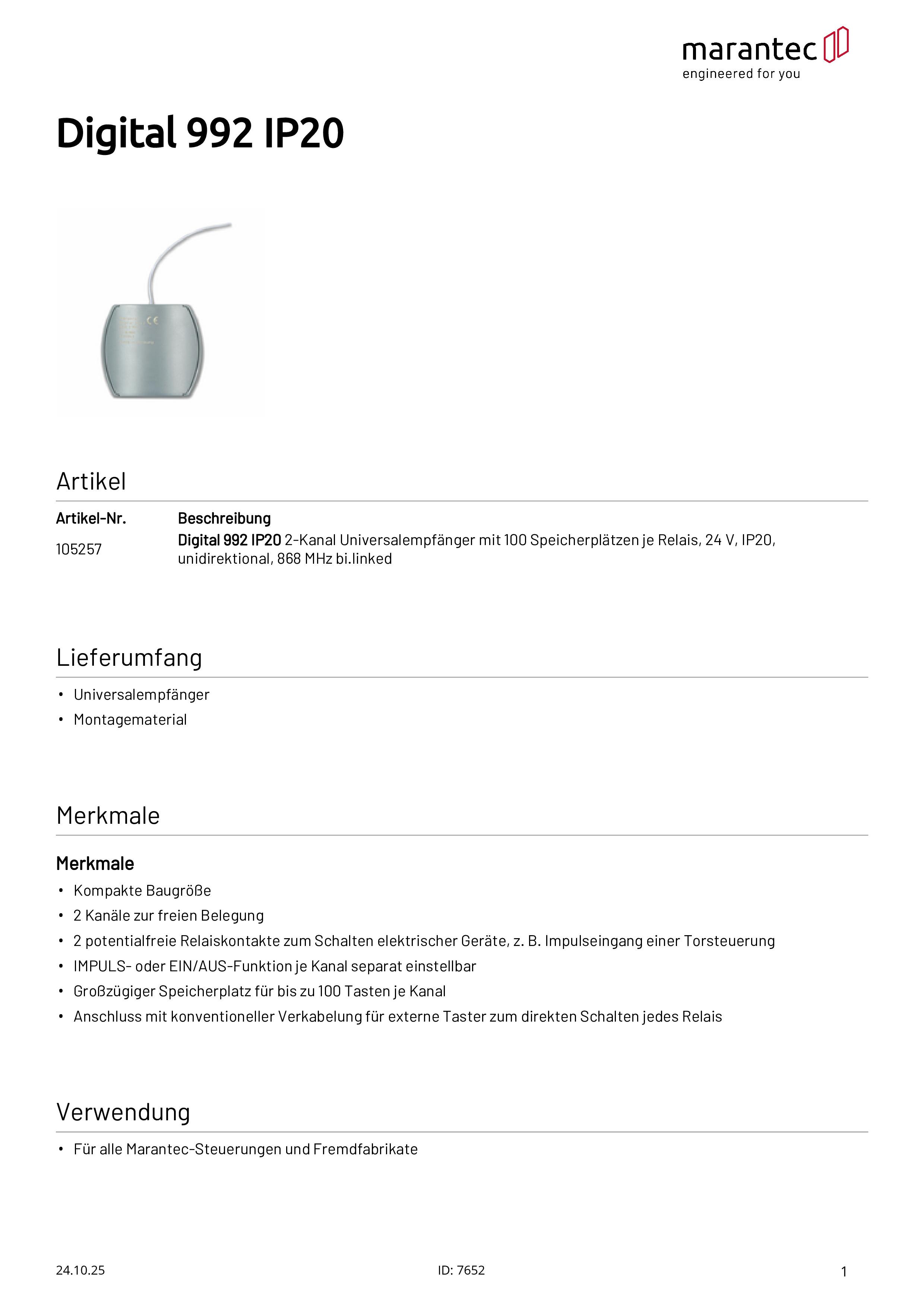 Digital 992 2-Kanal Universalempfänger, IP20, 868 MHz bi.linked