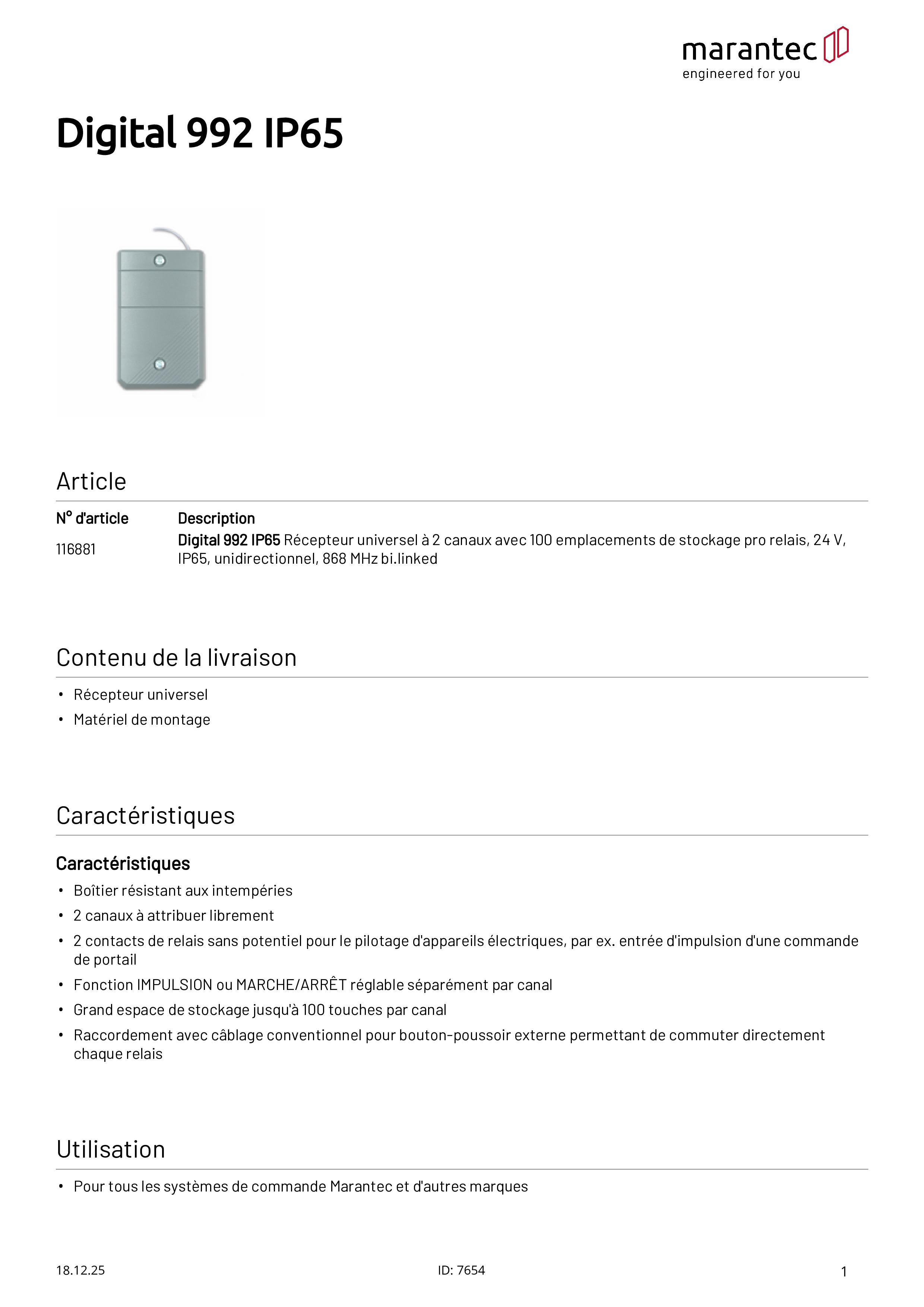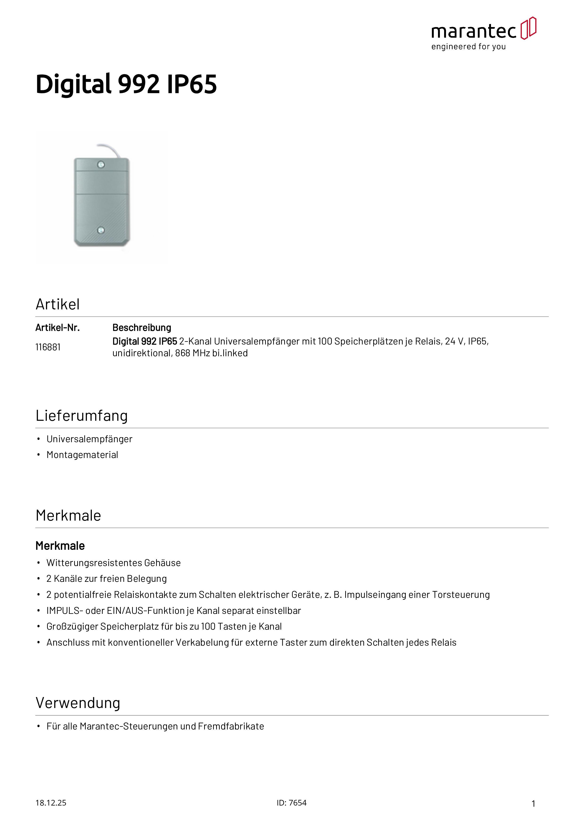 Digital 992 2-Kanal Universalempfänge, IP65, 868 MHz bi.linked