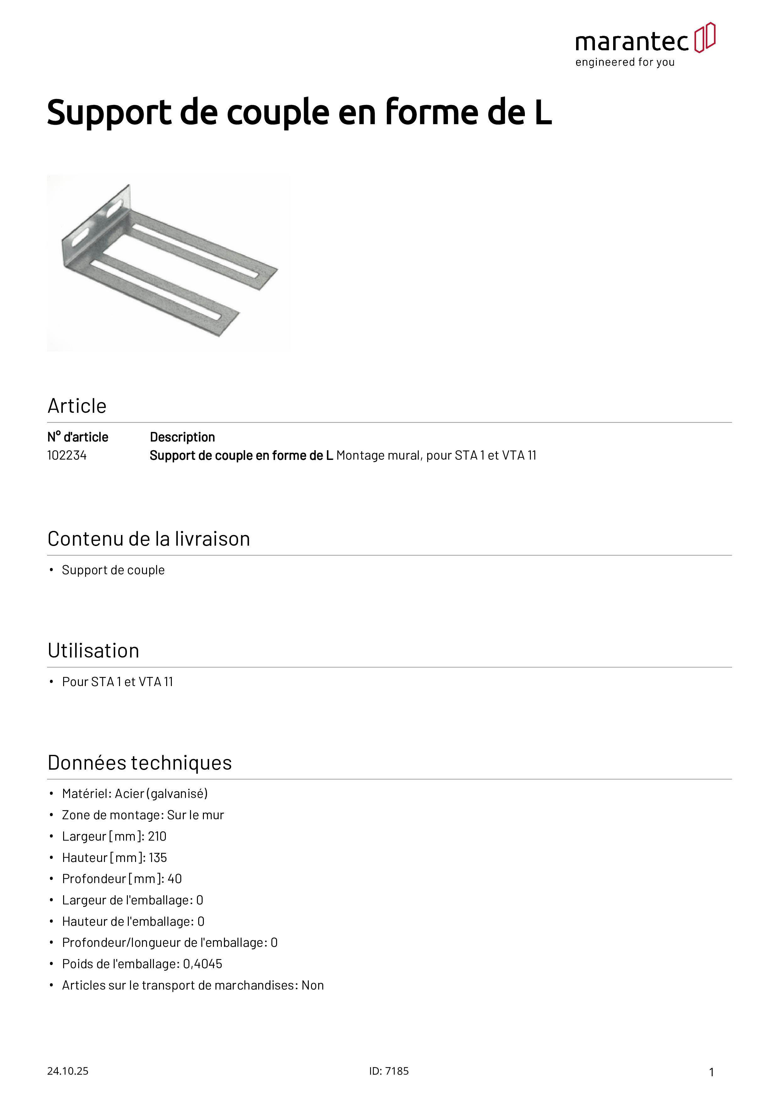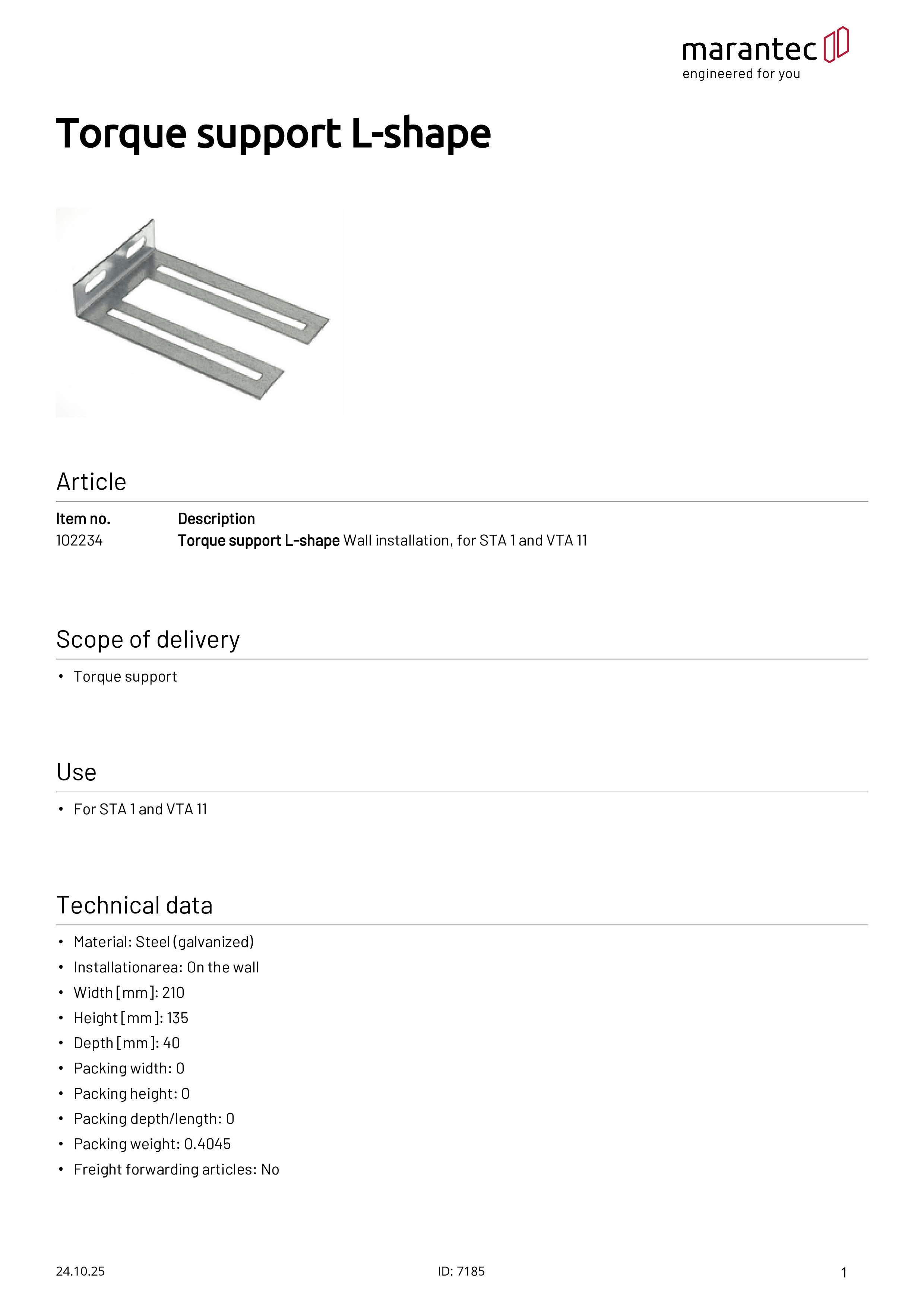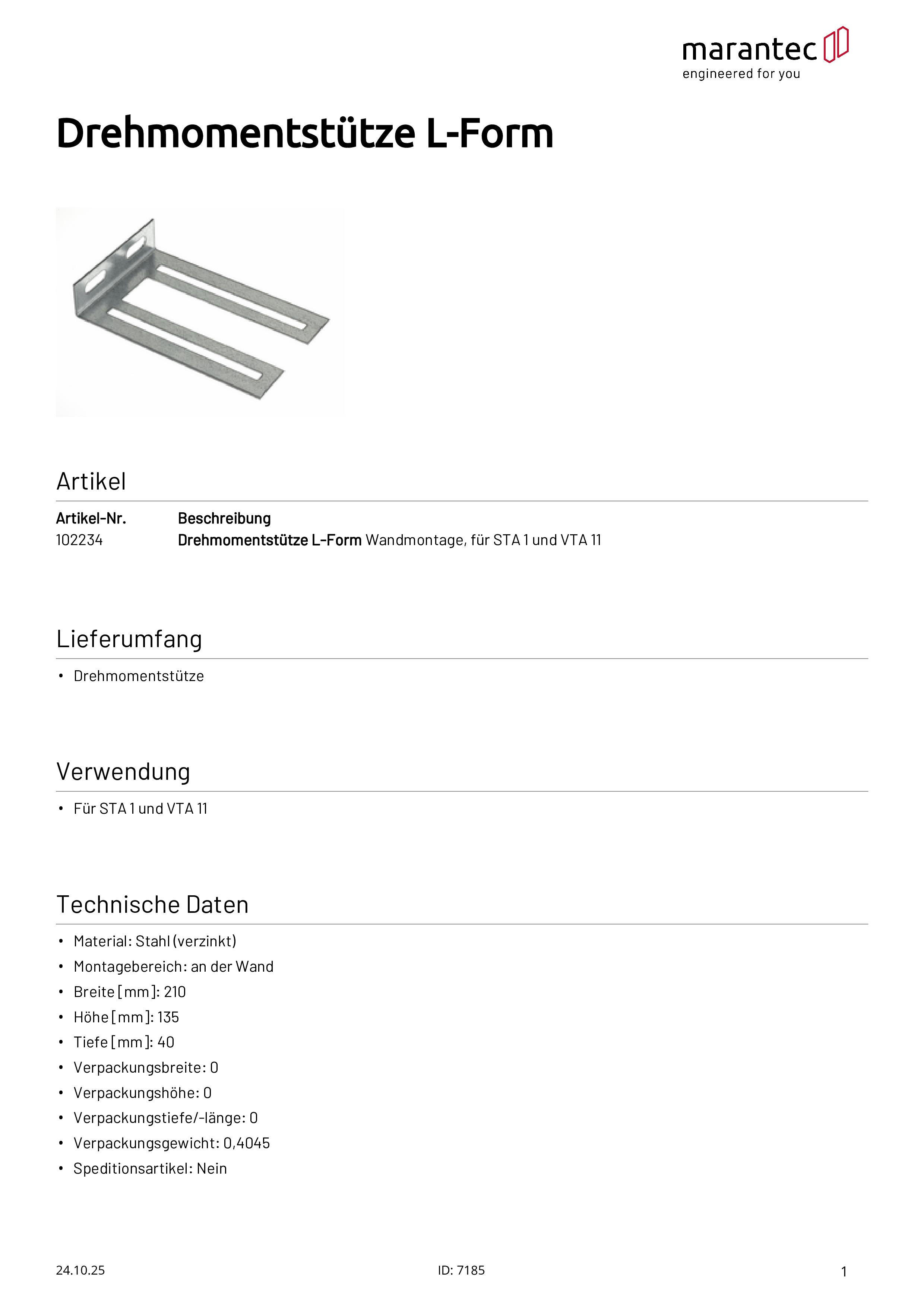 Drehmomentstütze L-Form, Wandmontage, für STA 1 und VTA 11