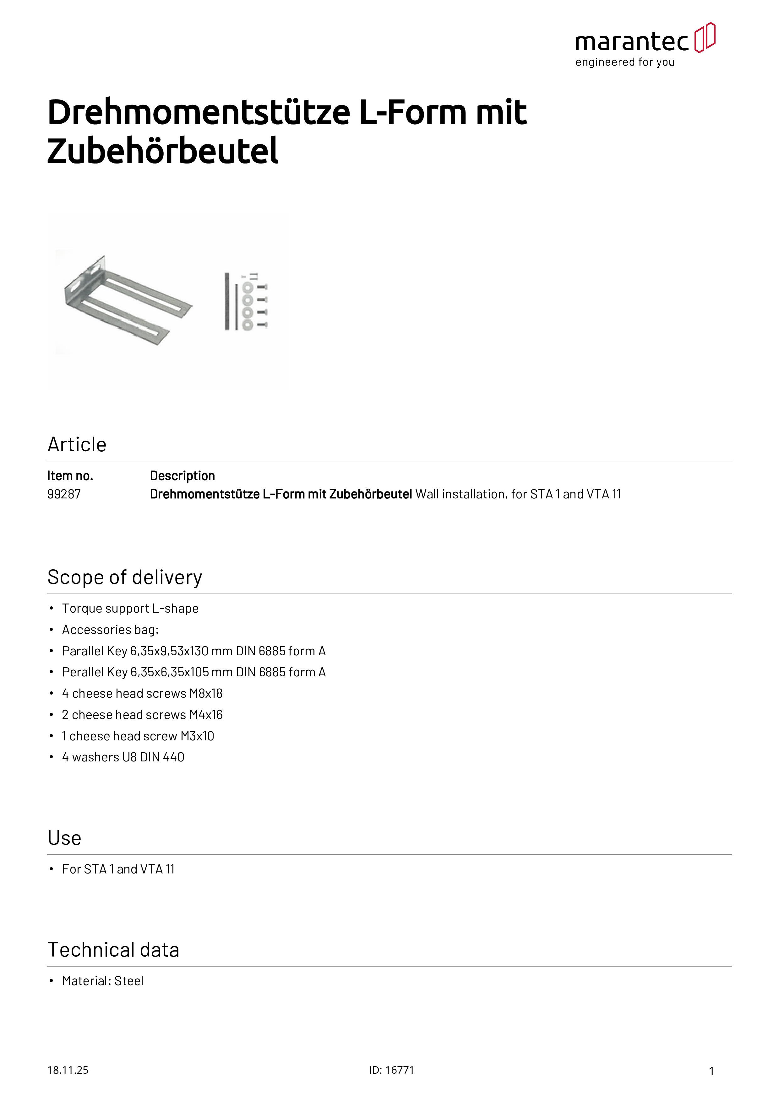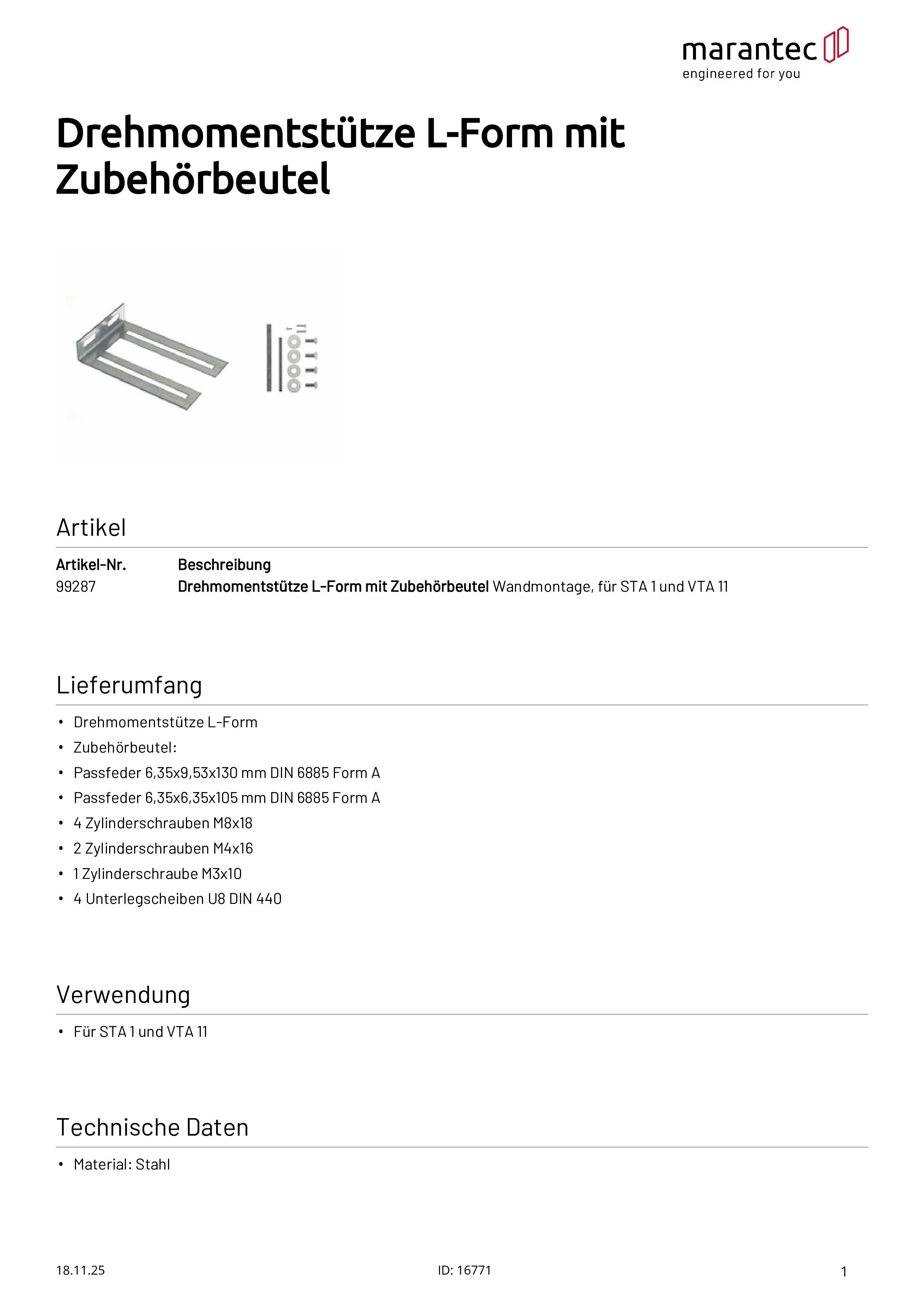 Drehmomentstütze L-Form mit Zubehörbeutel
