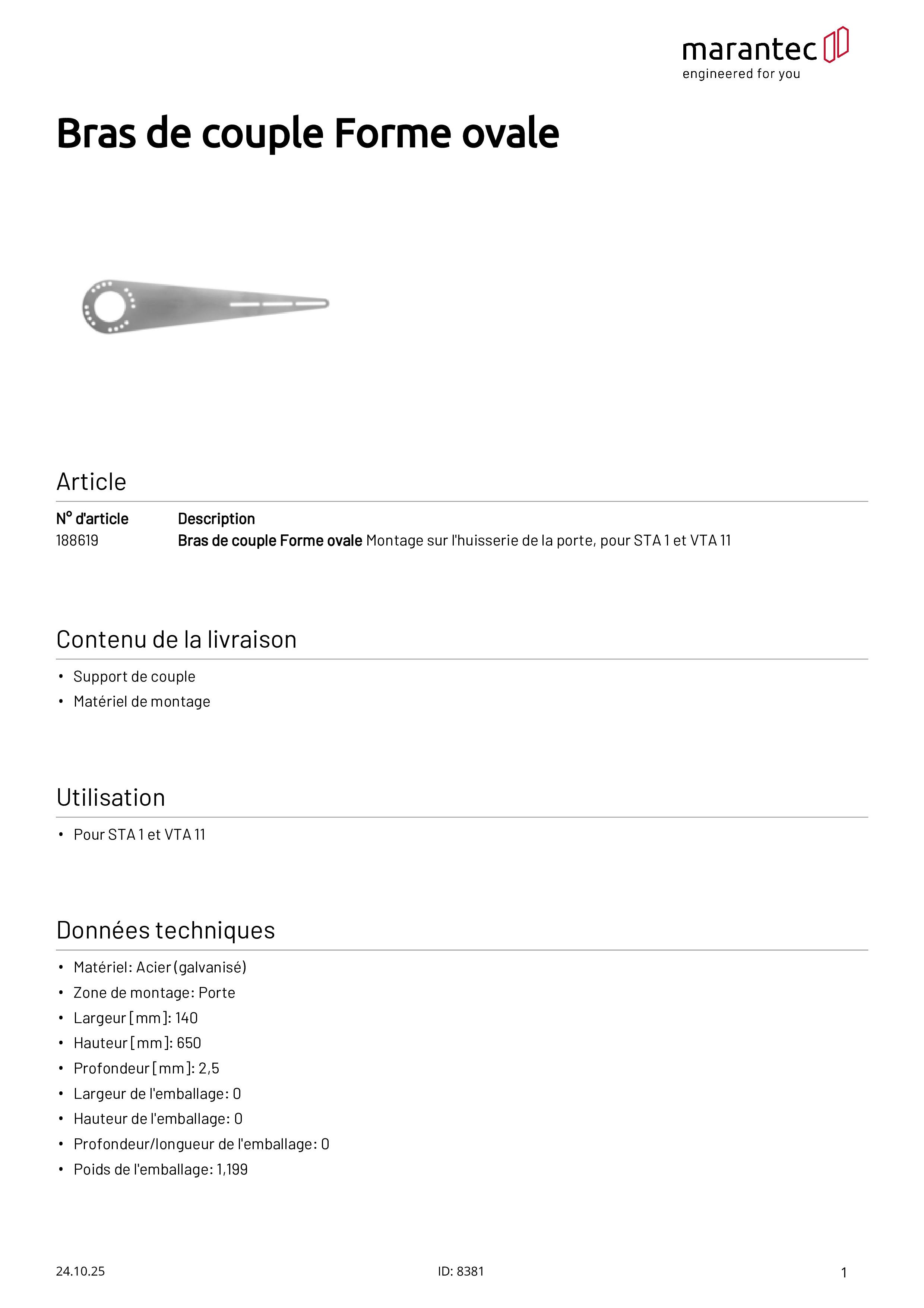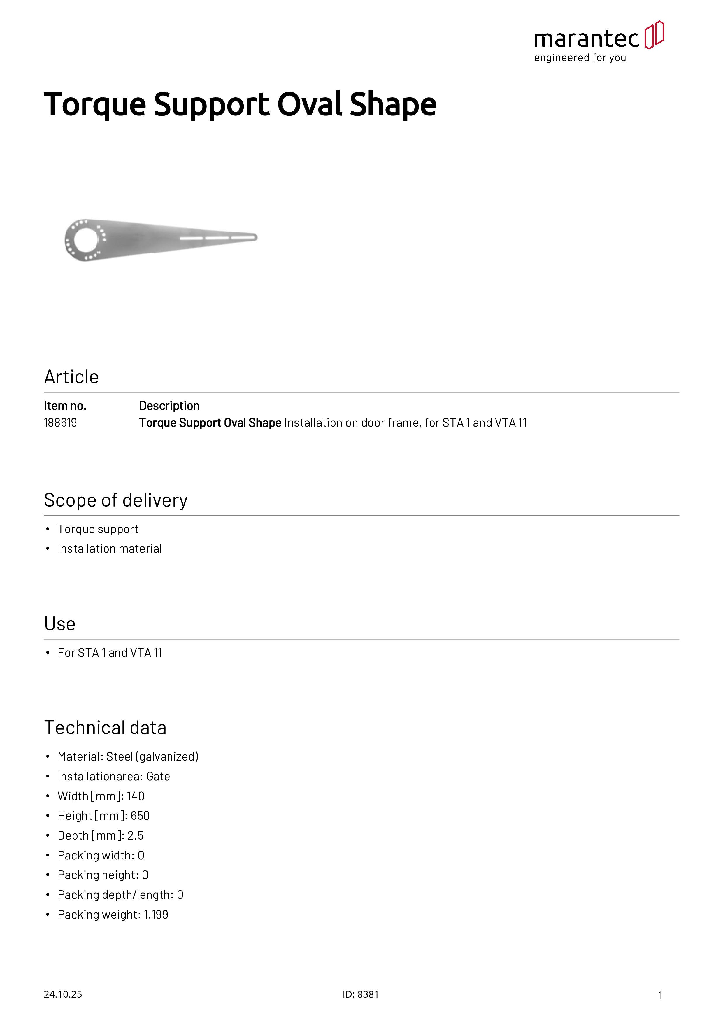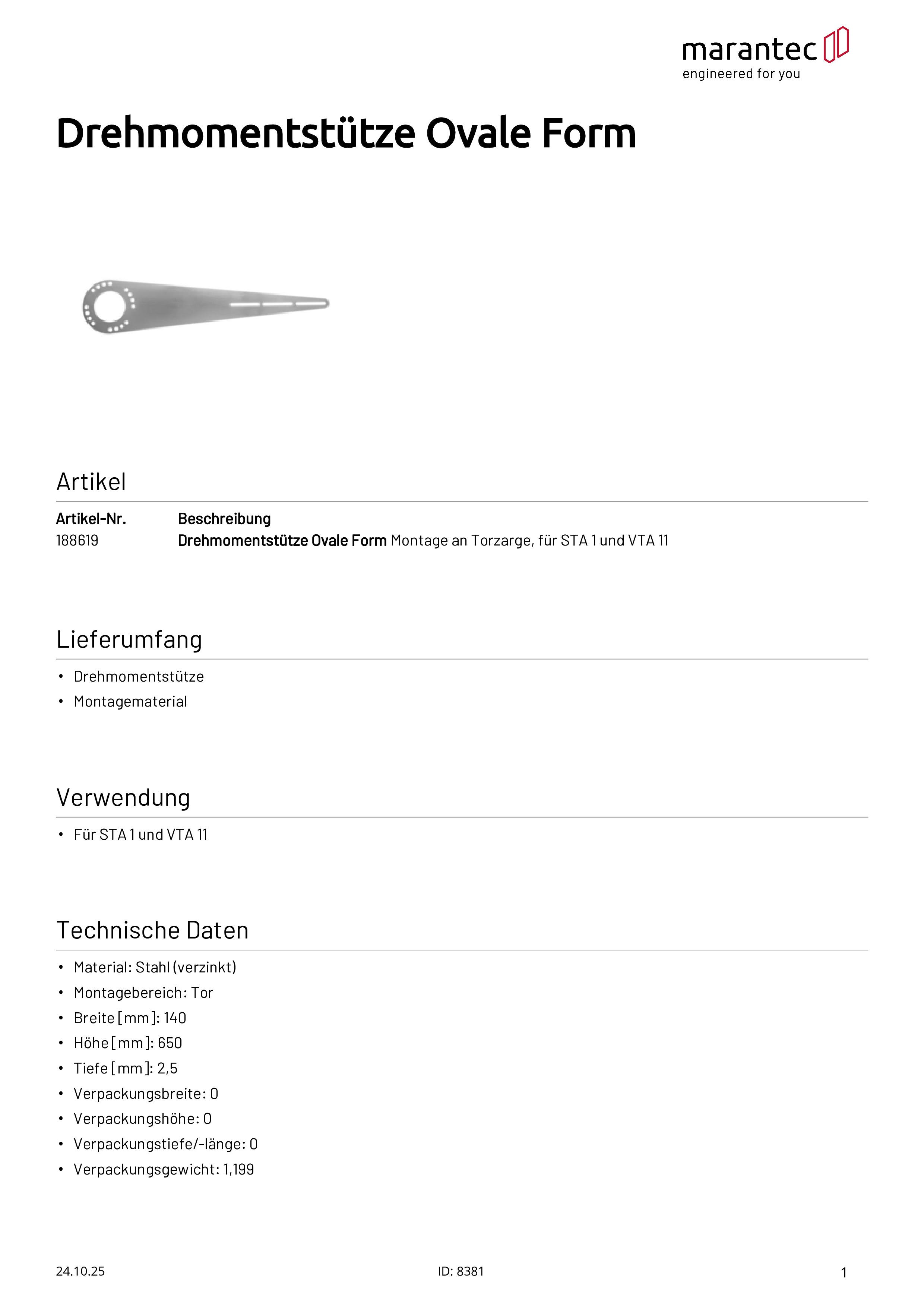 Drehmomentstütze ovale Form, Montage an Torzarge, für STA 1 und VTA 11