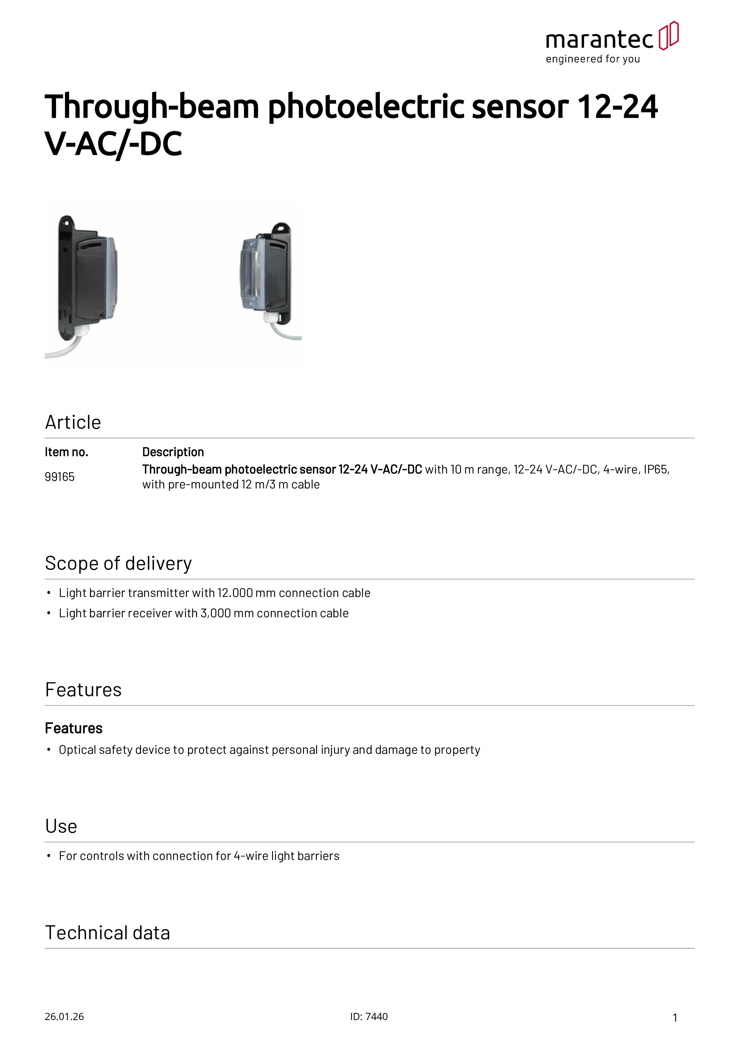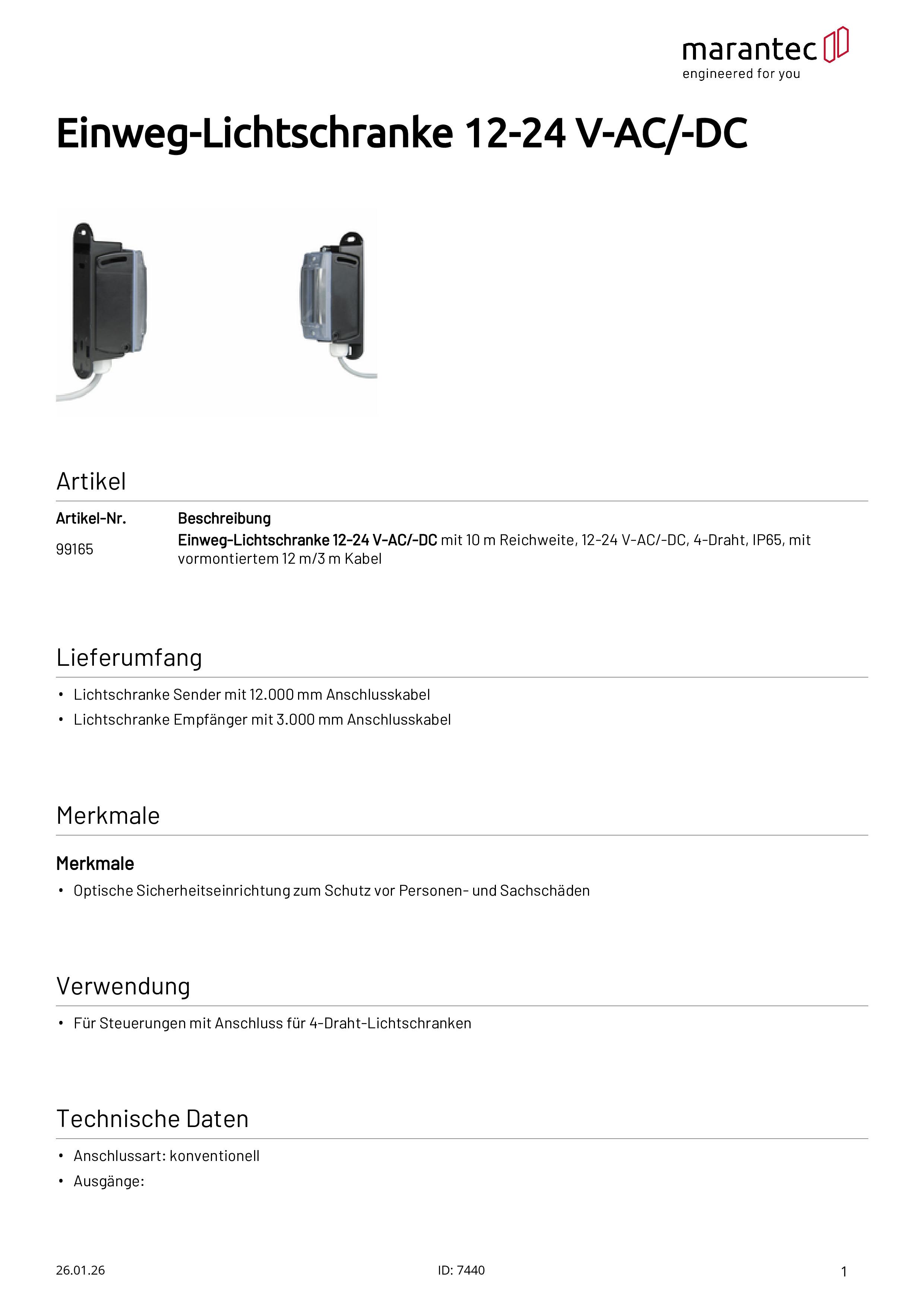 - Lichtschranke Sender mit 12.000 mm Anschlusskabel