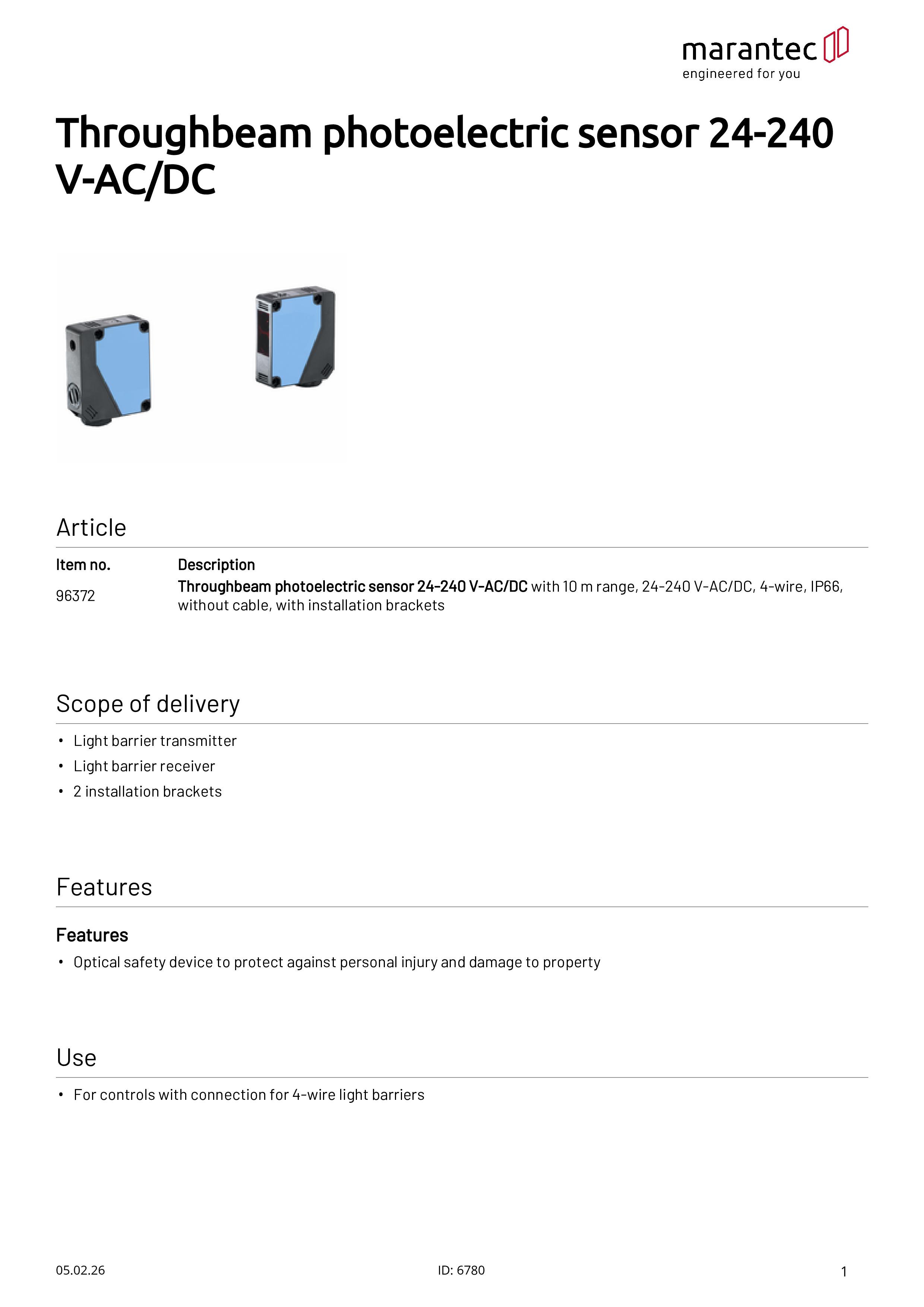 Einweg-Lichtschranke 24-240 V-AC/DC 10 m Reichweite mit Montagewinkeln