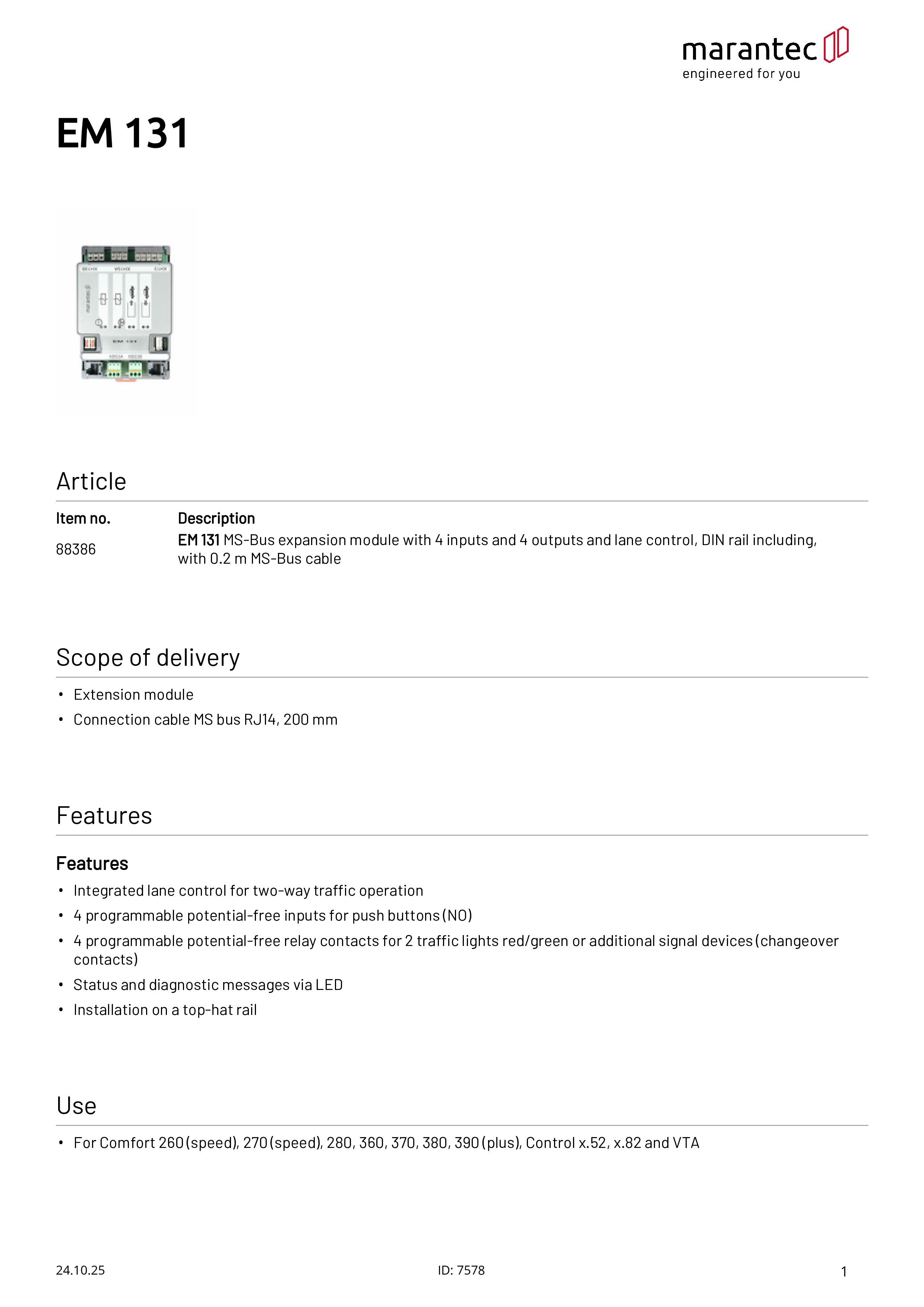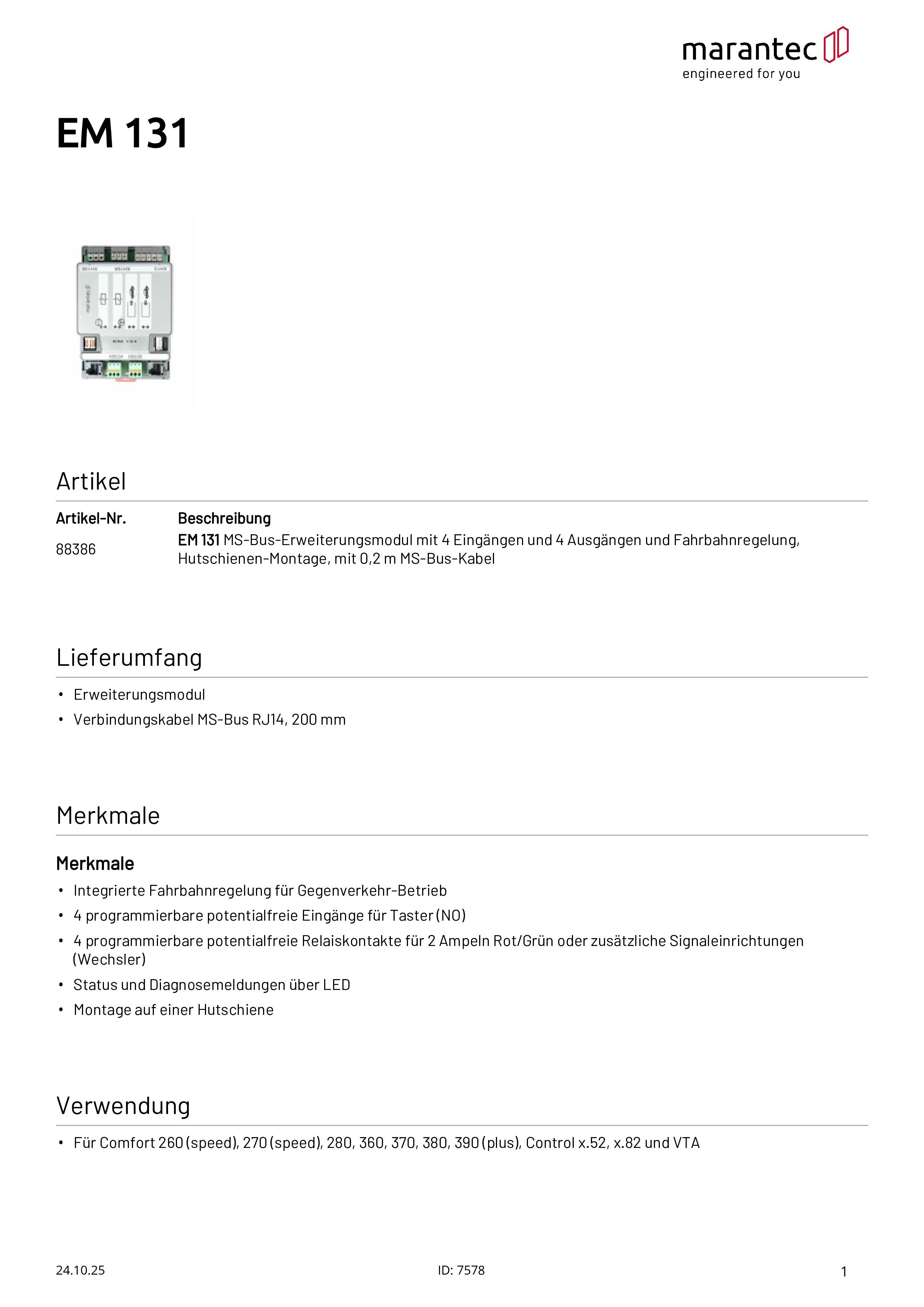 EM 131 Erweiterungsmodul mit 4 Ein-/Ausgängen, Gegenverkehrsregelung