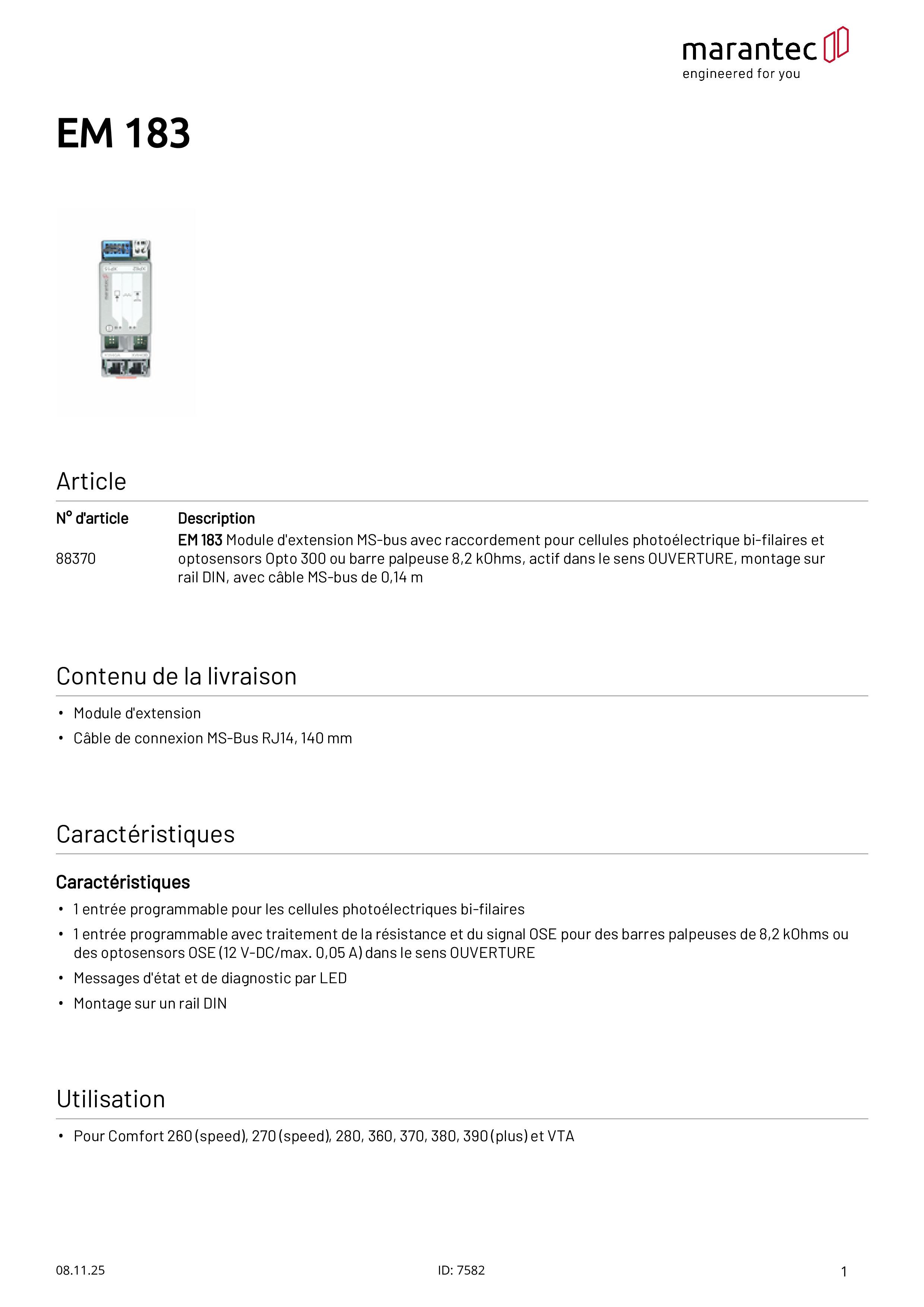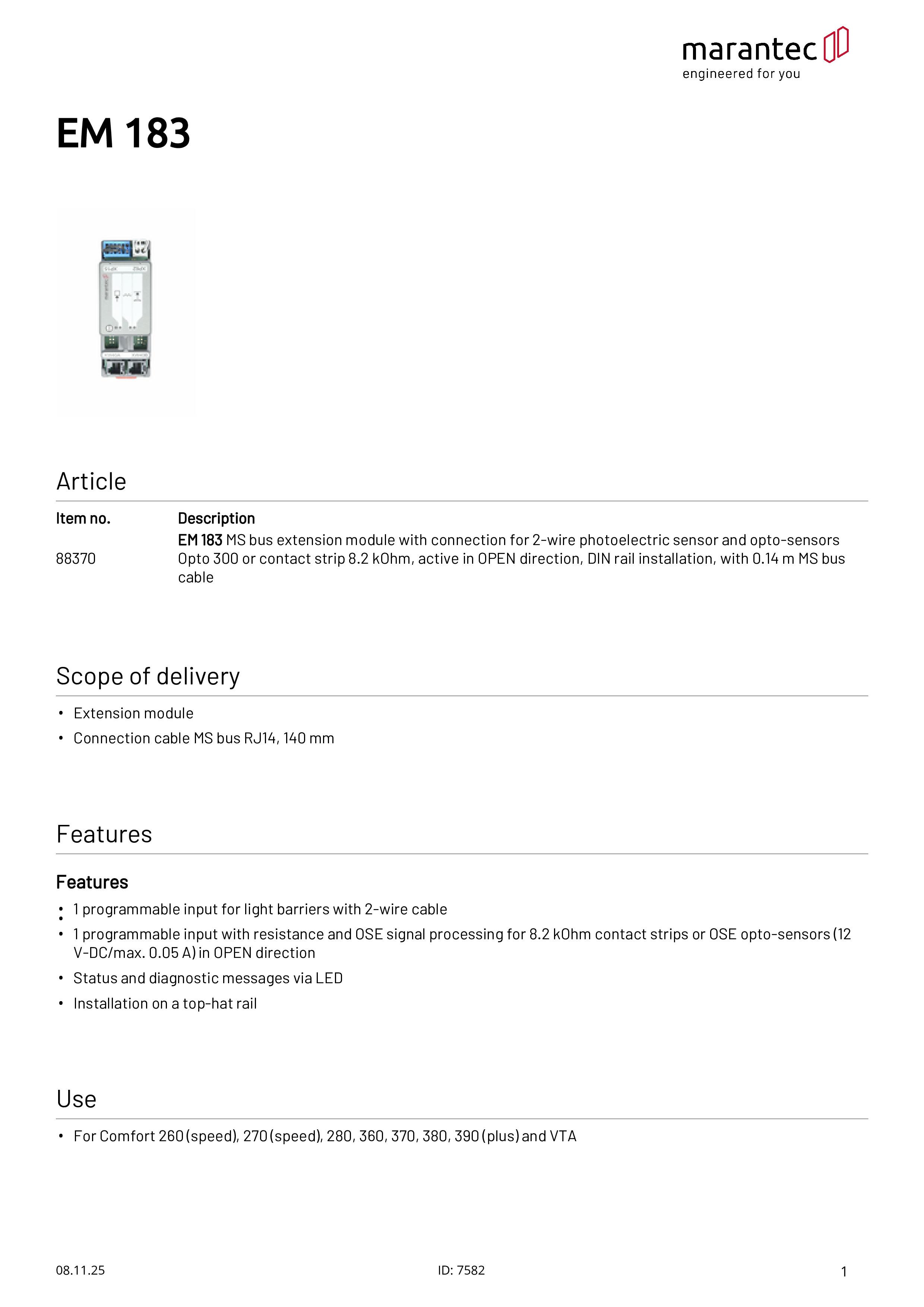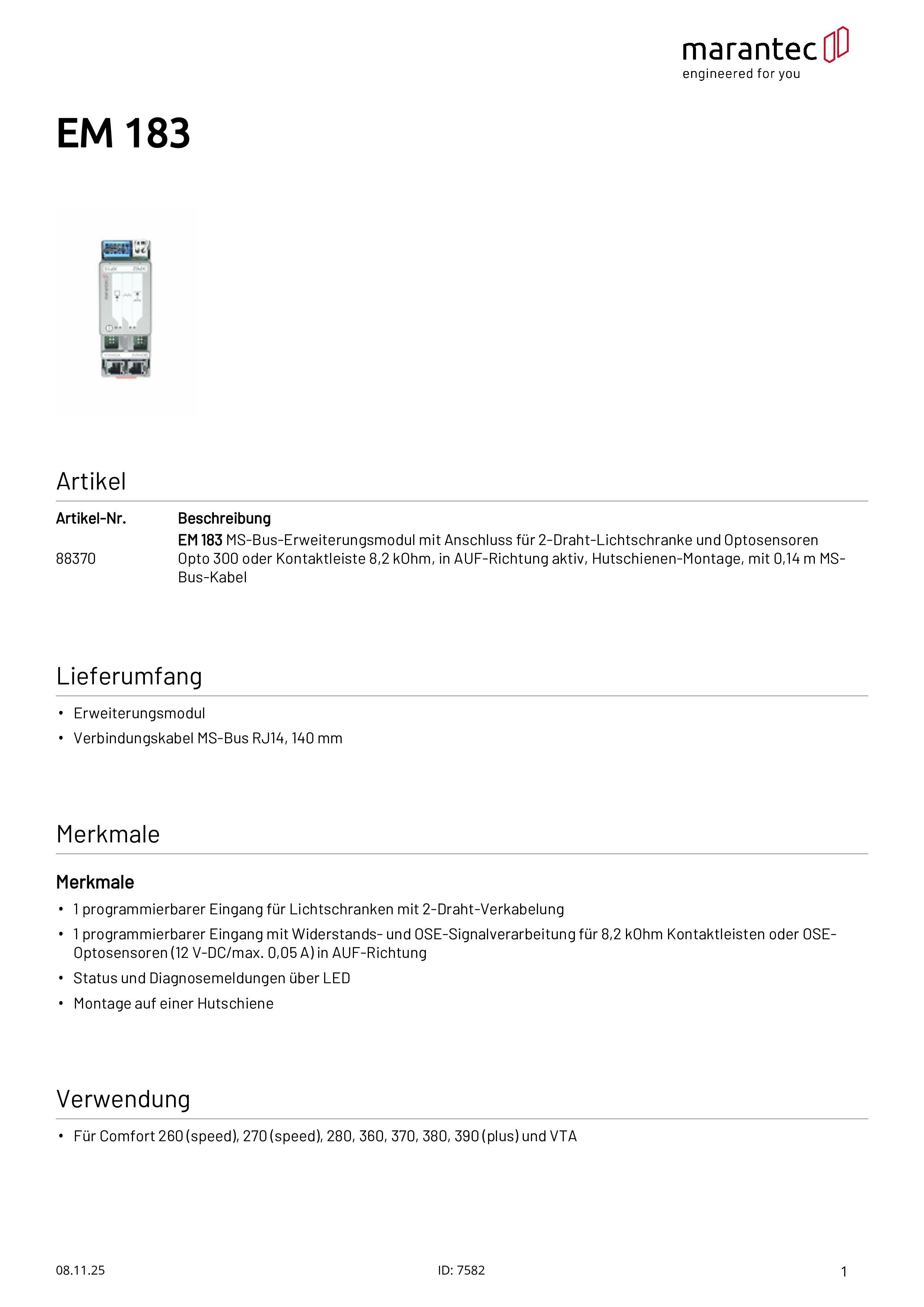 EM 183 Erweiterungsmodul für 2-Draht-Lichtschranke und Opto 300 in AUF-Richtung