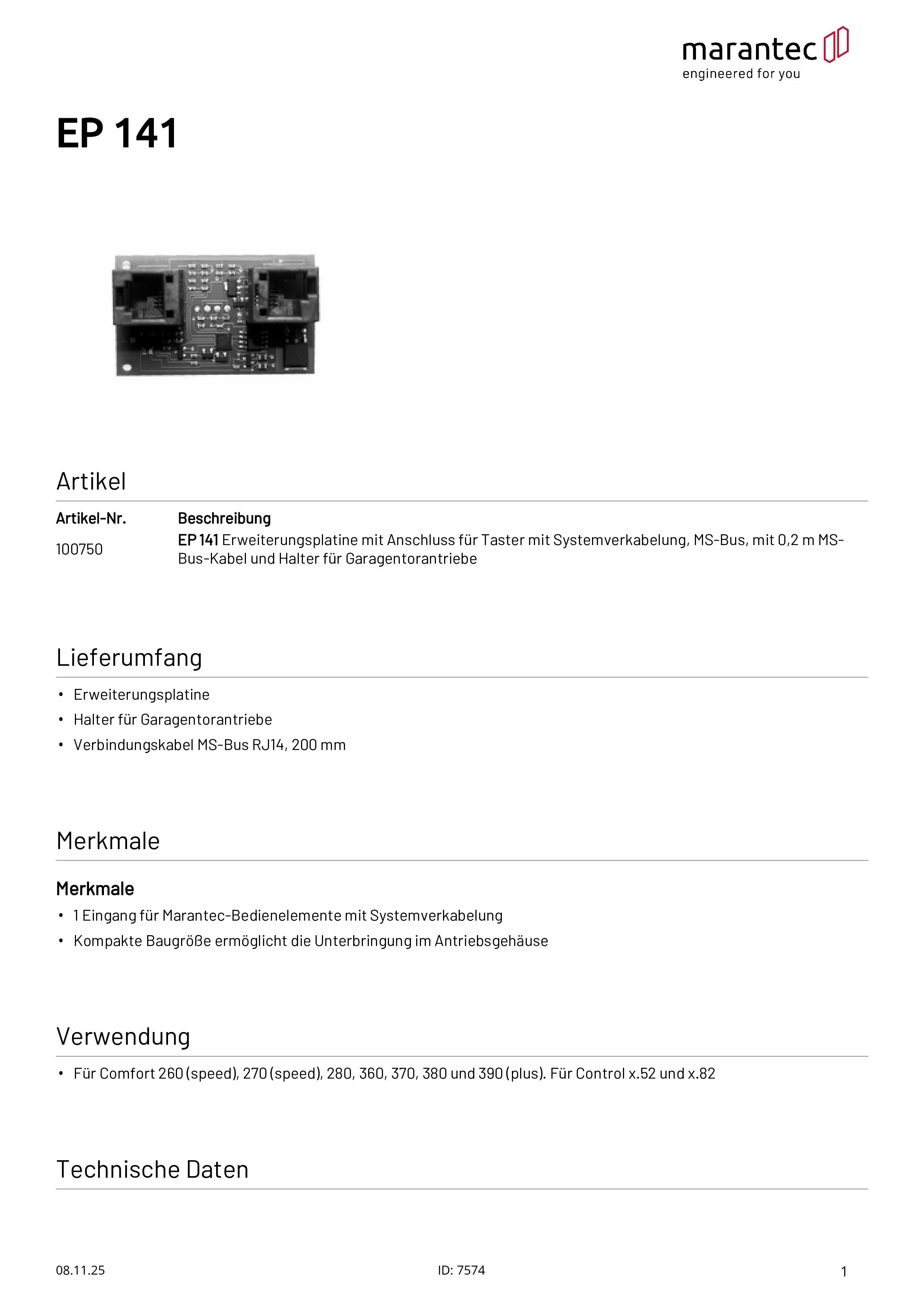 - 1 Eingang für Marantec-Bedienelemente mit Systemverkabelung