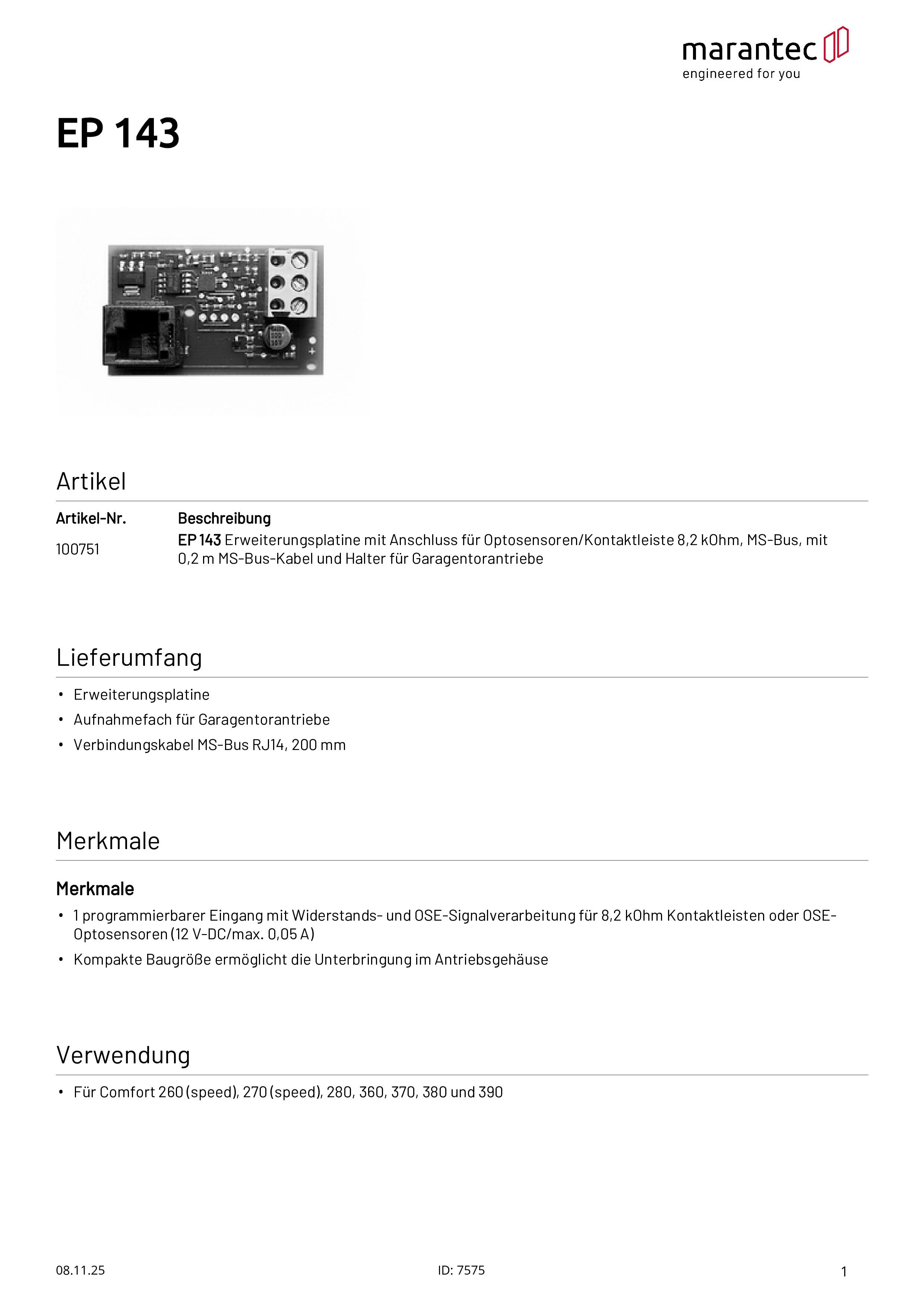 EP 143 Erweiterungsplatine für Optosensoren/Kontaktleiste