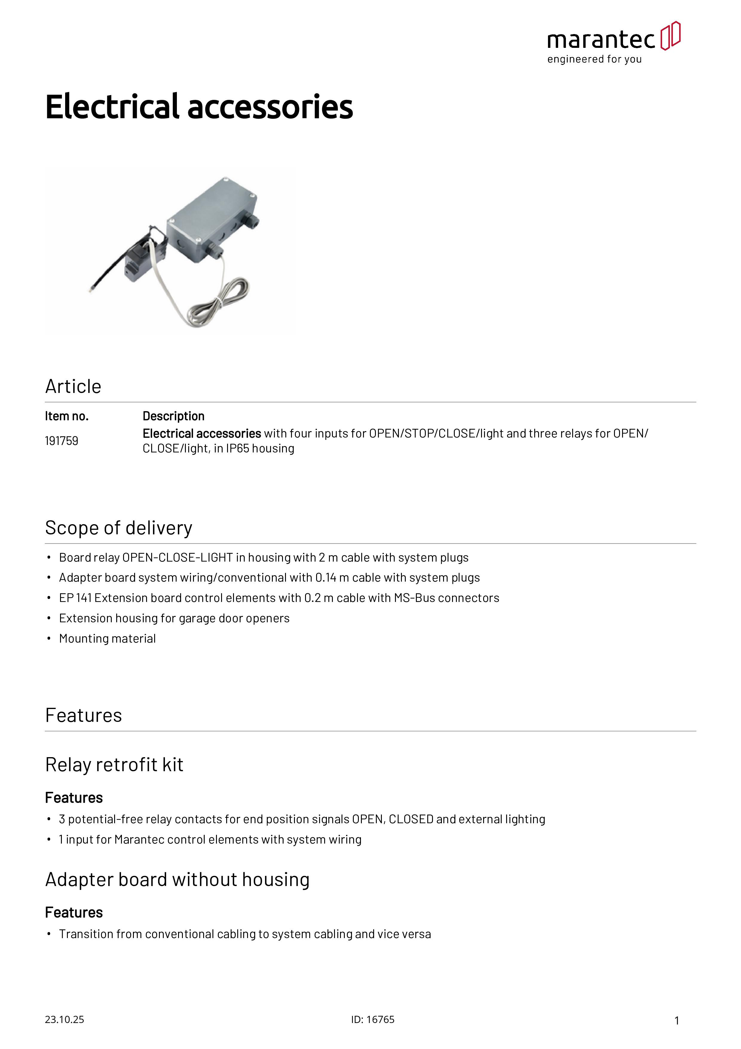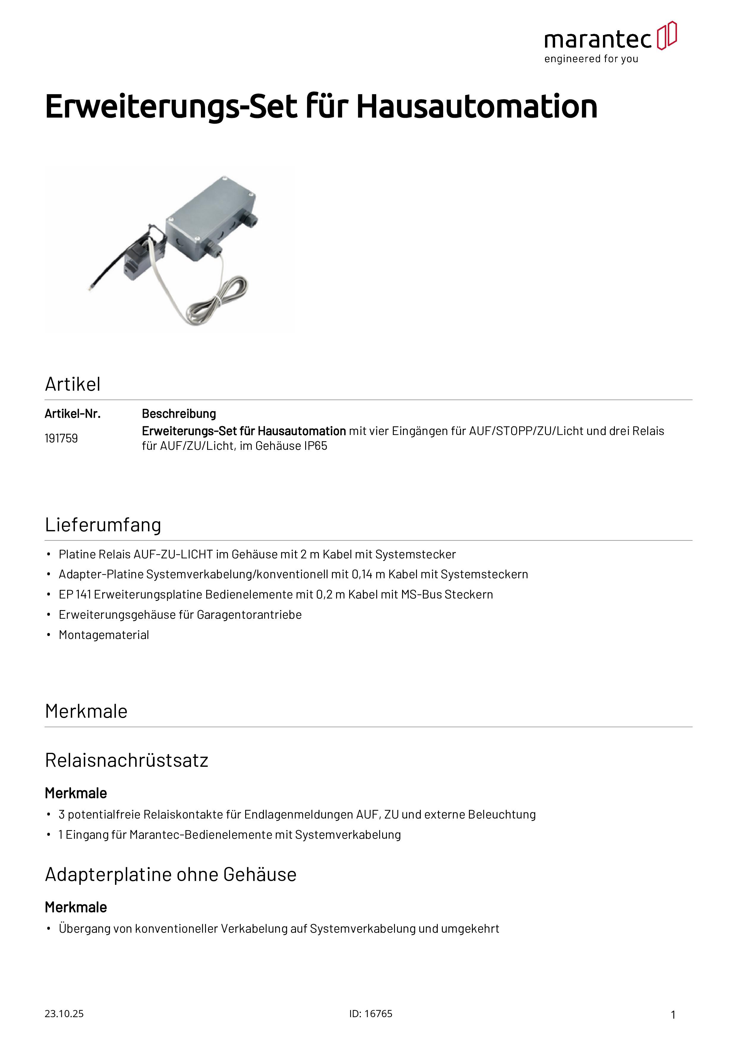 - Platine Relais AUF-ZU-LICHT im Gehäuse mit 2 m Kabel mit Systemstecker