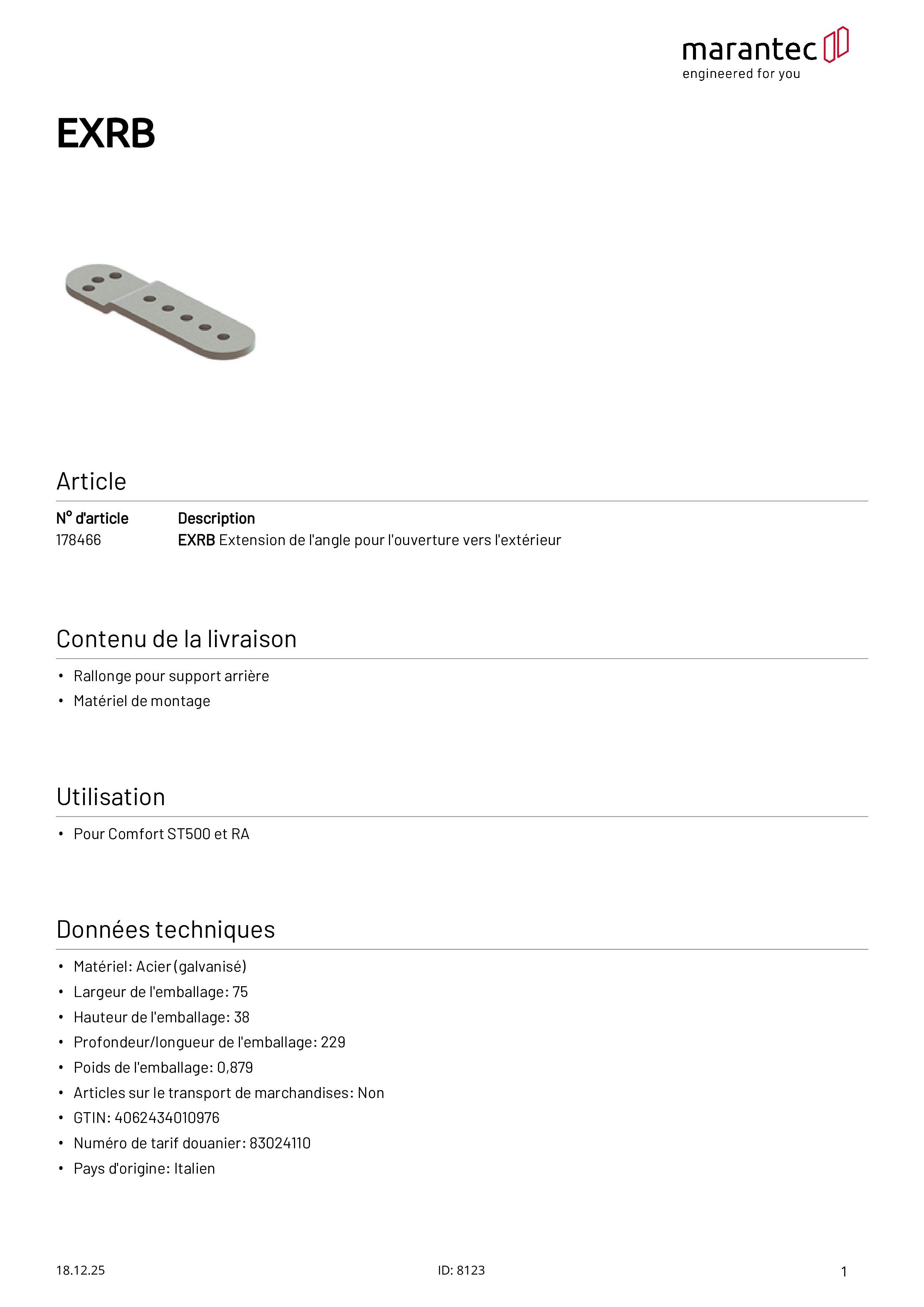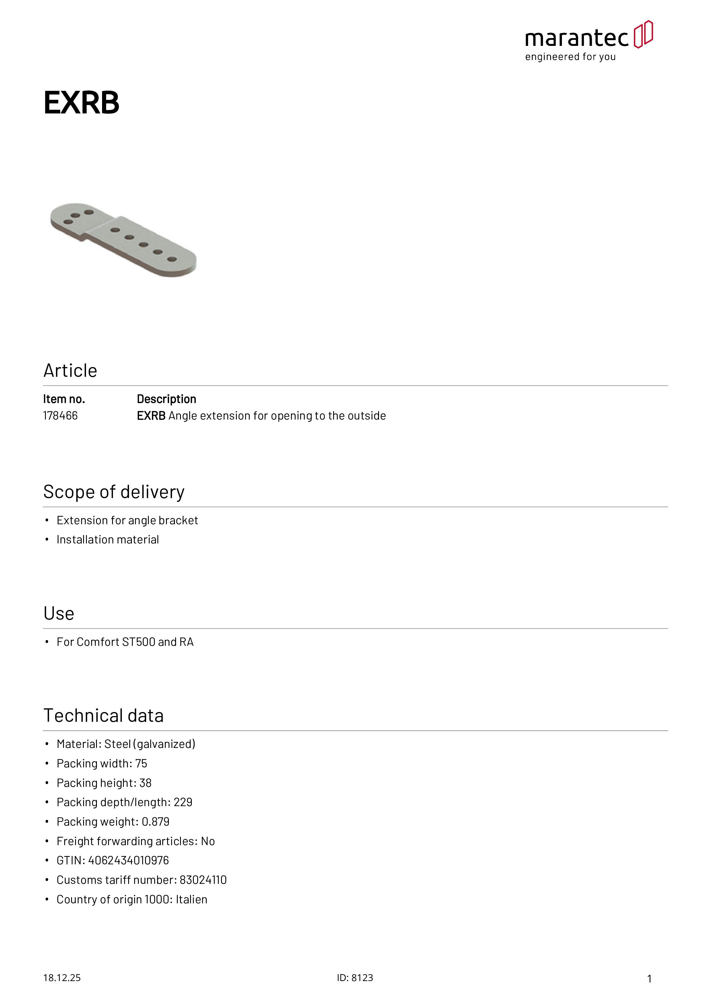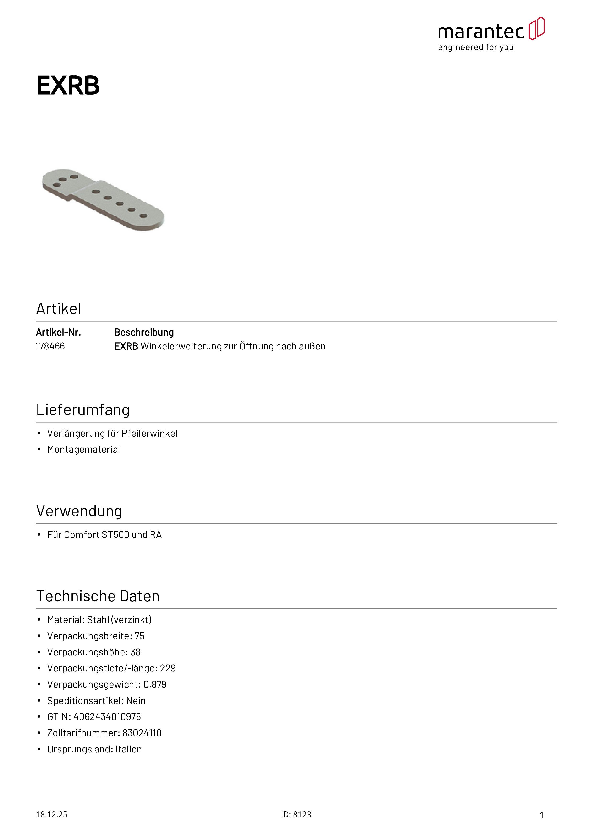 EXRB Winkelerweiterung zur Öffnung nach außen für Comfort ST500/RA