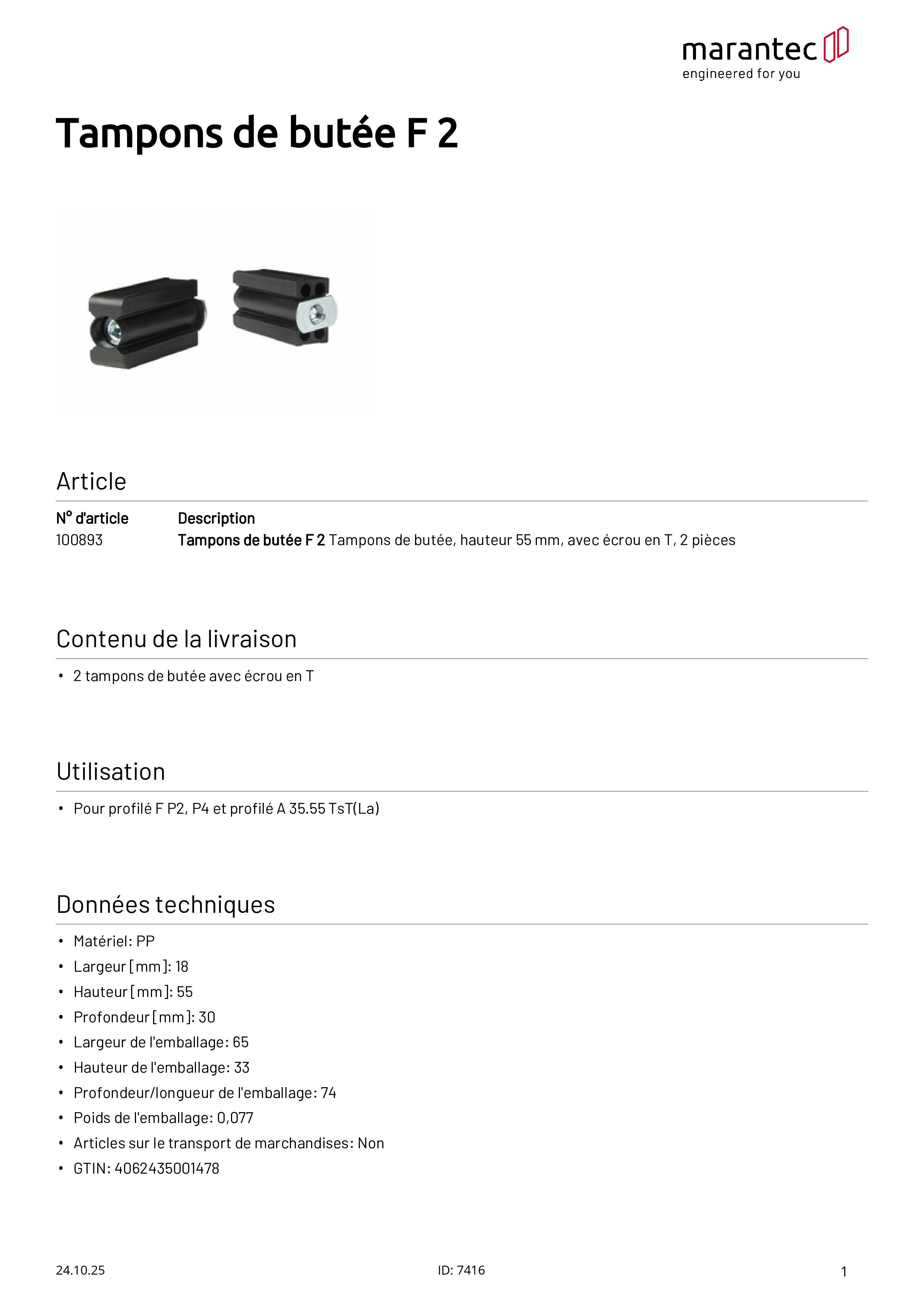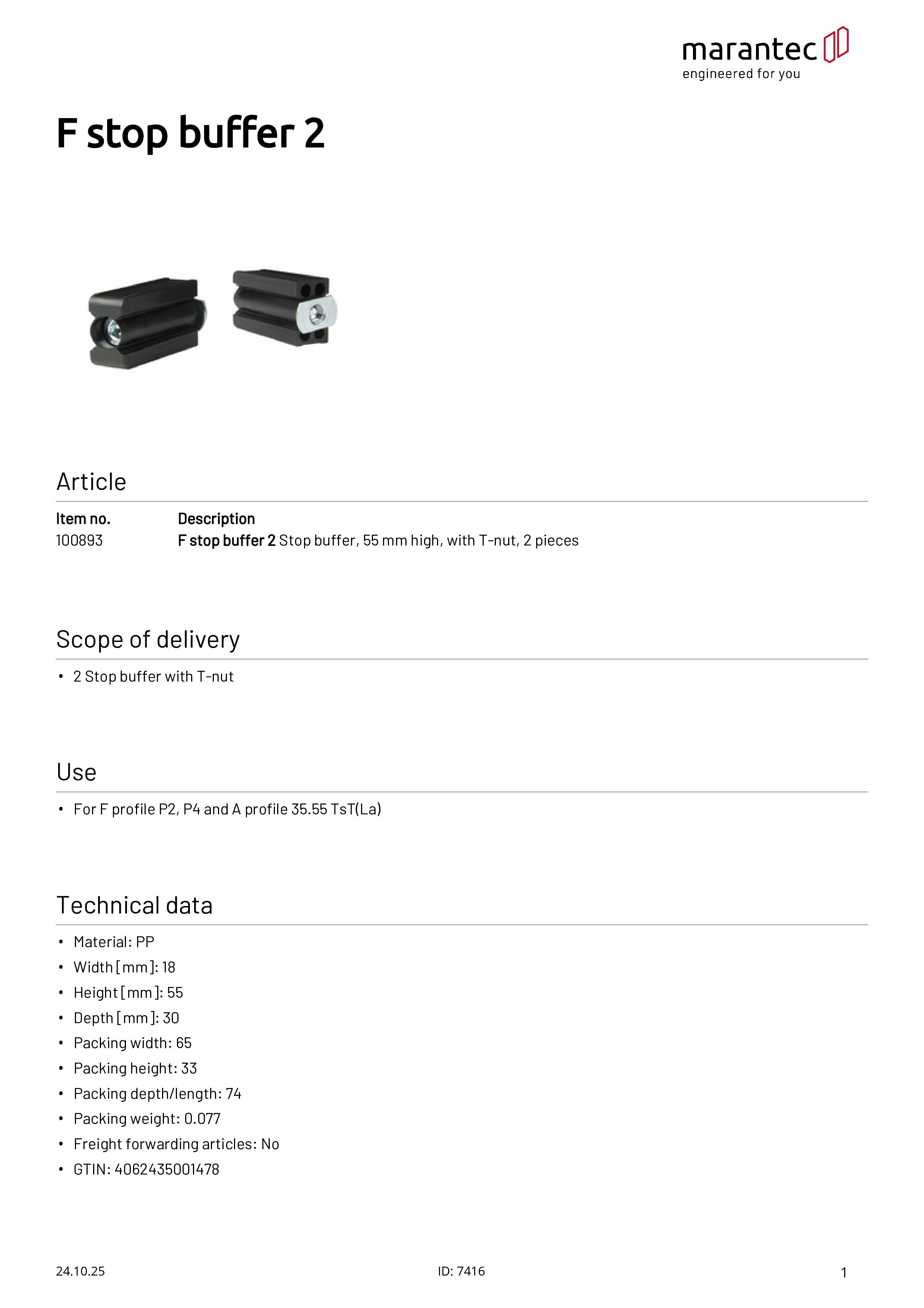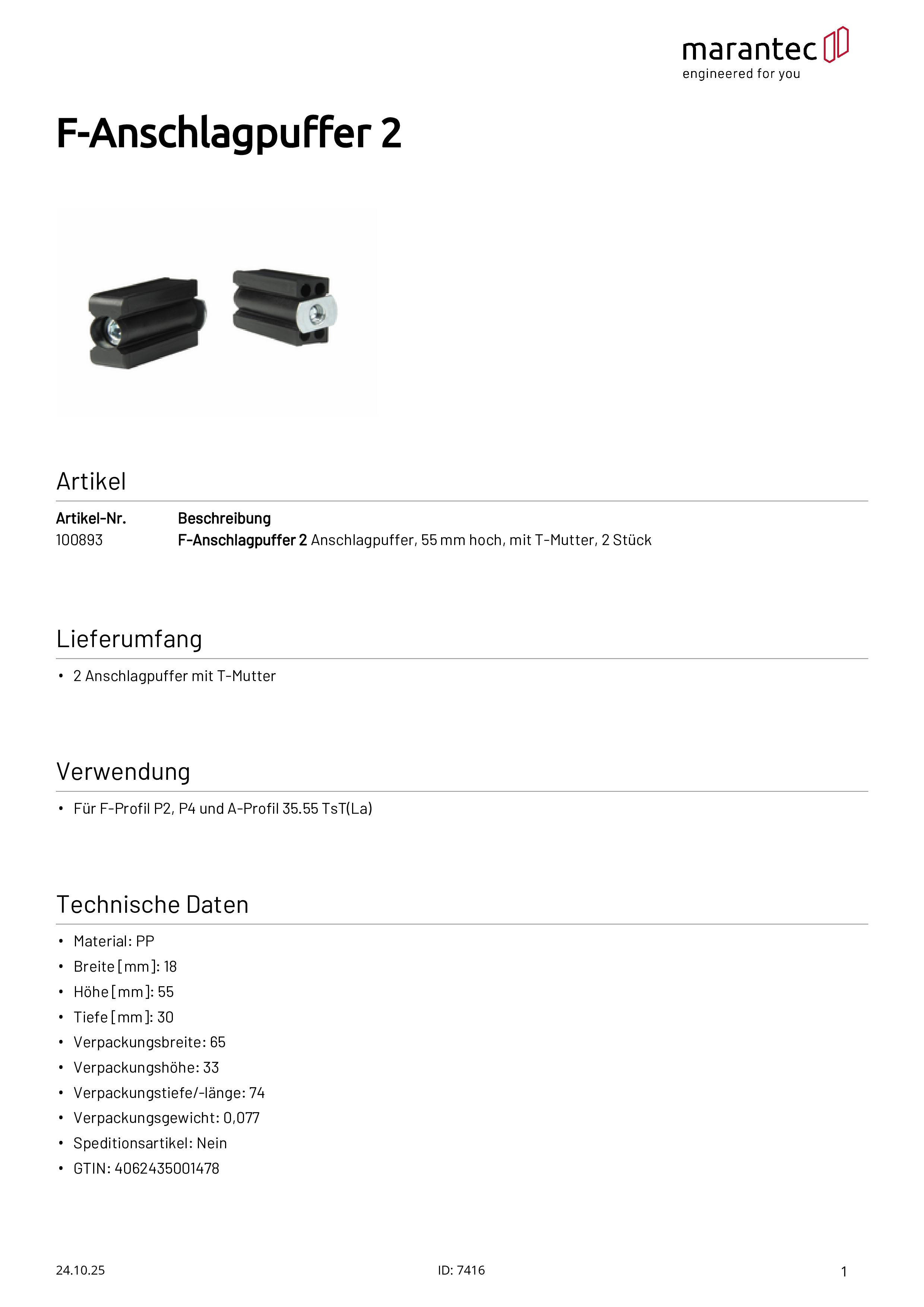 F-Anschlagpuffer 2, 55 mm hoch, mit T-Mutter, 2er-Set