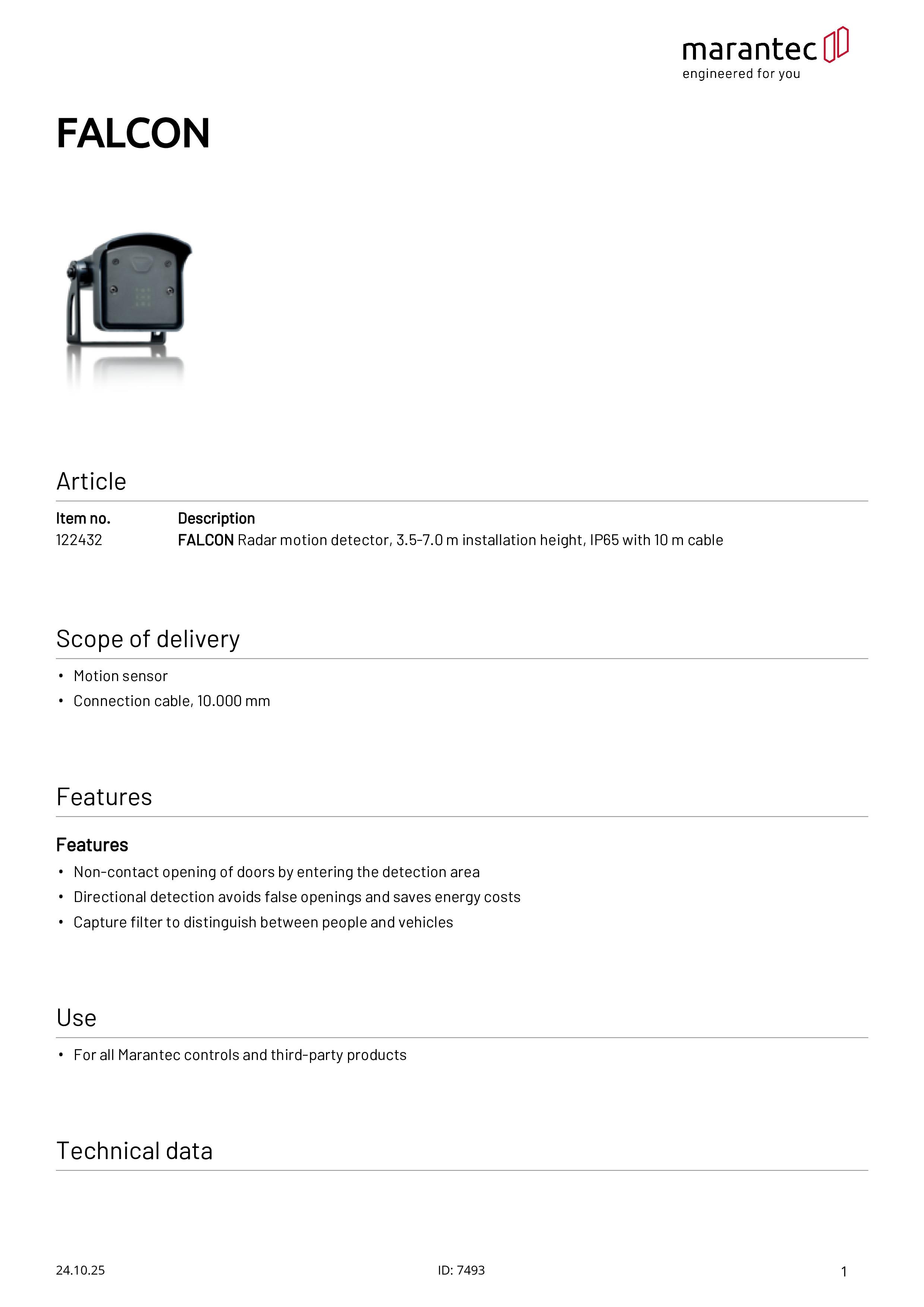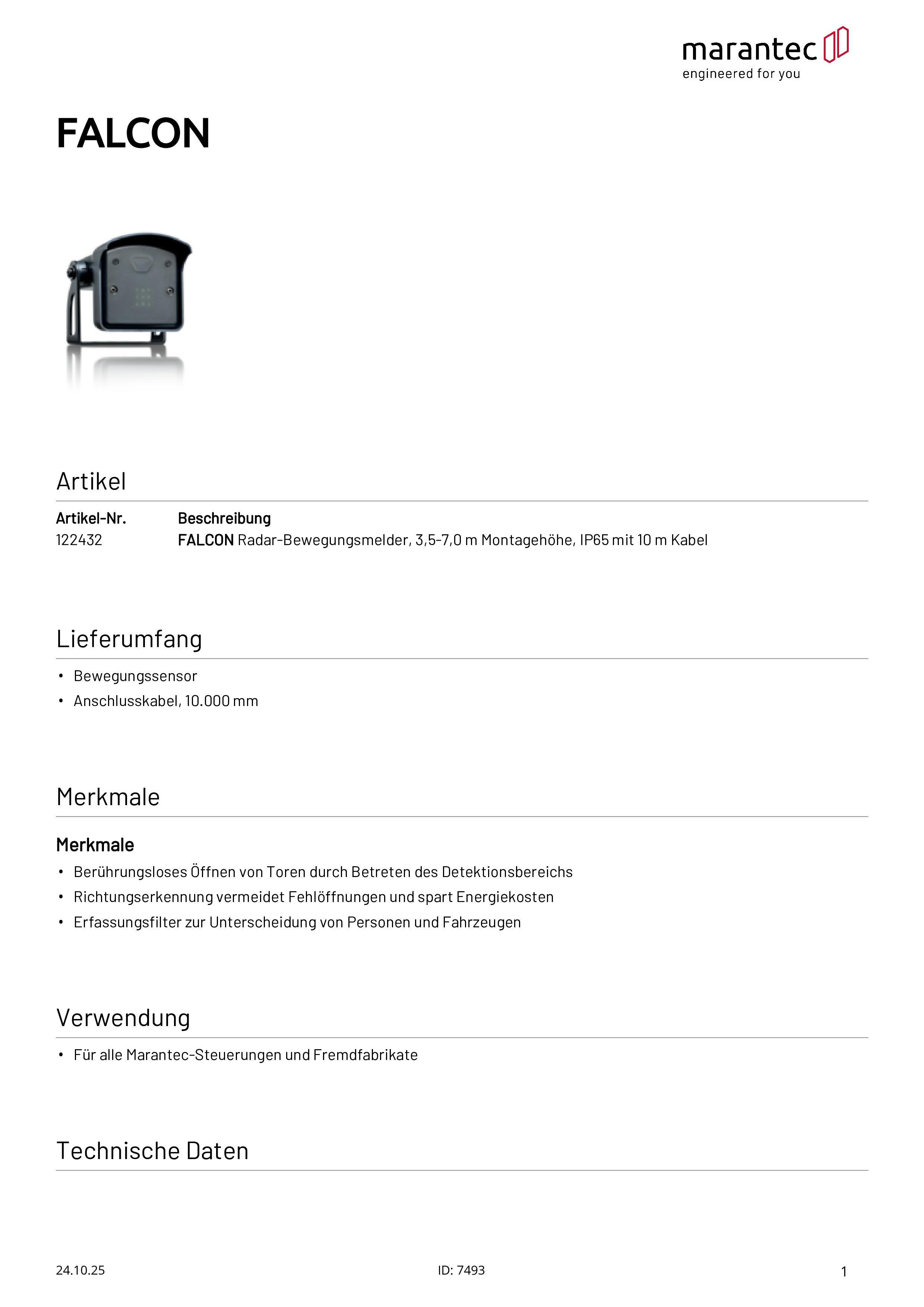 FALCON Radar-Bewegungsmelder, 3,5-7,0 m Montagehöhe, mit 10 m Kabel