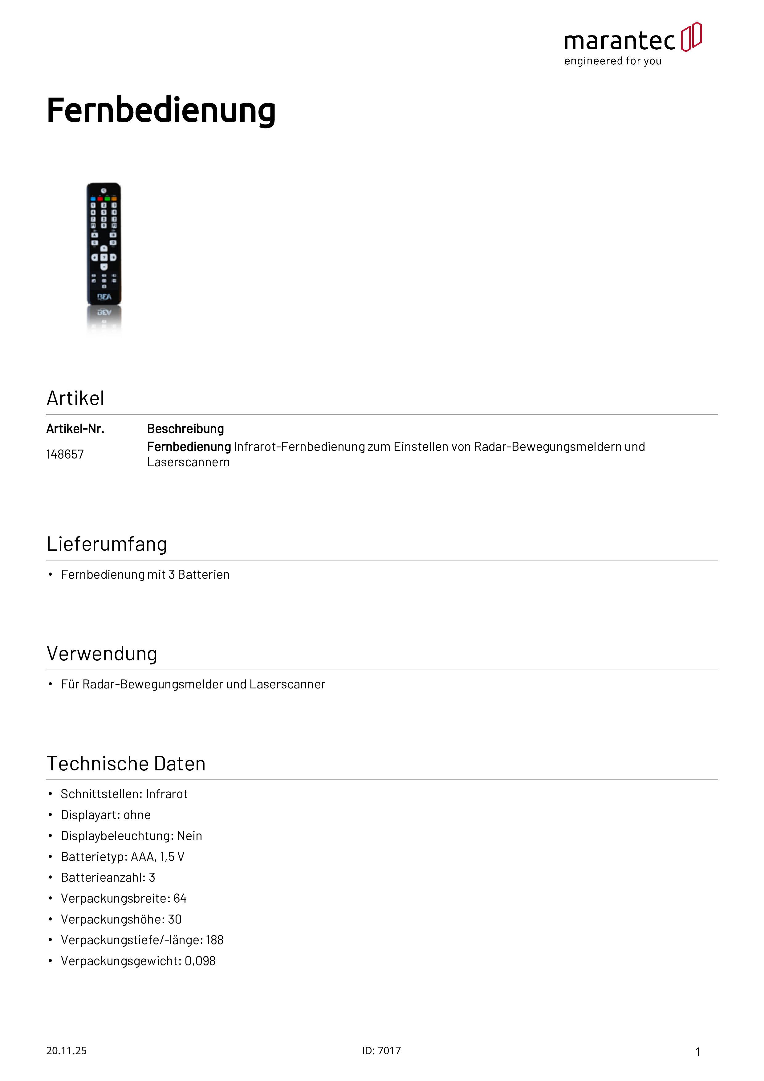 Infrarot-Fernbedienung zum Einstellen von Radar und Laserscannern
