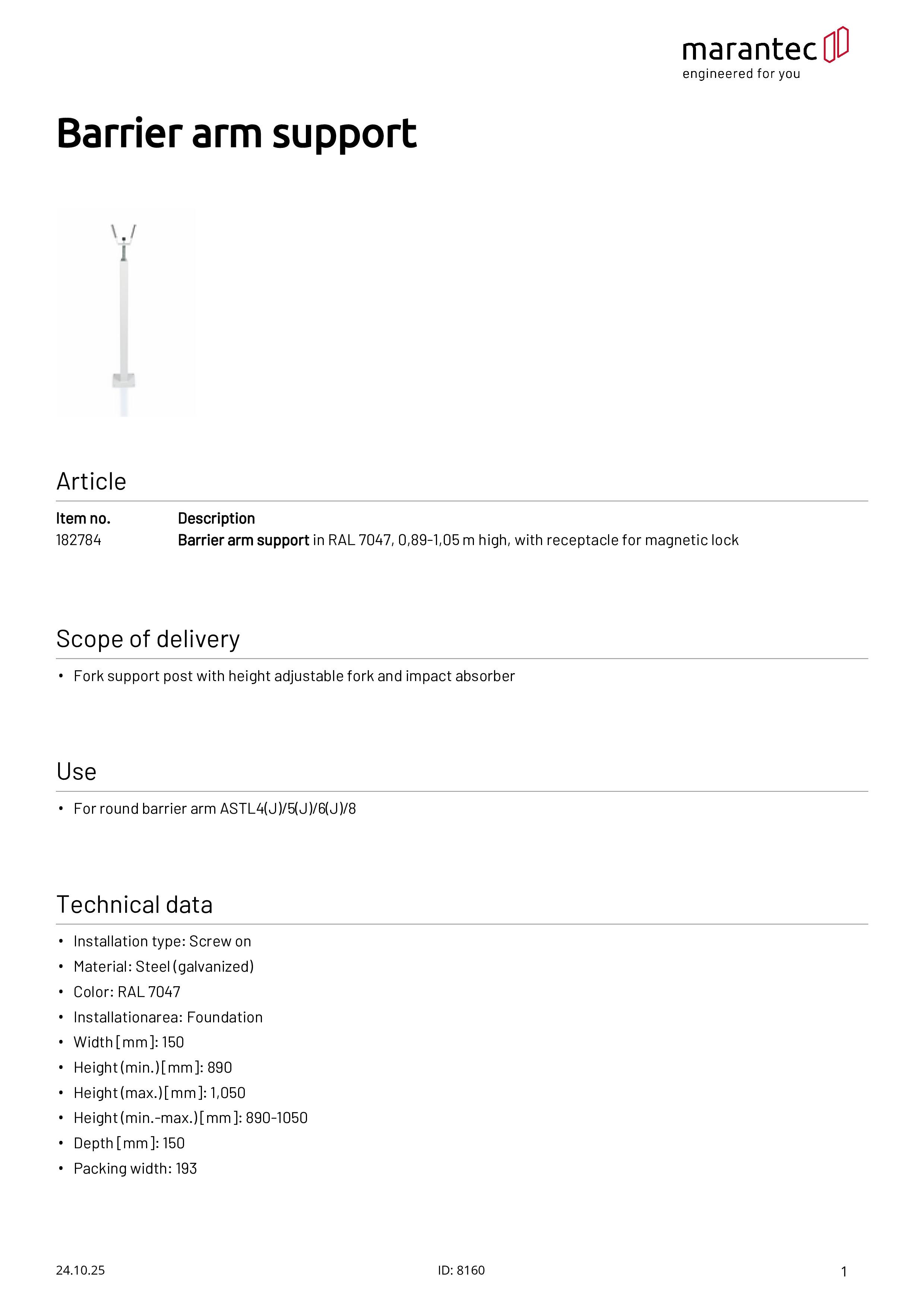 Gabelstützpfosten RAL 7047, 0,89-1,05 m hoch, Magnetverriegelung geeignet