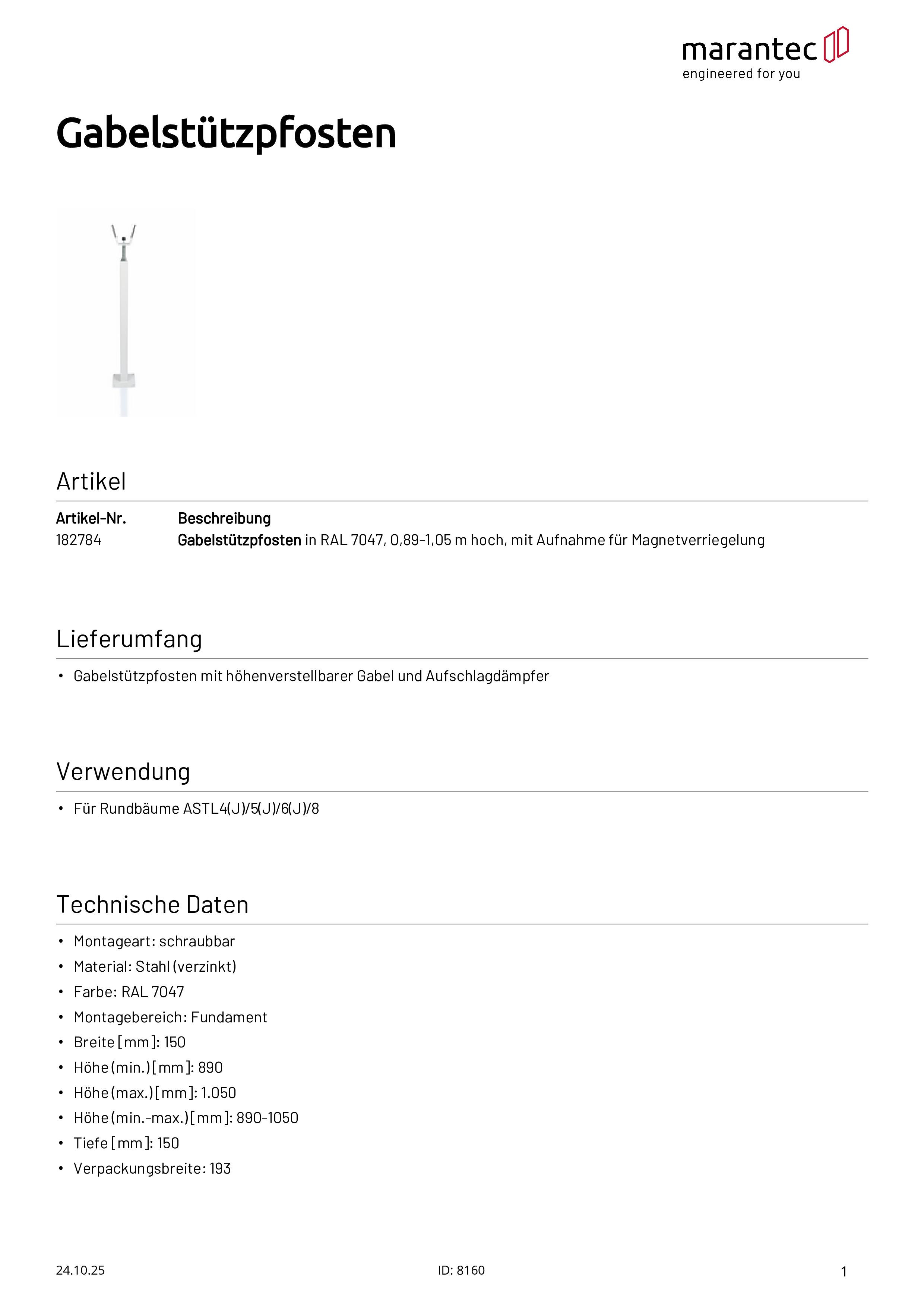 - Gabelstützpfosten mit höhenverstellbarer Gabel und Aufschlagdämpfer
