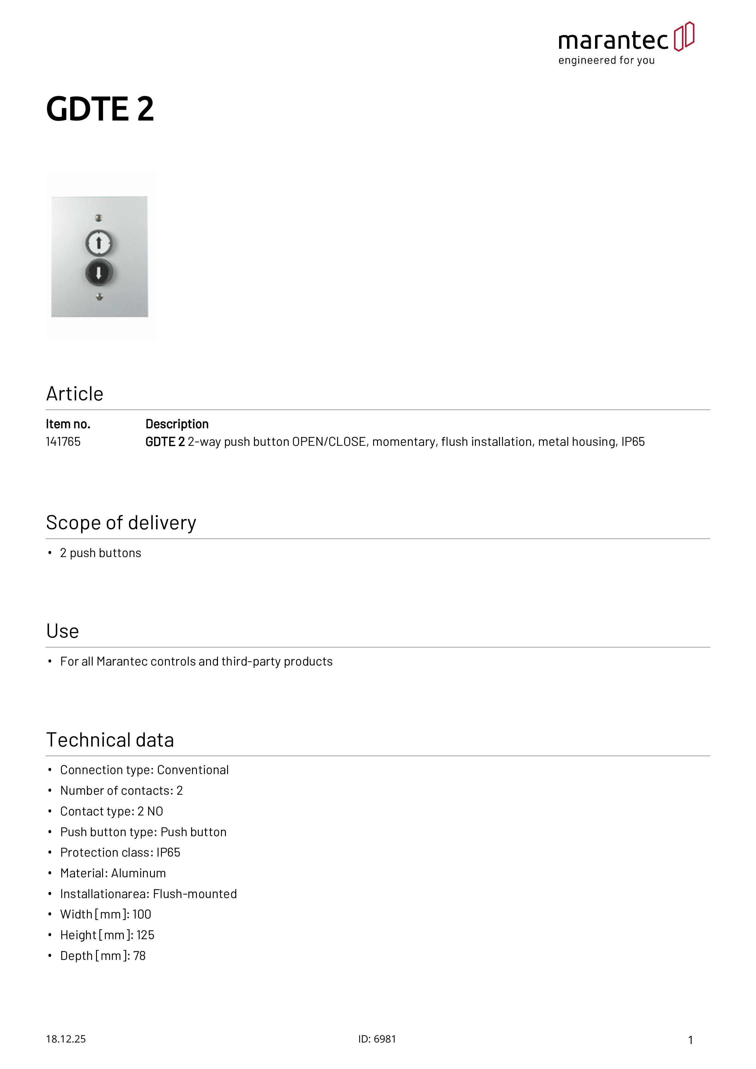 GDTE 2 2-fach Drucktaster AUF/ZU Unterputzmontage, Metallgehäuse, IP65