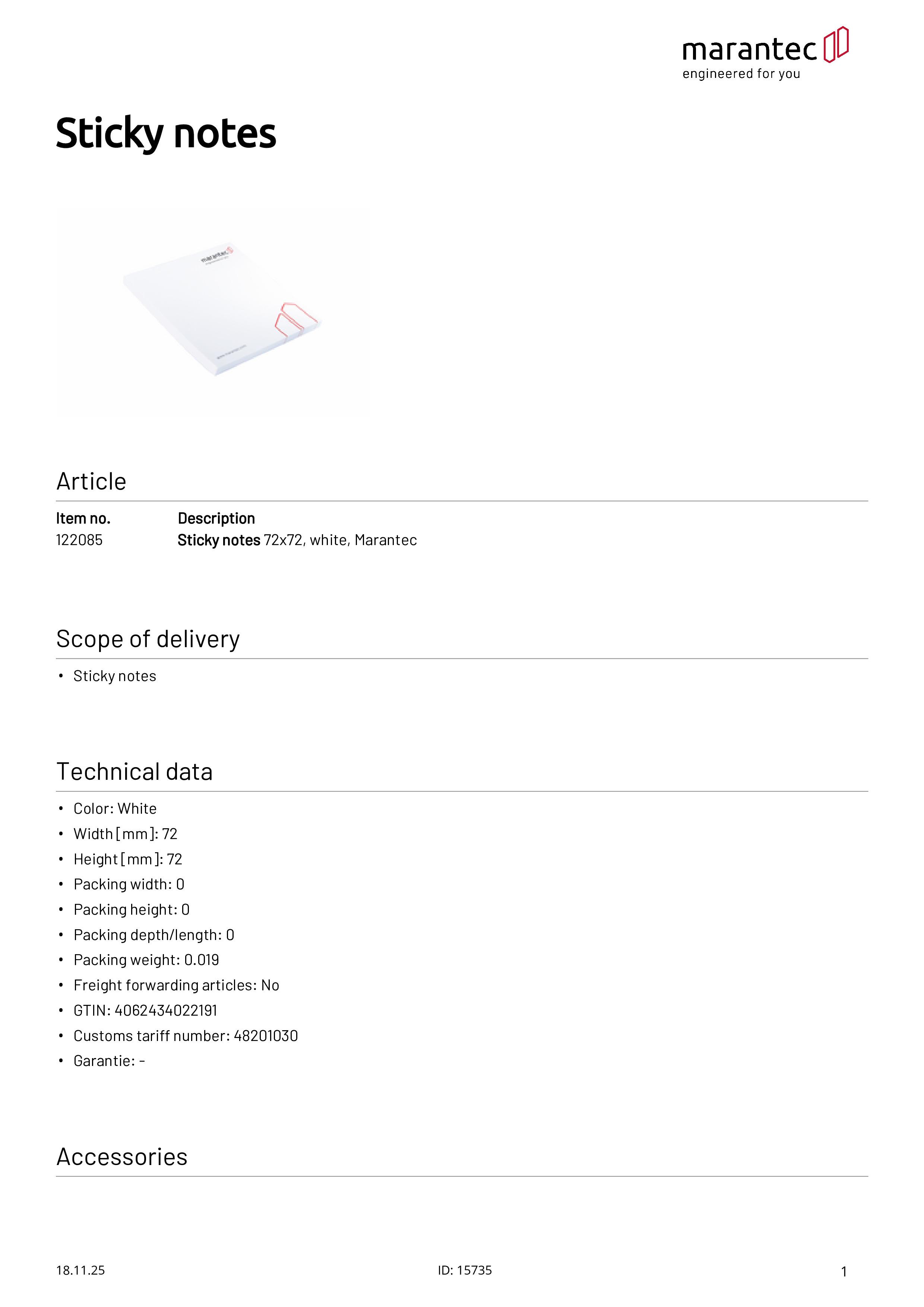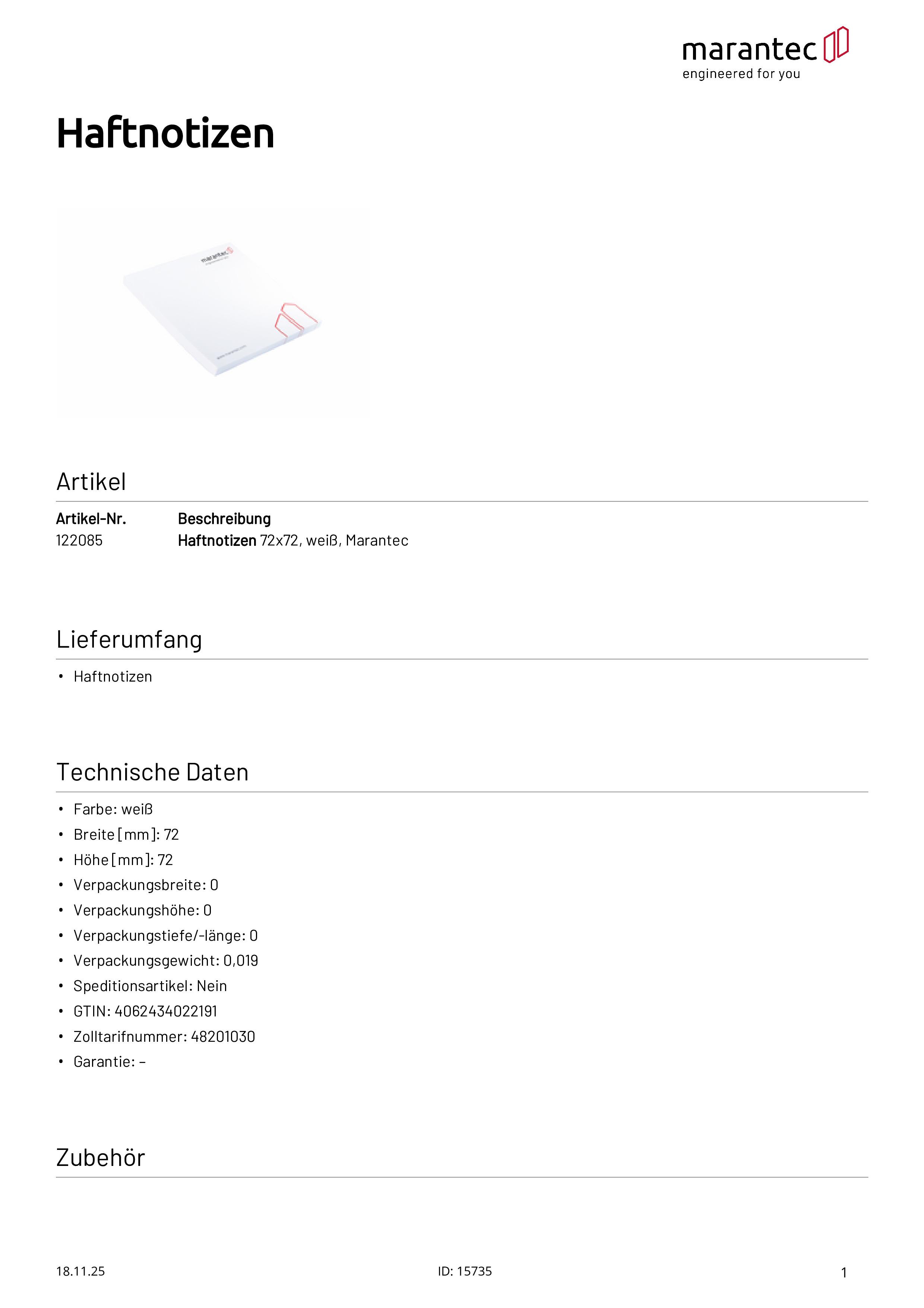 Haftnotizen Marantec 72x72 mm weiß
